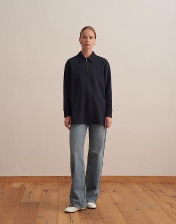 Nakış Detaylı Polo Yaka Sweatshirt Lacivert