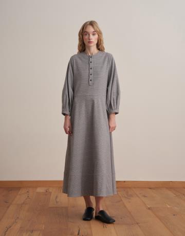 Kemer Detaylı Ekose Elbise Antrasit