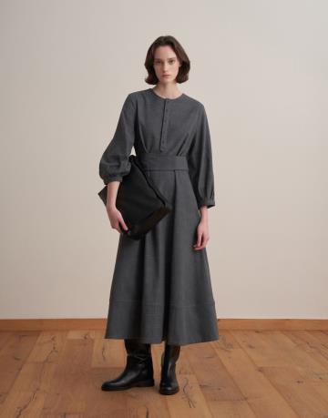 Kemer Detaylı Ekose Elbise Gri