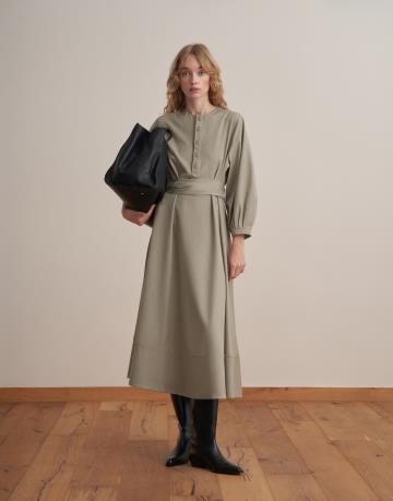 Kemer Detaylı Elbise Bej