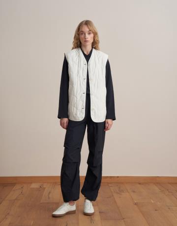 V Yaka Kapitone Yelek Ekru