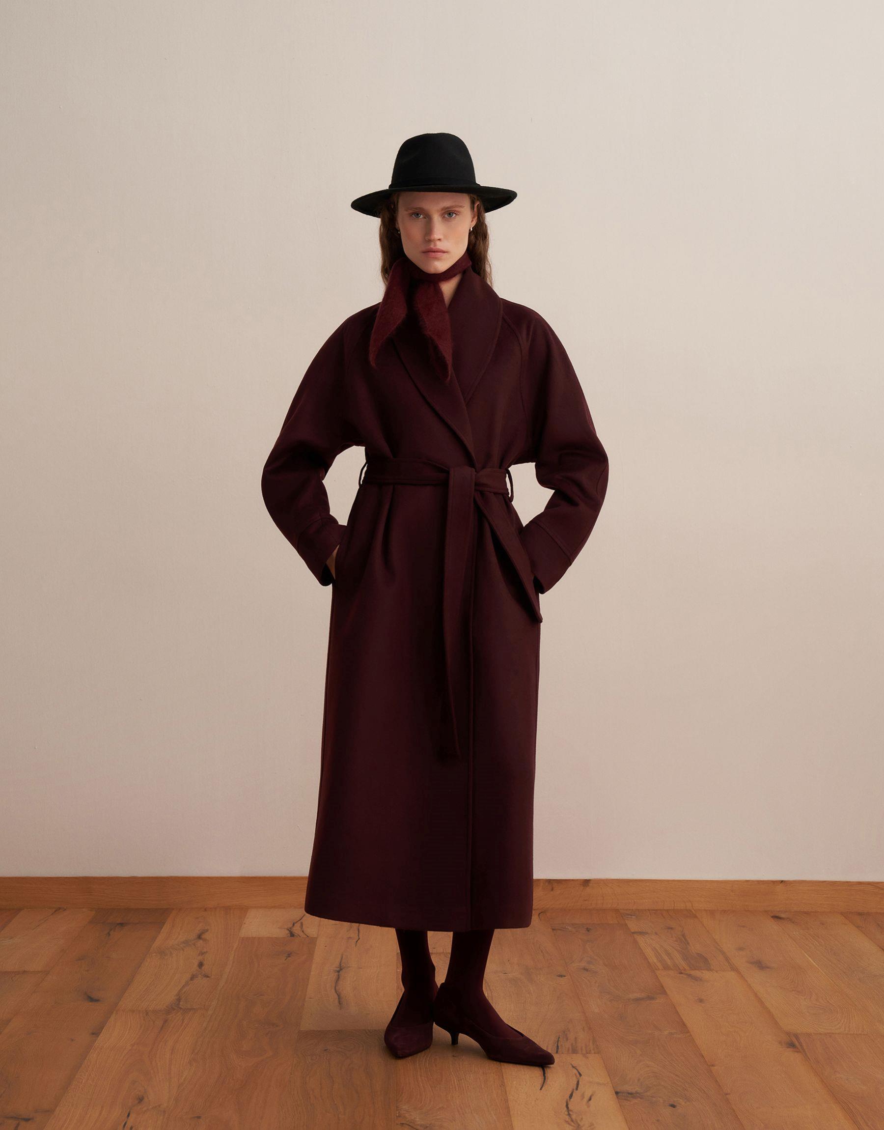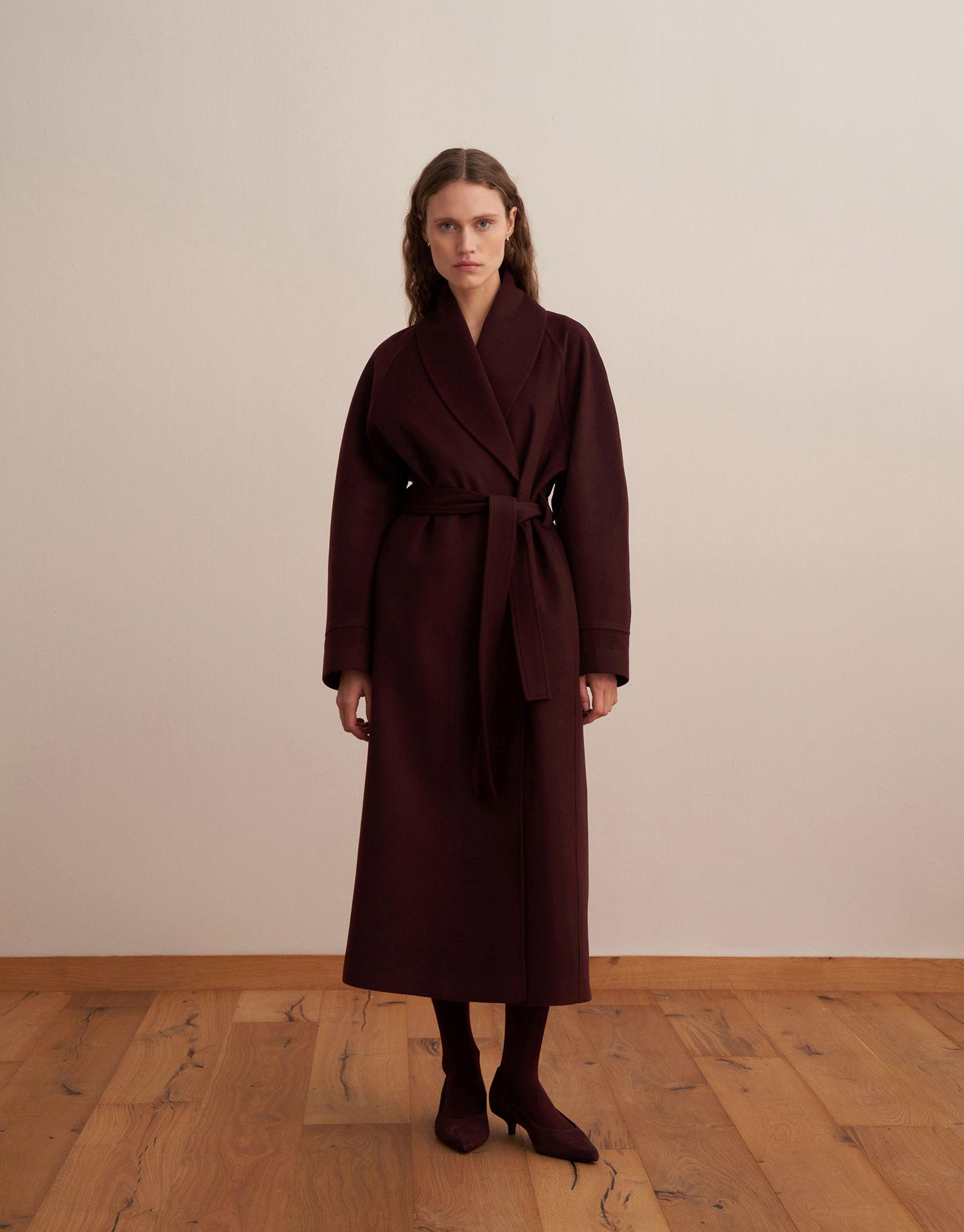 Bayan Burgonya Şal Yaka Yün Palto | KK Design