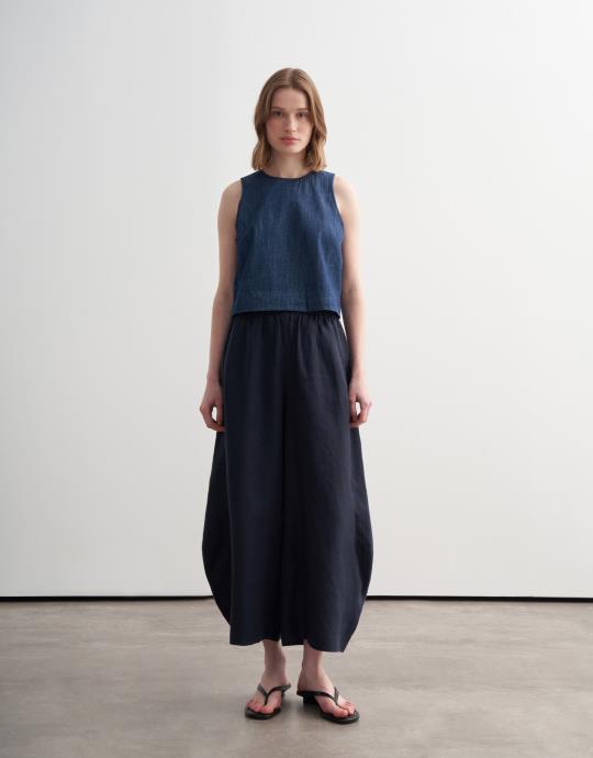 %100 Keten Şalvar Form Pantolon Kahverengi