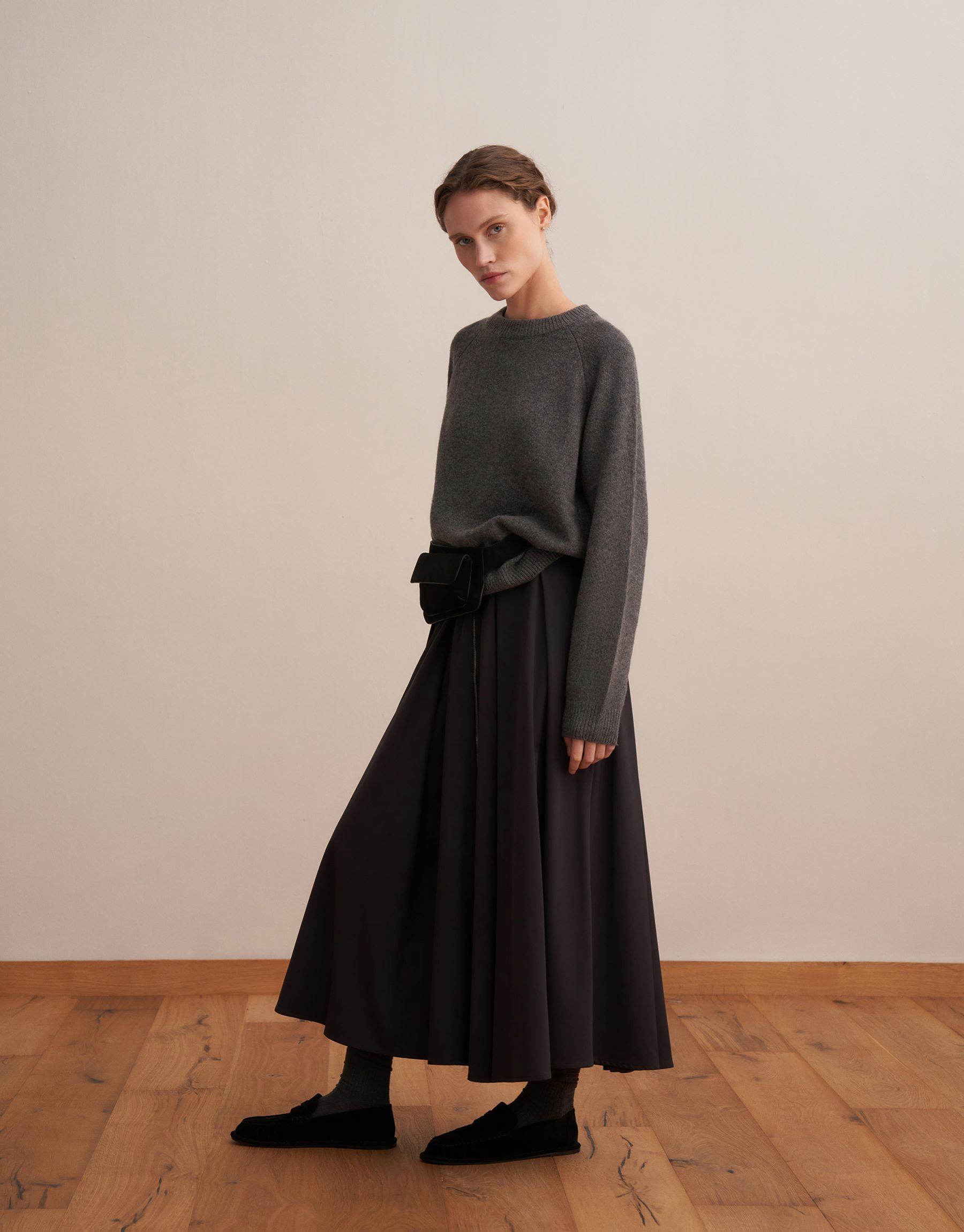 Fermuarlı Pileli Teknik Etek Antrasit