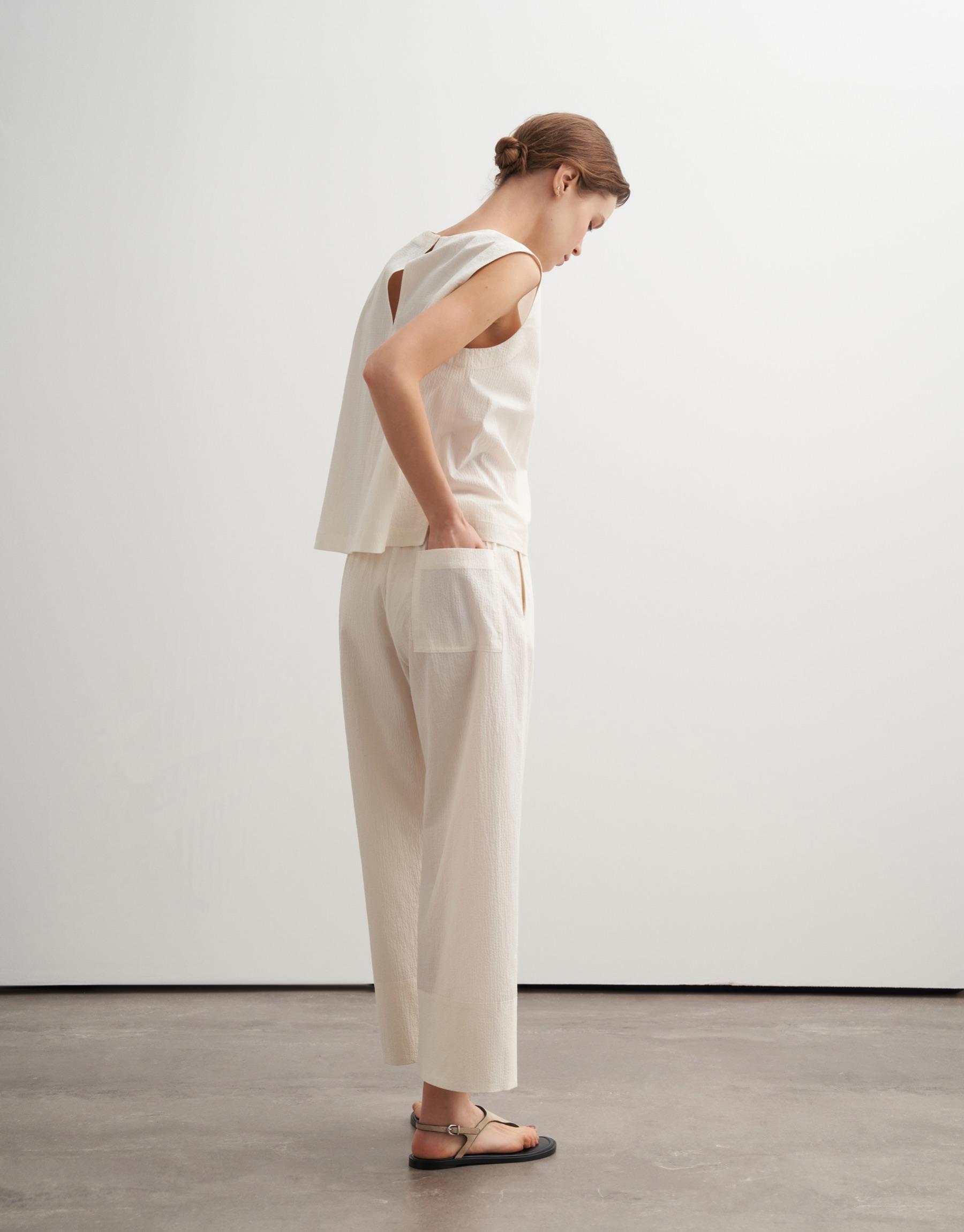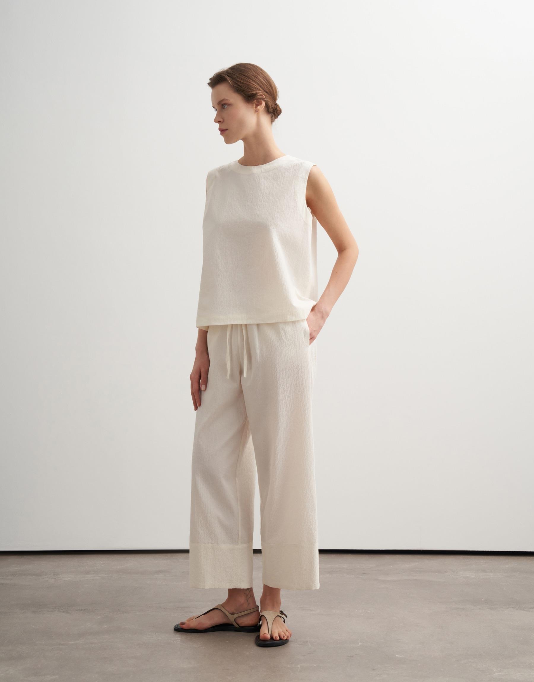 Bayan Bej %100 Organik Koton Dokulu Pantolon | KK Design