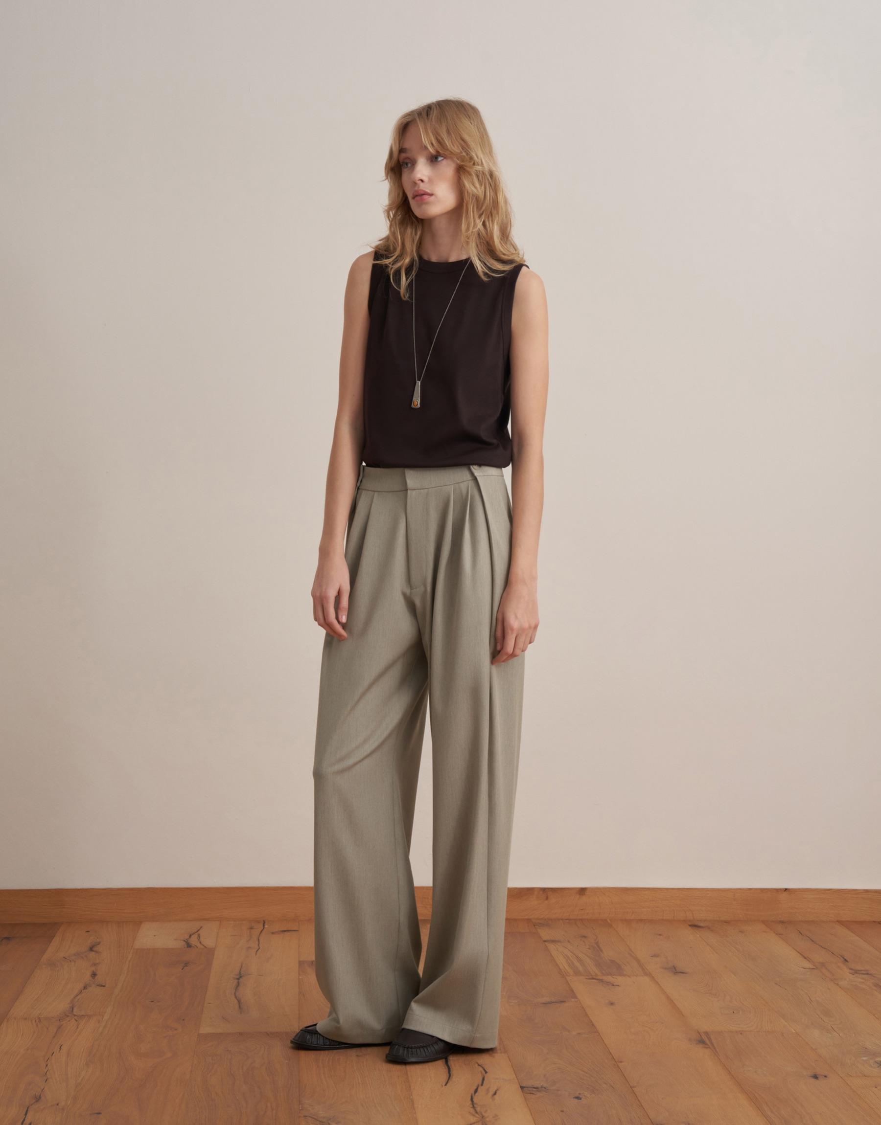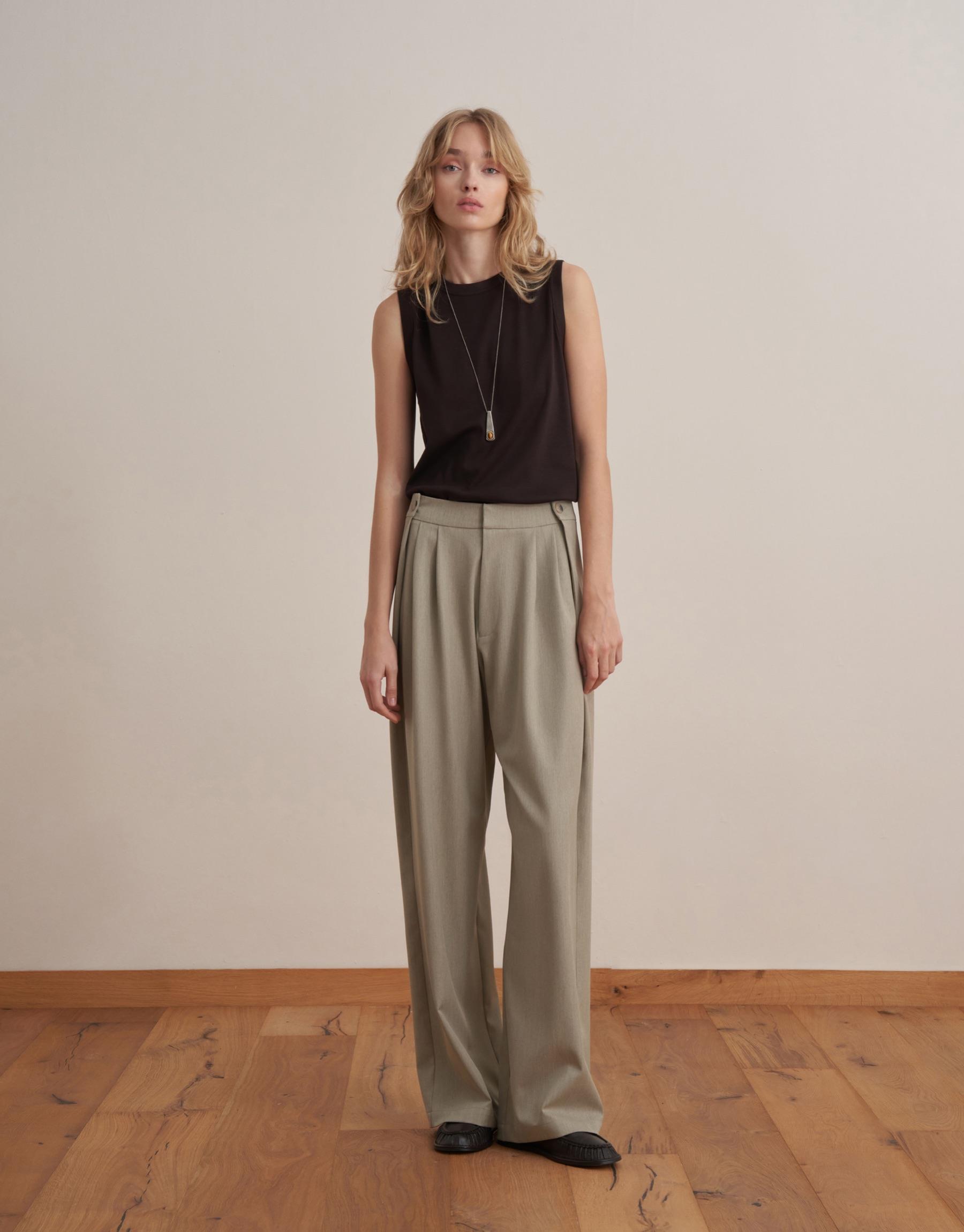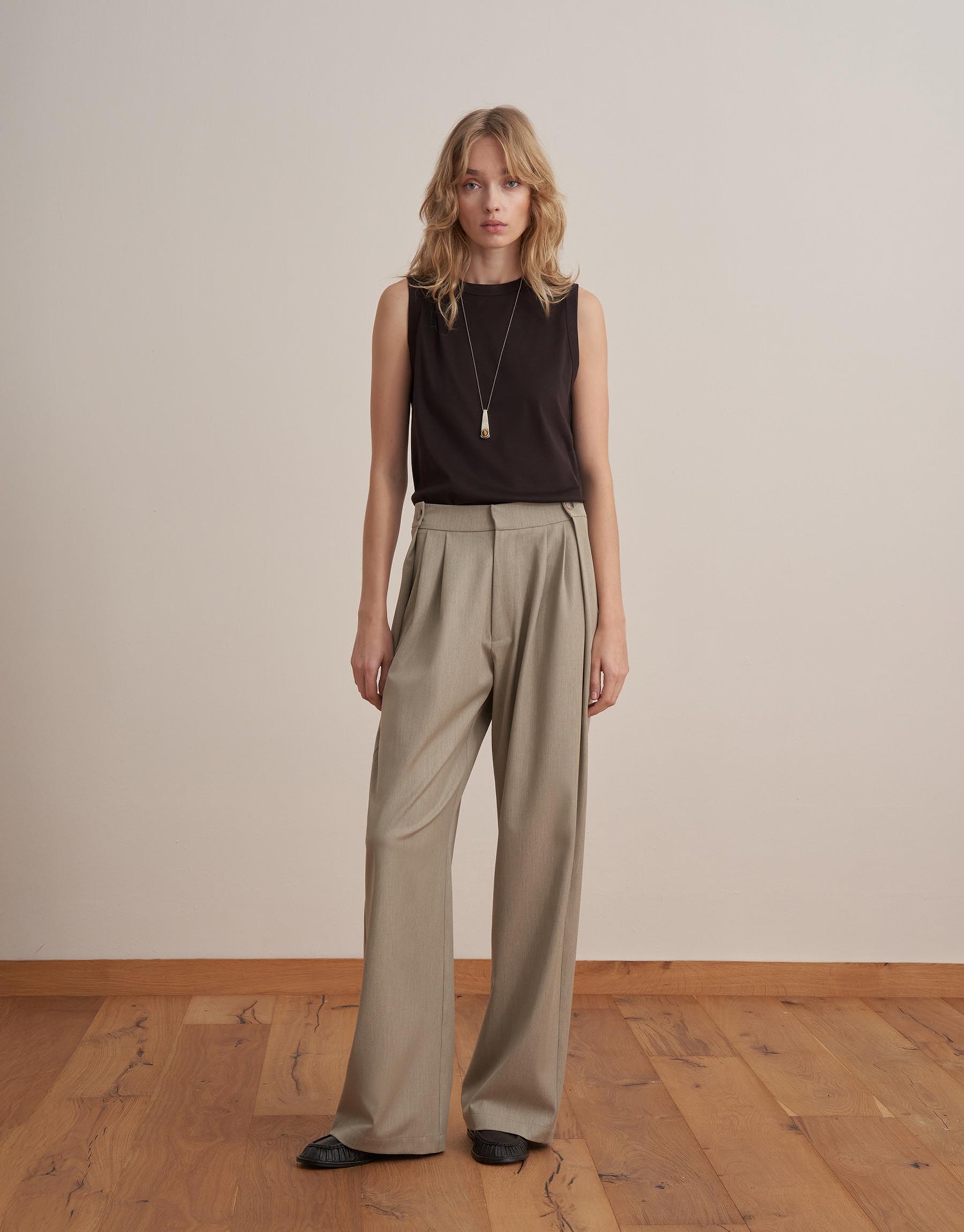 Bayan Bej Düğme Detaylı Pileli Pantolon | KK Design