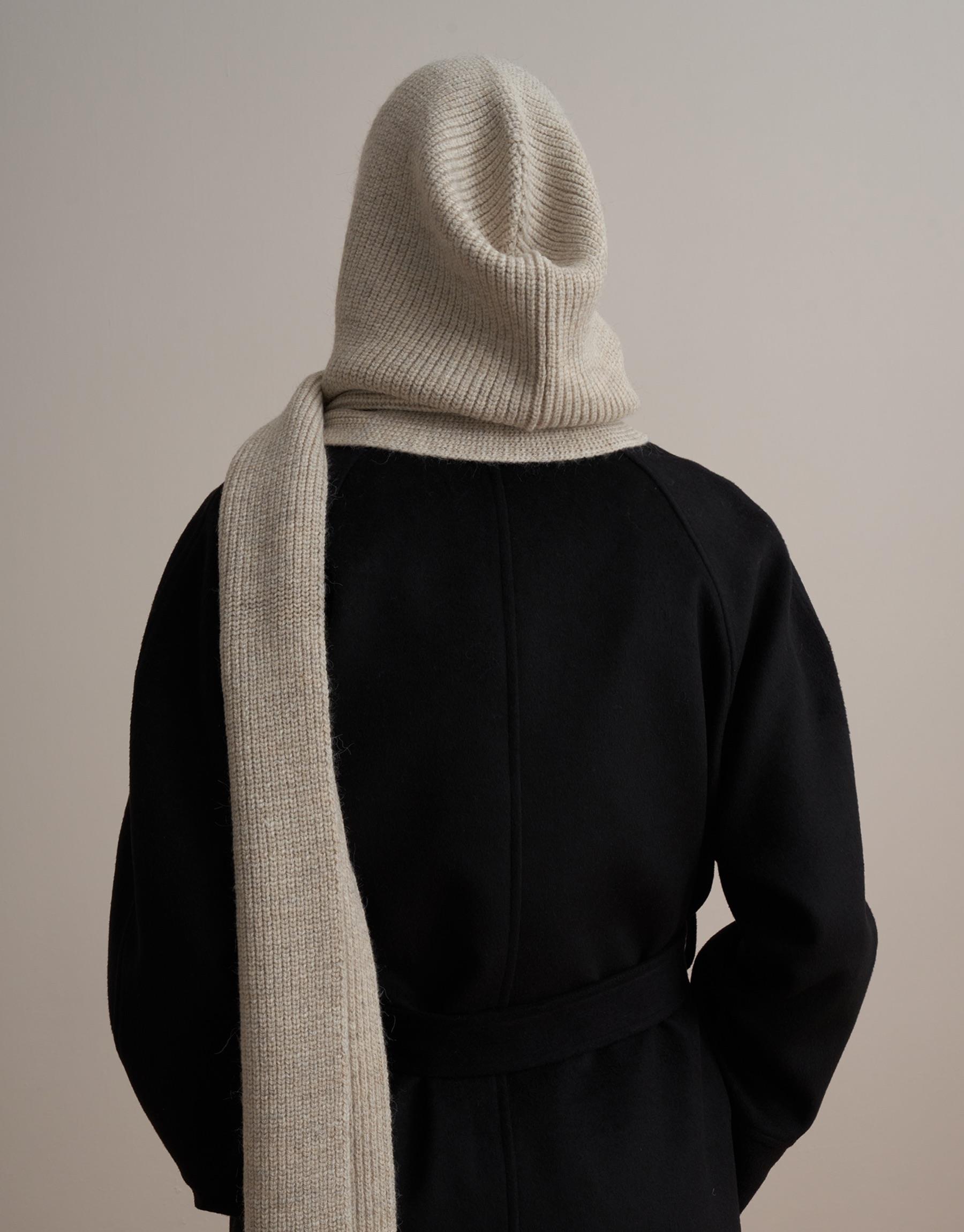 Bayan Bej Kapüşonlu Triko Atkı | KK Design