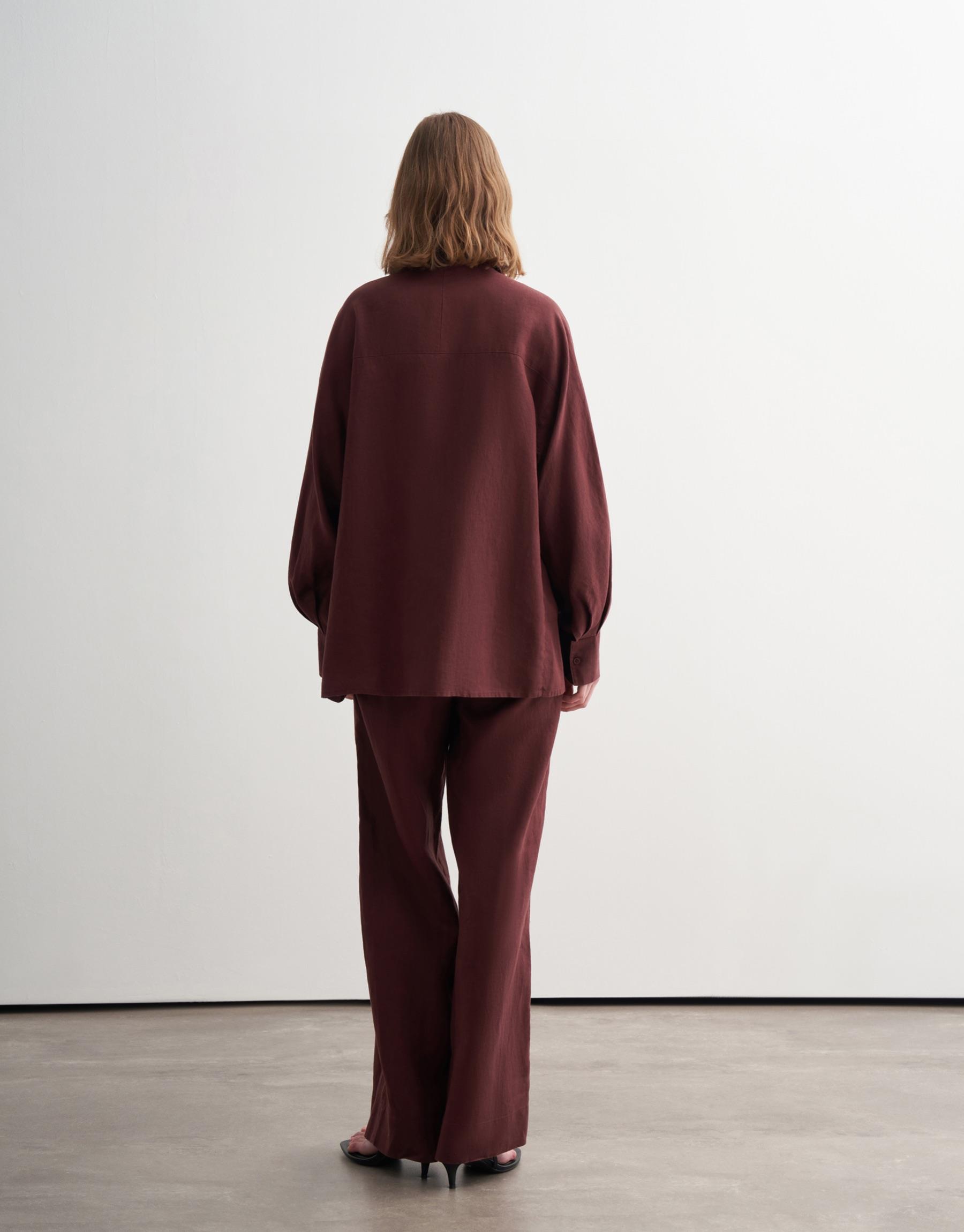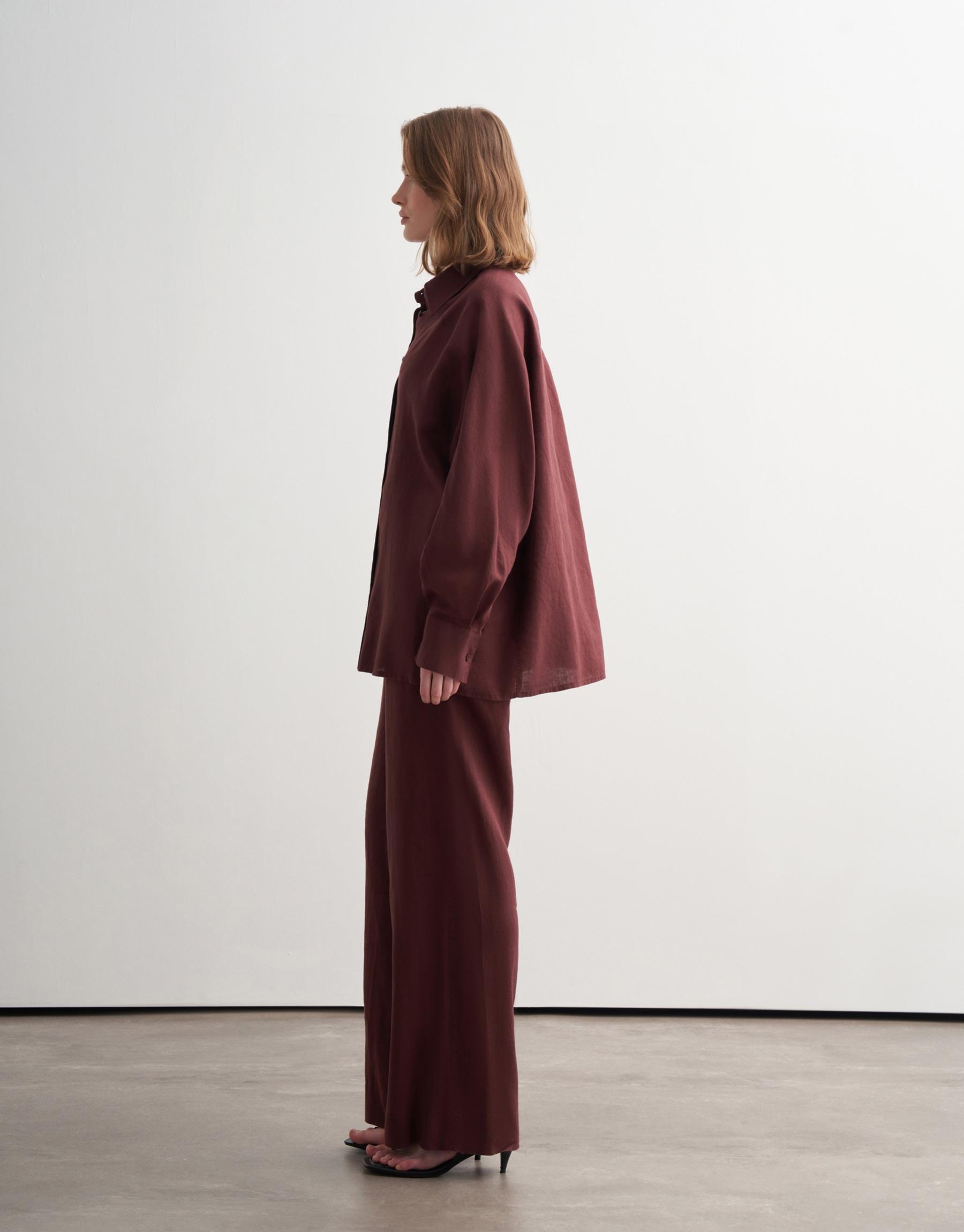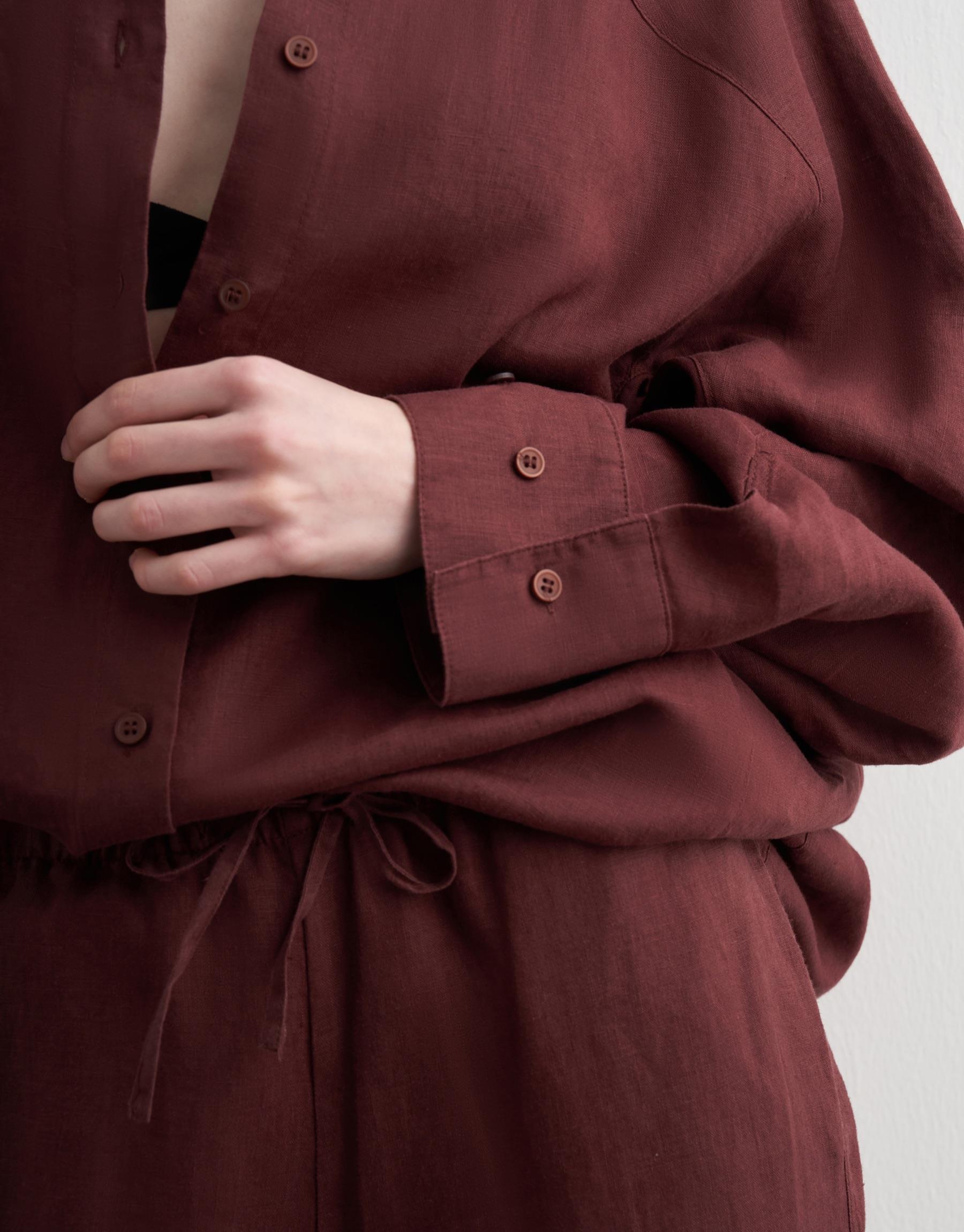 Bayan Bordo %100 Keten Manşet Detaylı Gömlek | KK Design
