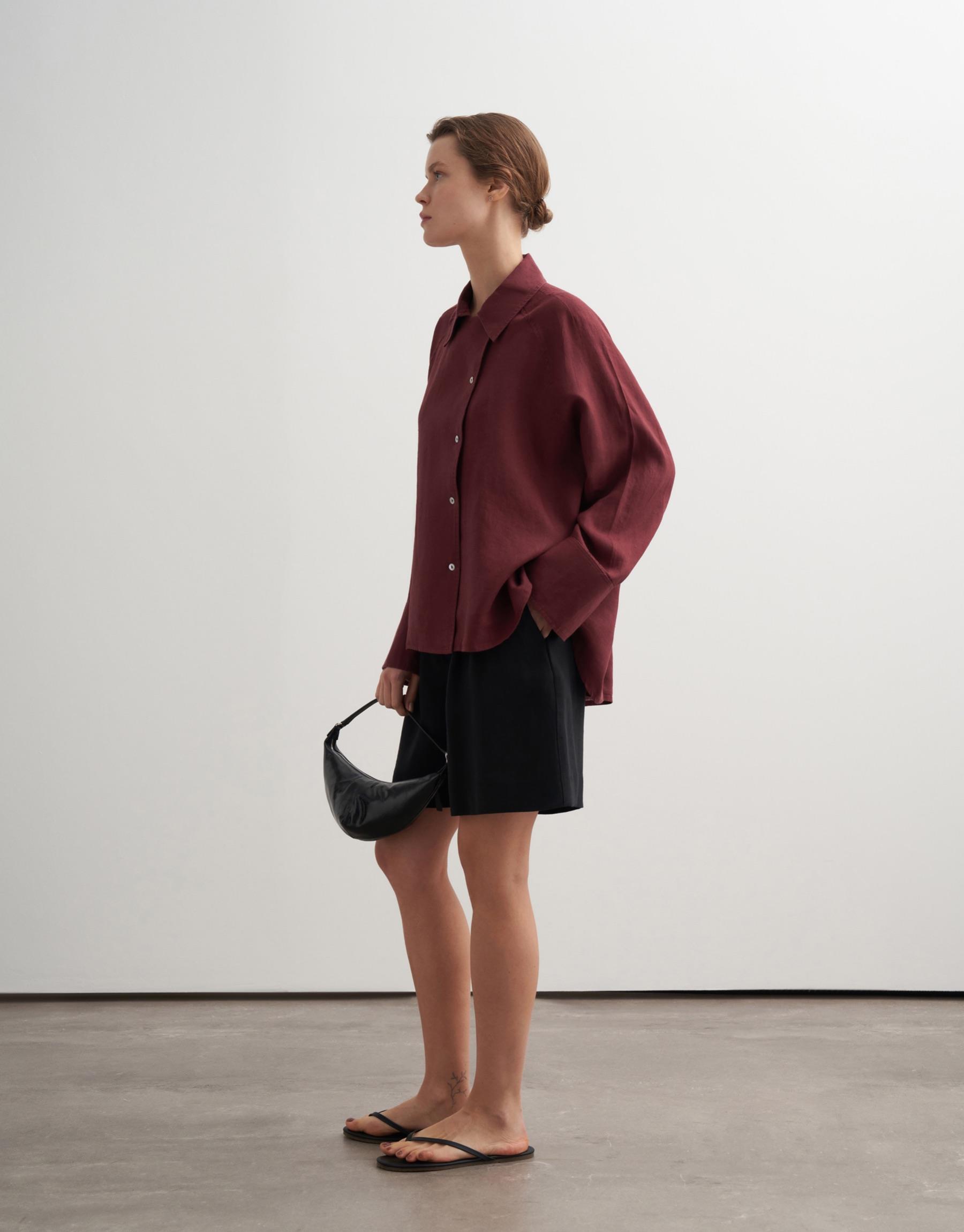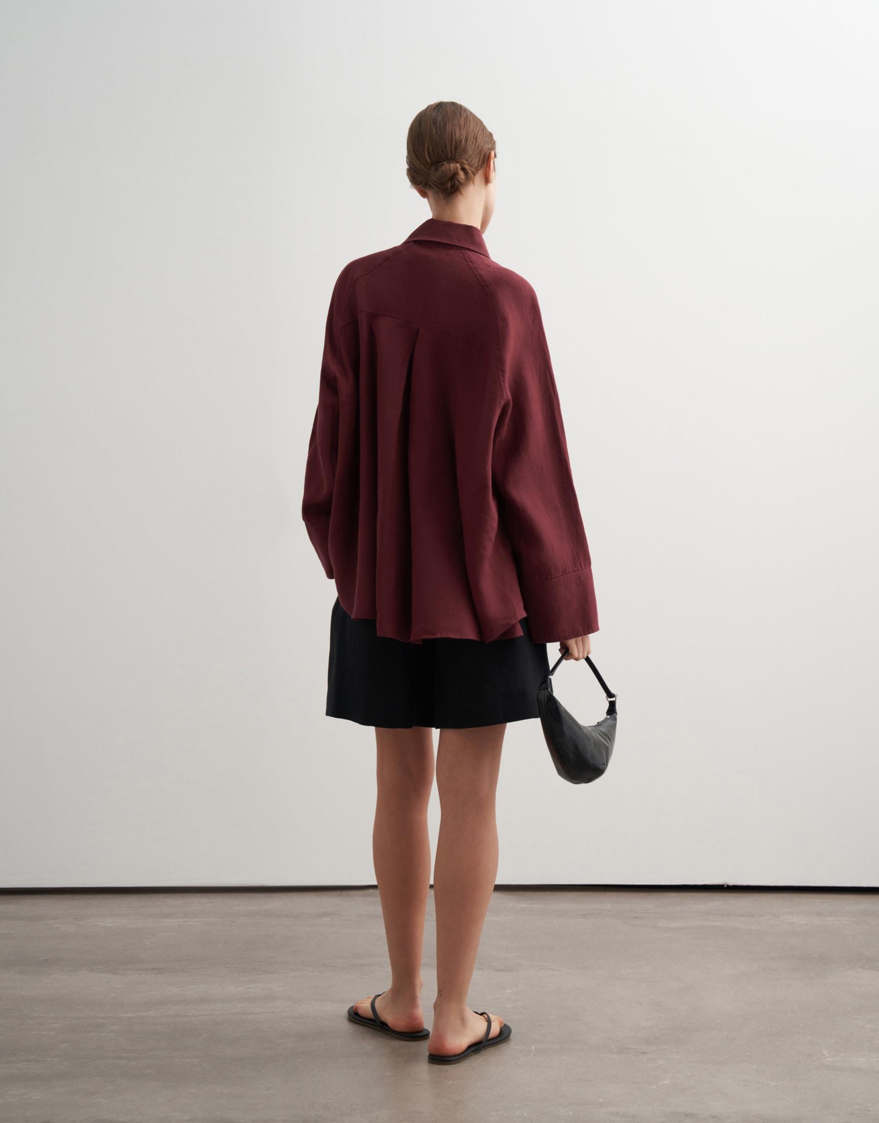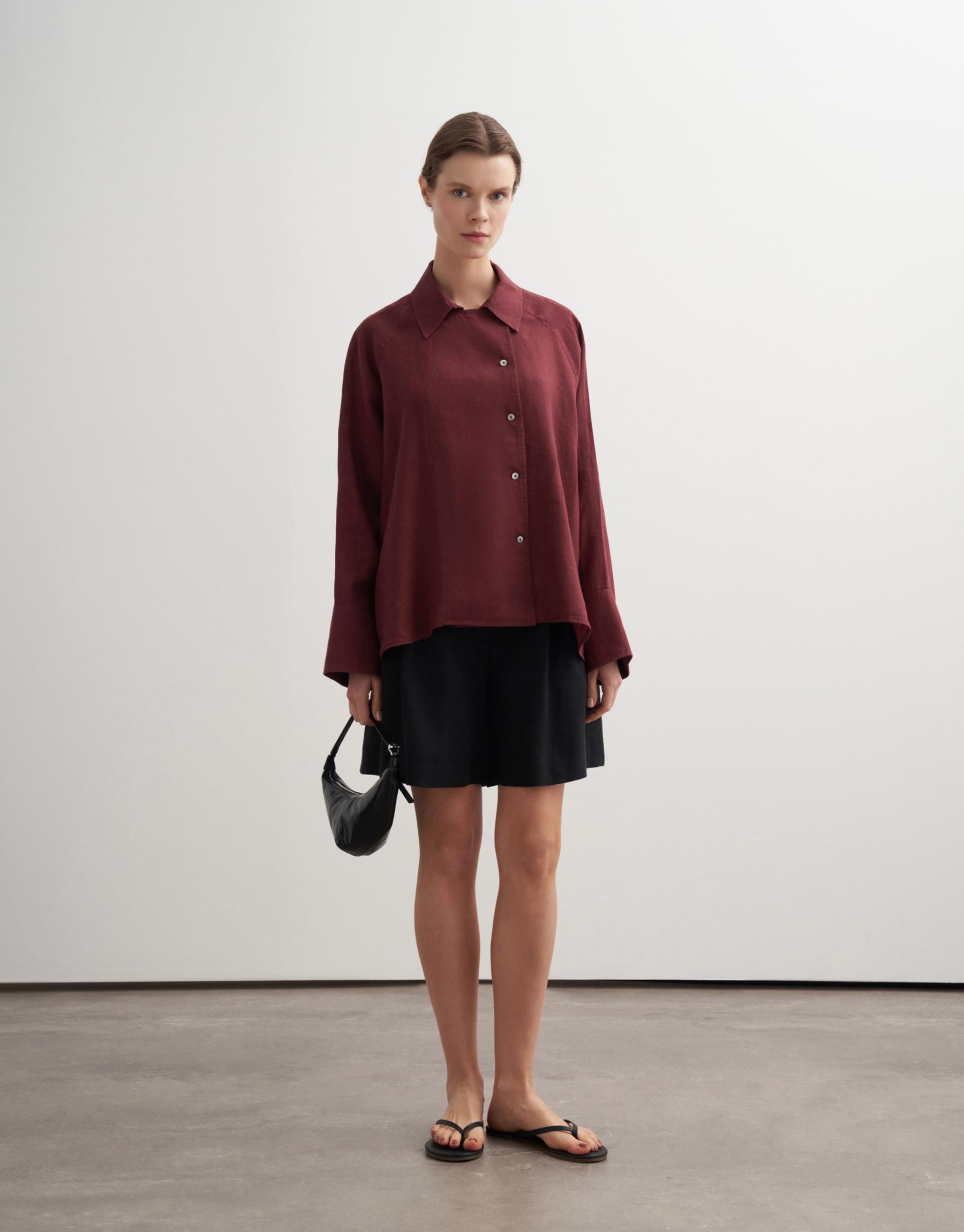Bayan Bordo %100 Keten Reglan Kol Gömlek | KK Design