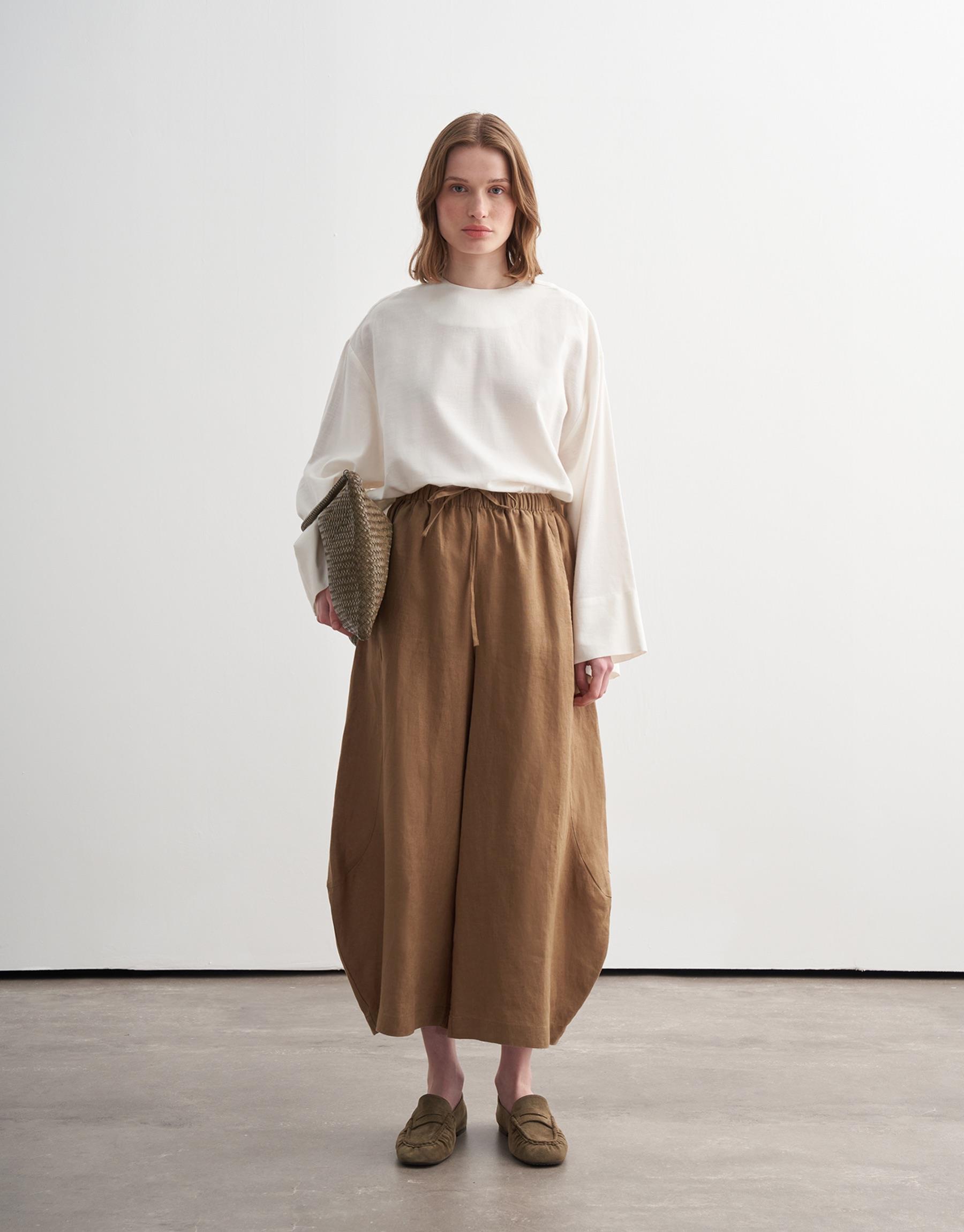 Bayan Camel %100 Keten Şalvar Form Pantolon | KK Design