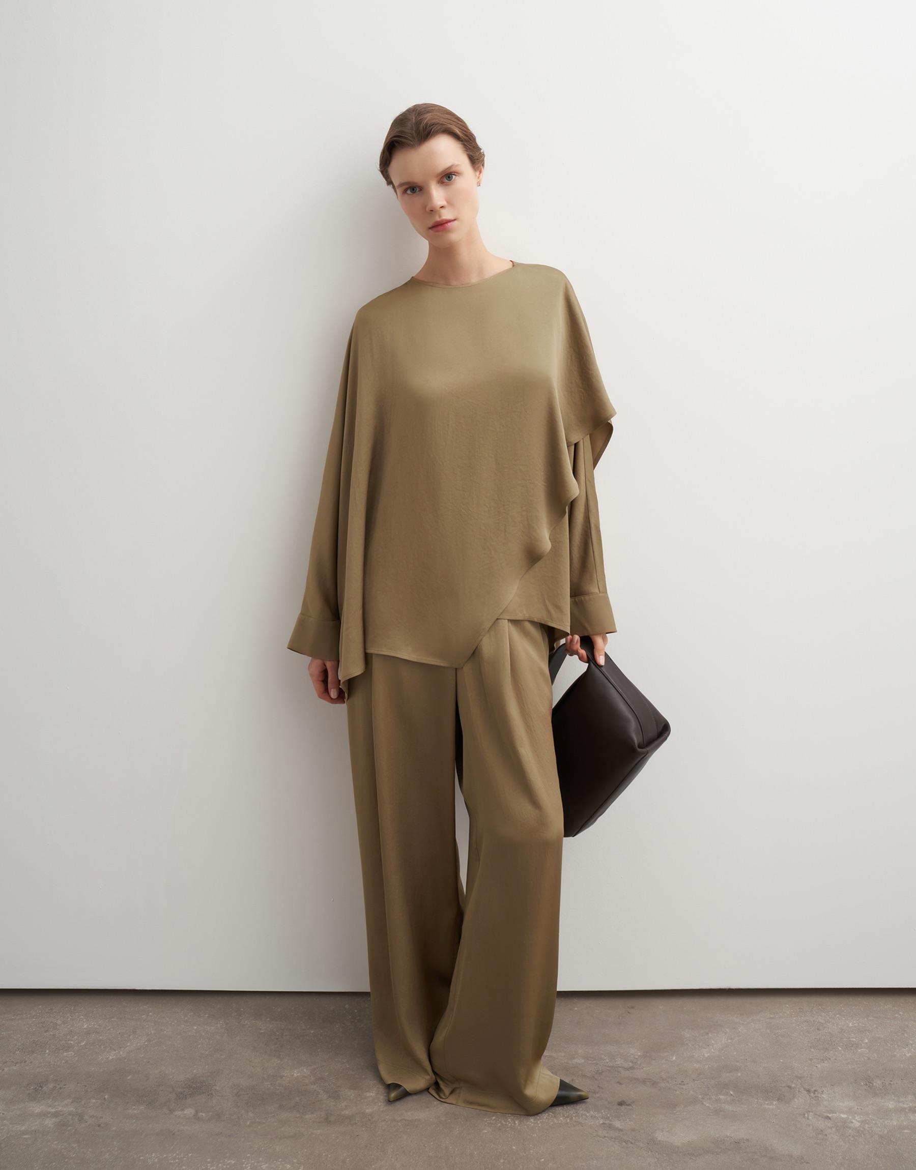 Bayan Koyu Bej Asimetrik Kesim Dökümlü Pantolon | KK Design