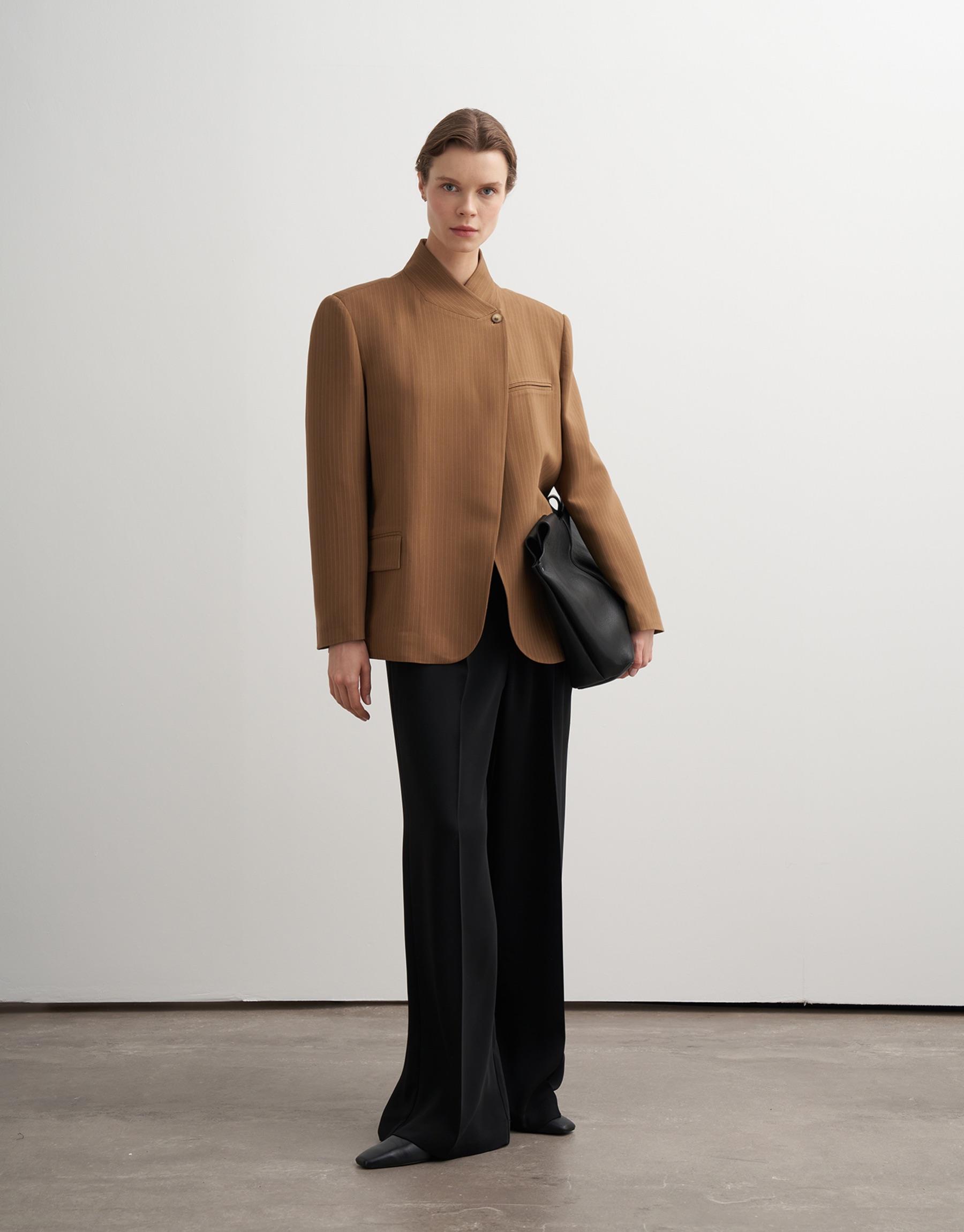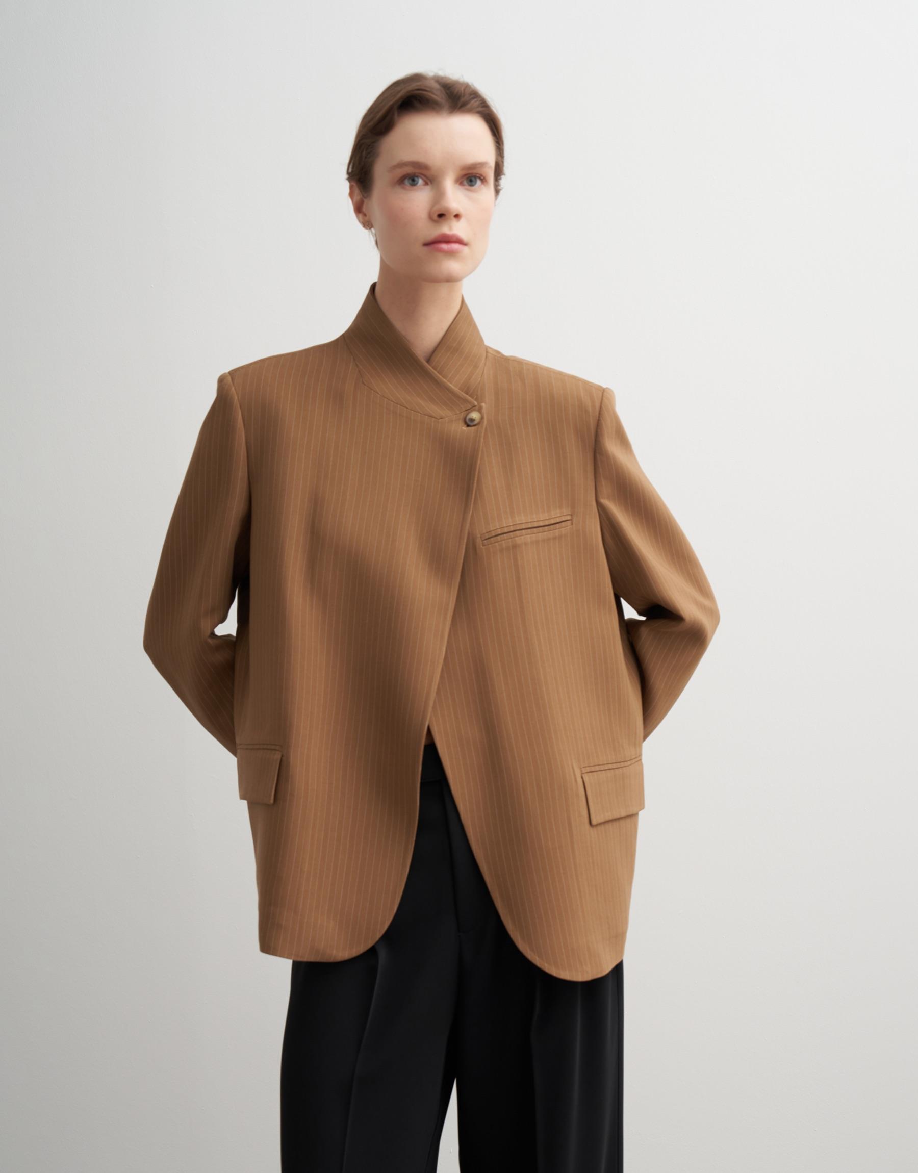 Yüksek Yaka Asimetrik Kesim Blazer Koyu Hardal