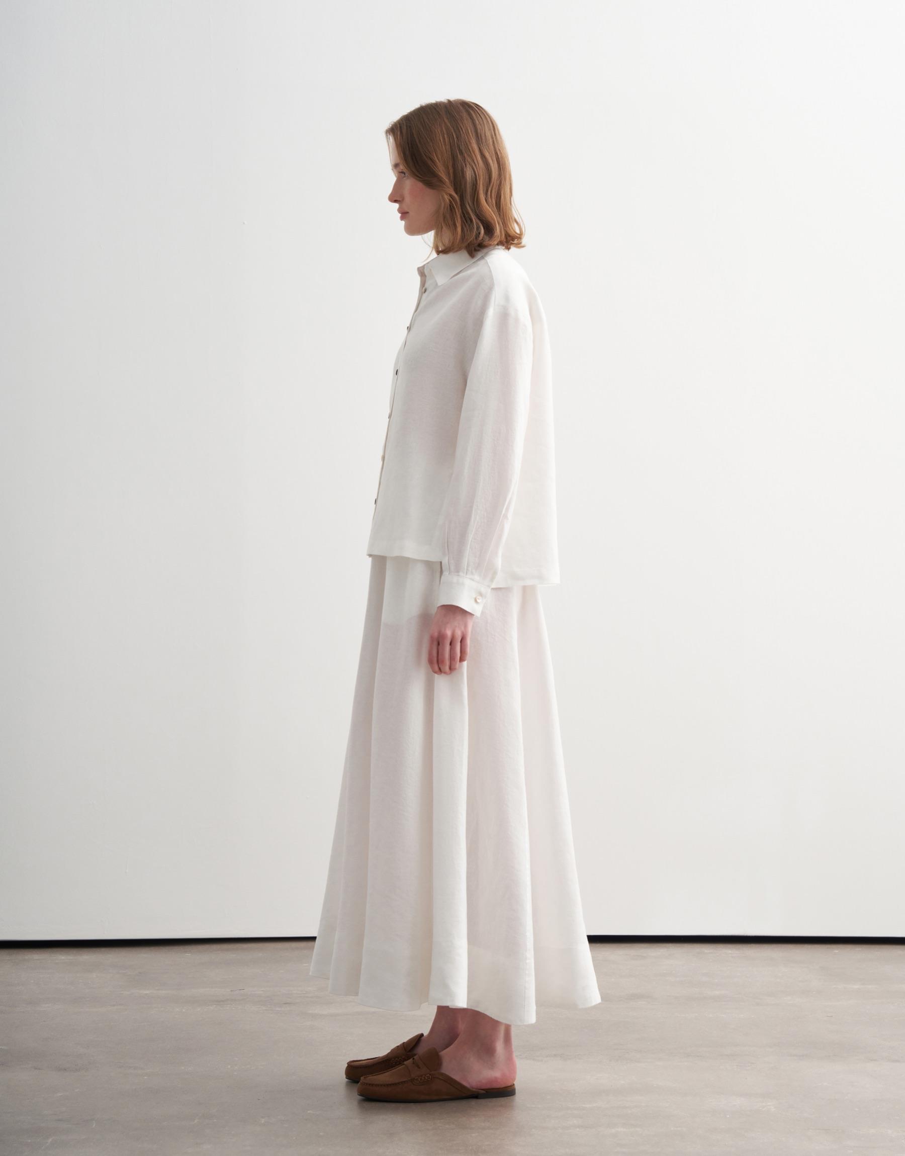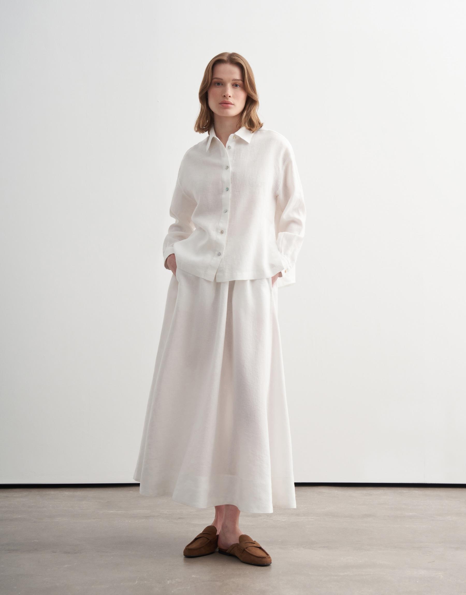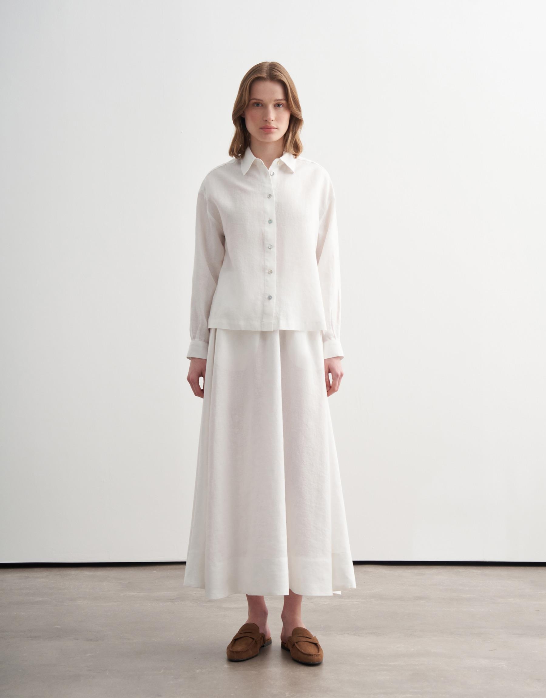 Bayan Ekru %100 Keten Kısa Gömlek | KK Design