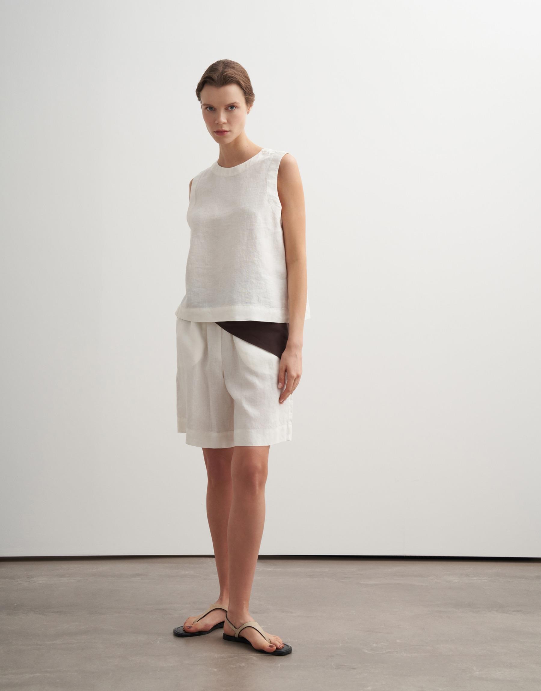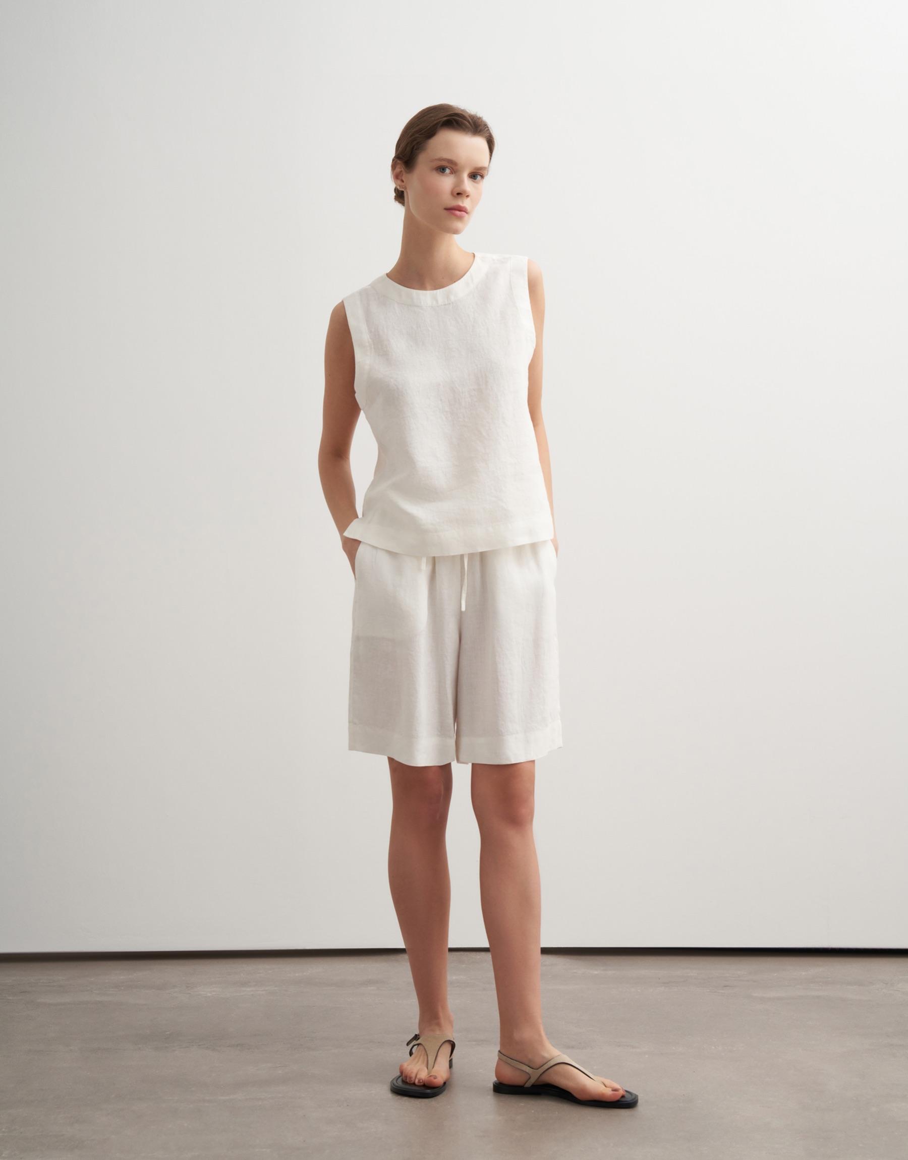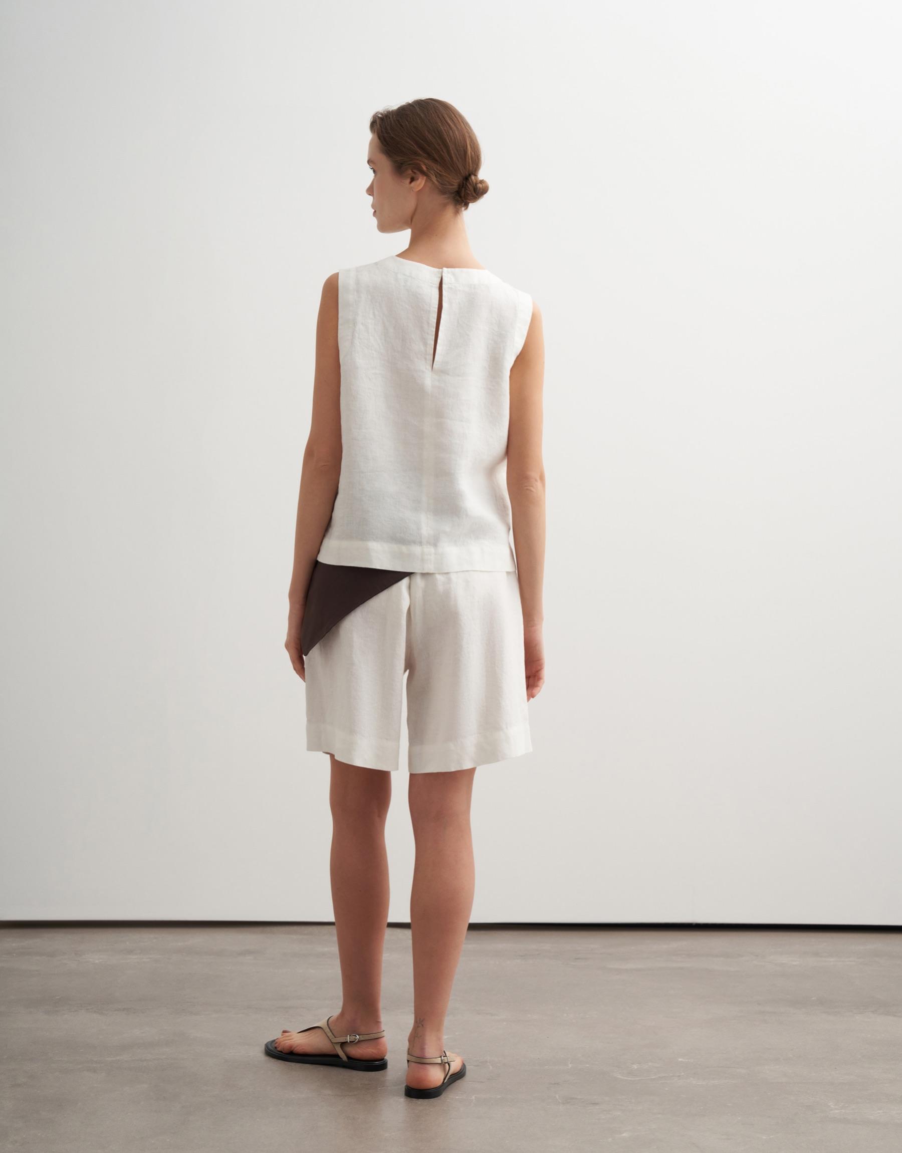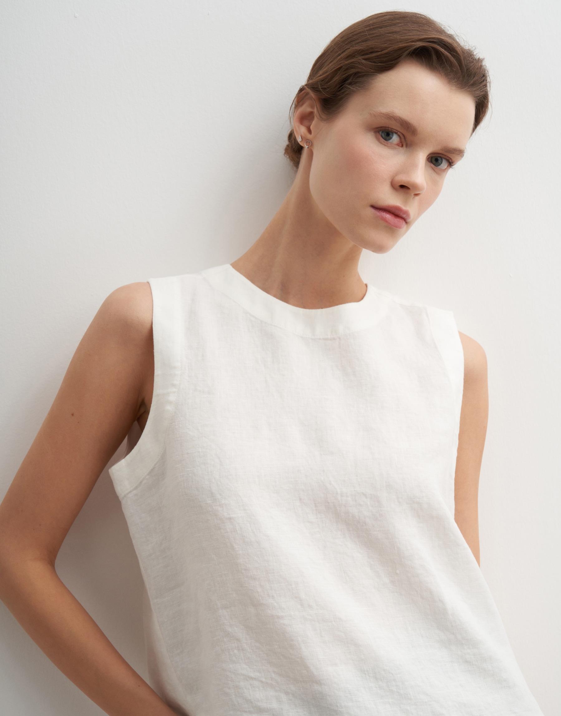 Bayan Ekru %100 Keten Kolsuz Bluz | KK Design