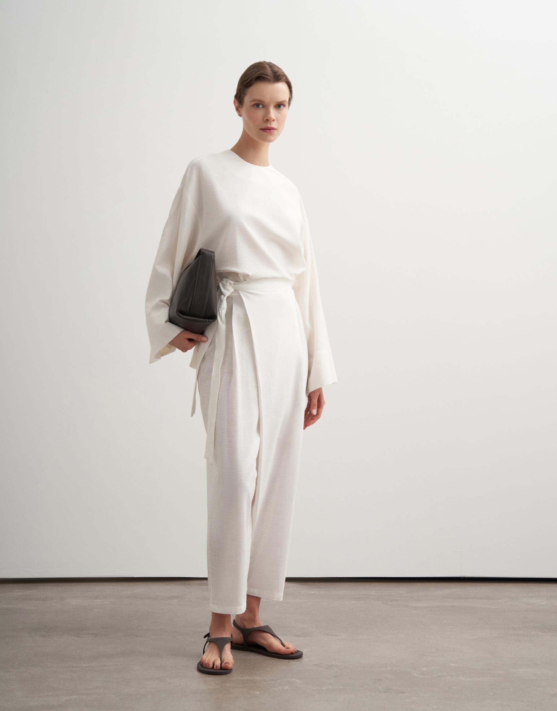 Bayan Ekru Keten Basic Bluz | KK Design