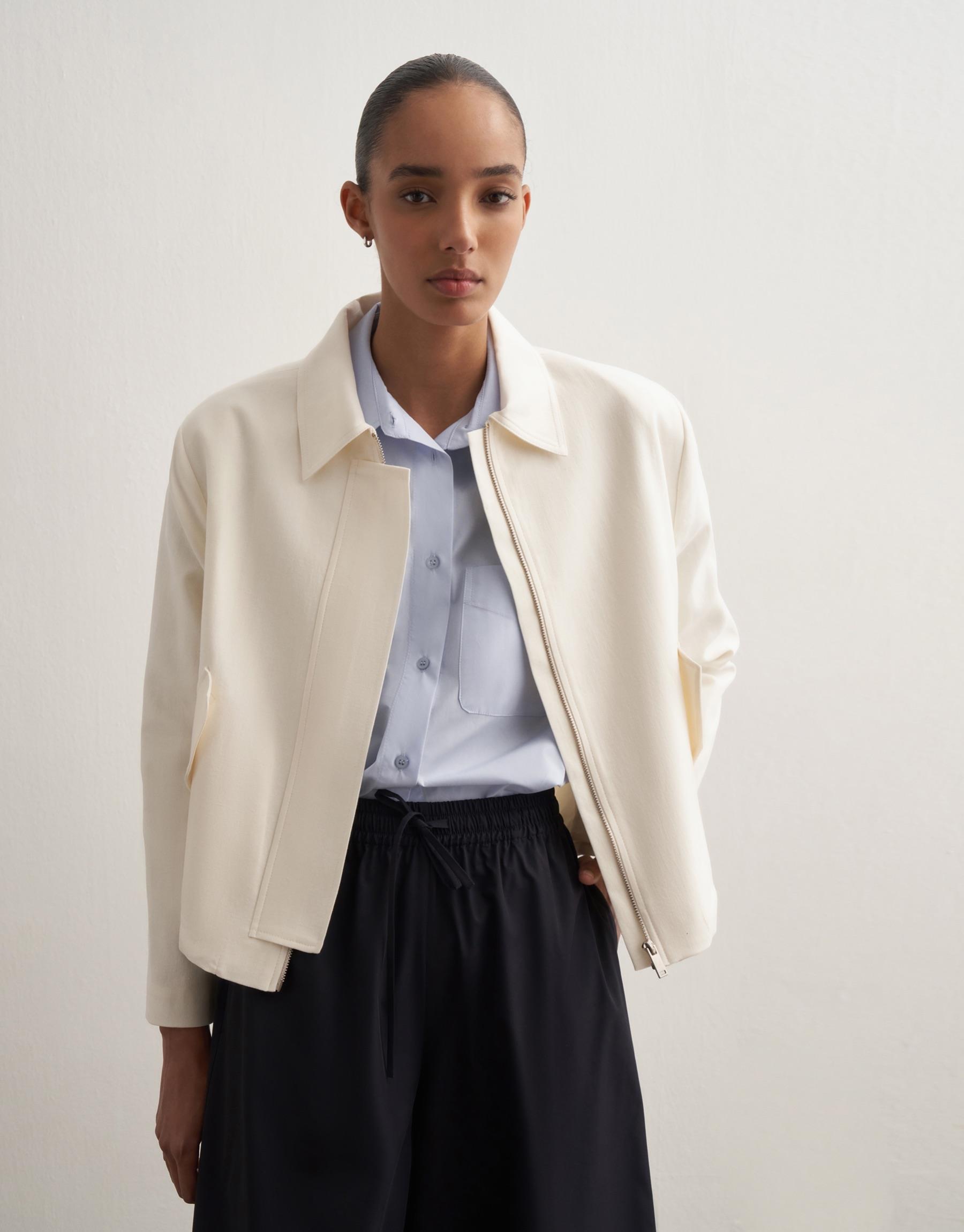 Bayan Ekru Keten Karışımlı Vatkalı Ceket | KK Design