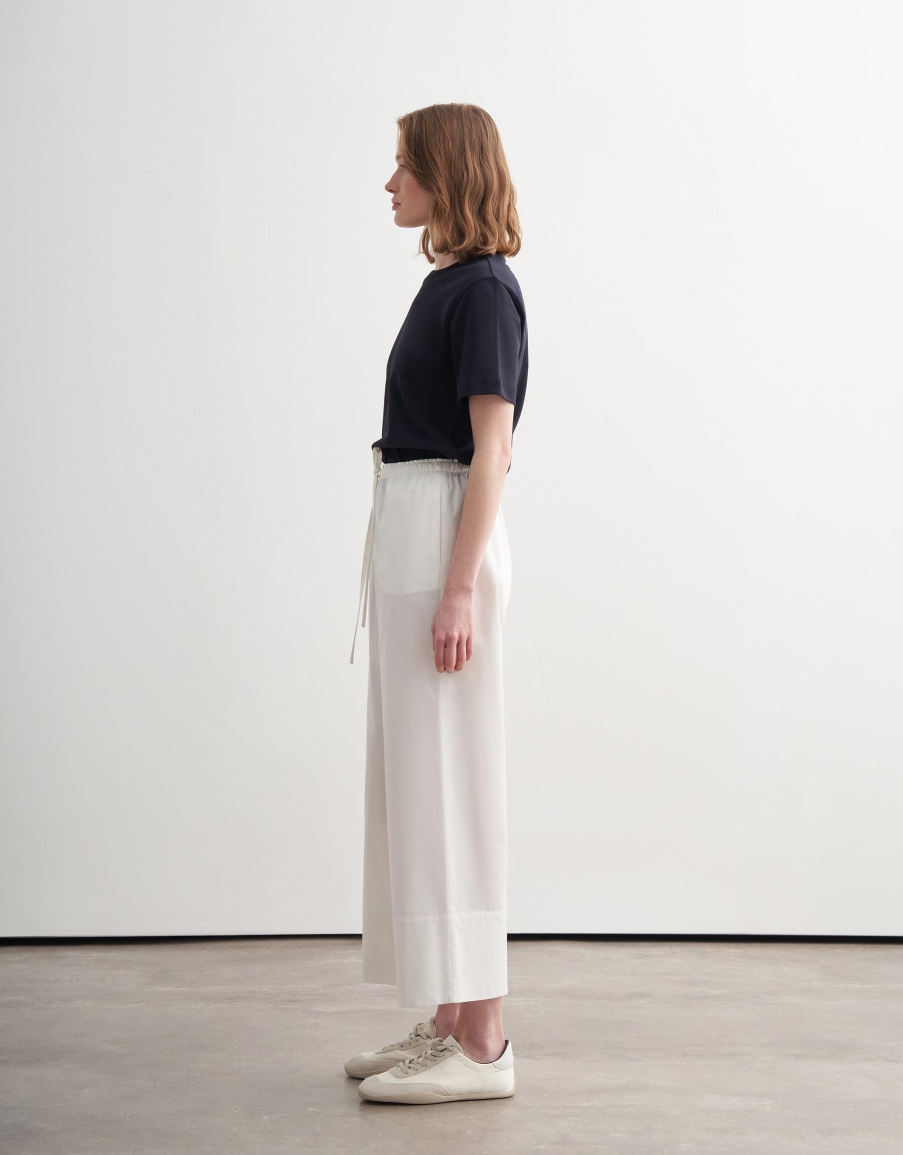 %100 Keten Palazzo Pantolon Ekru