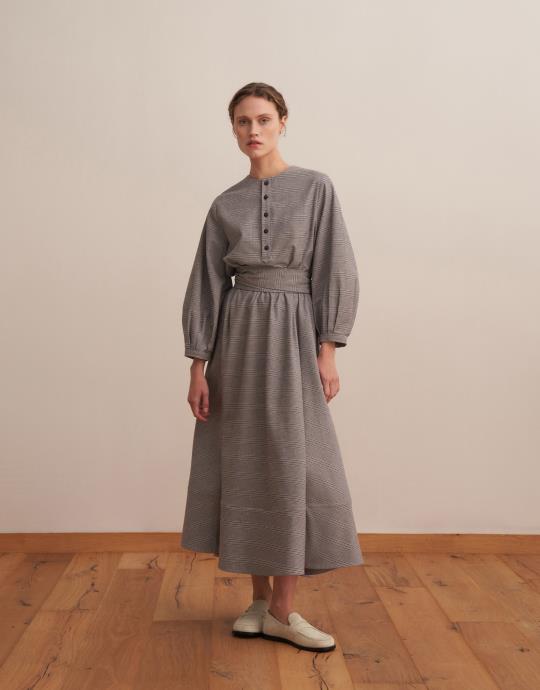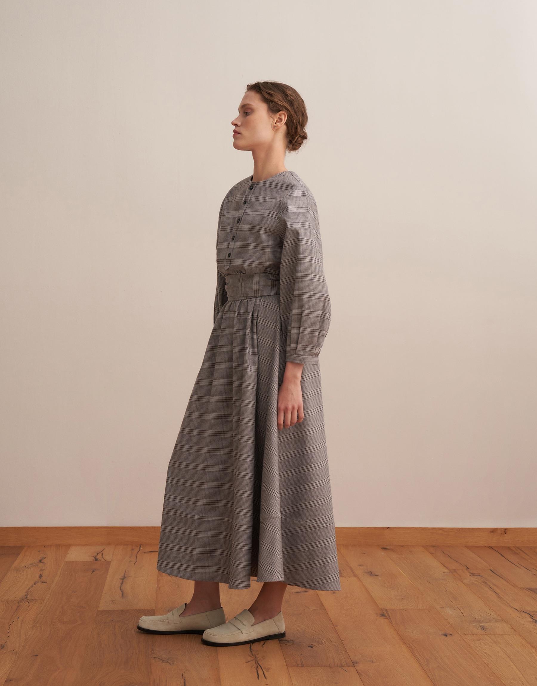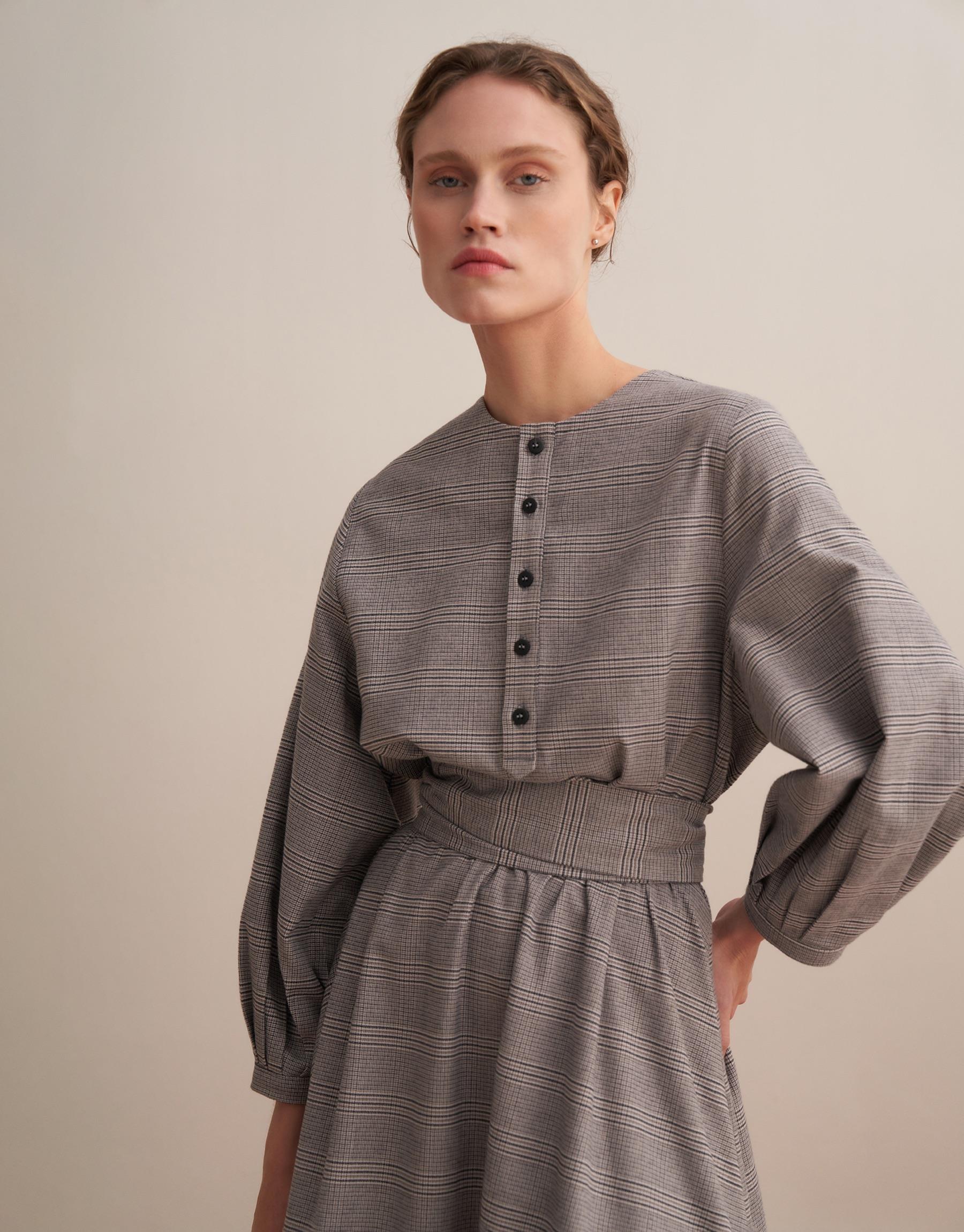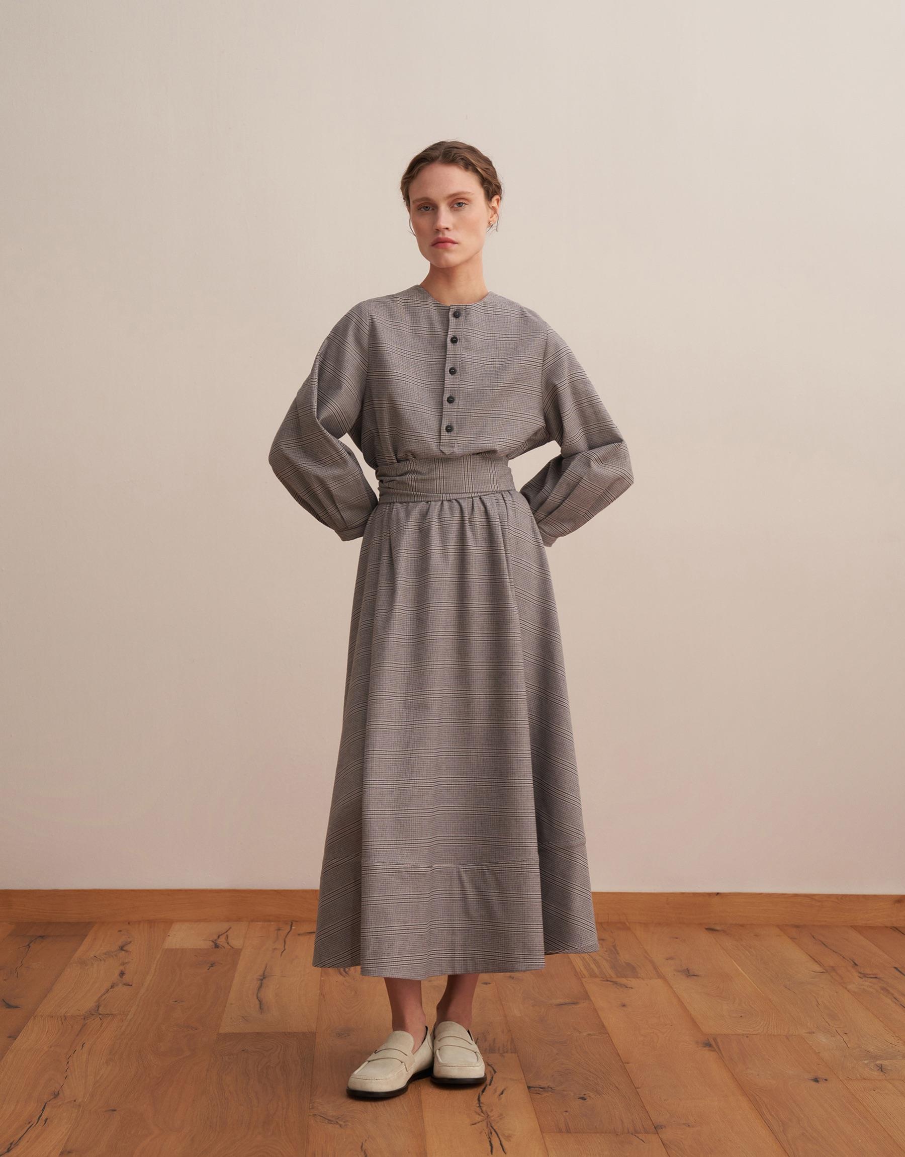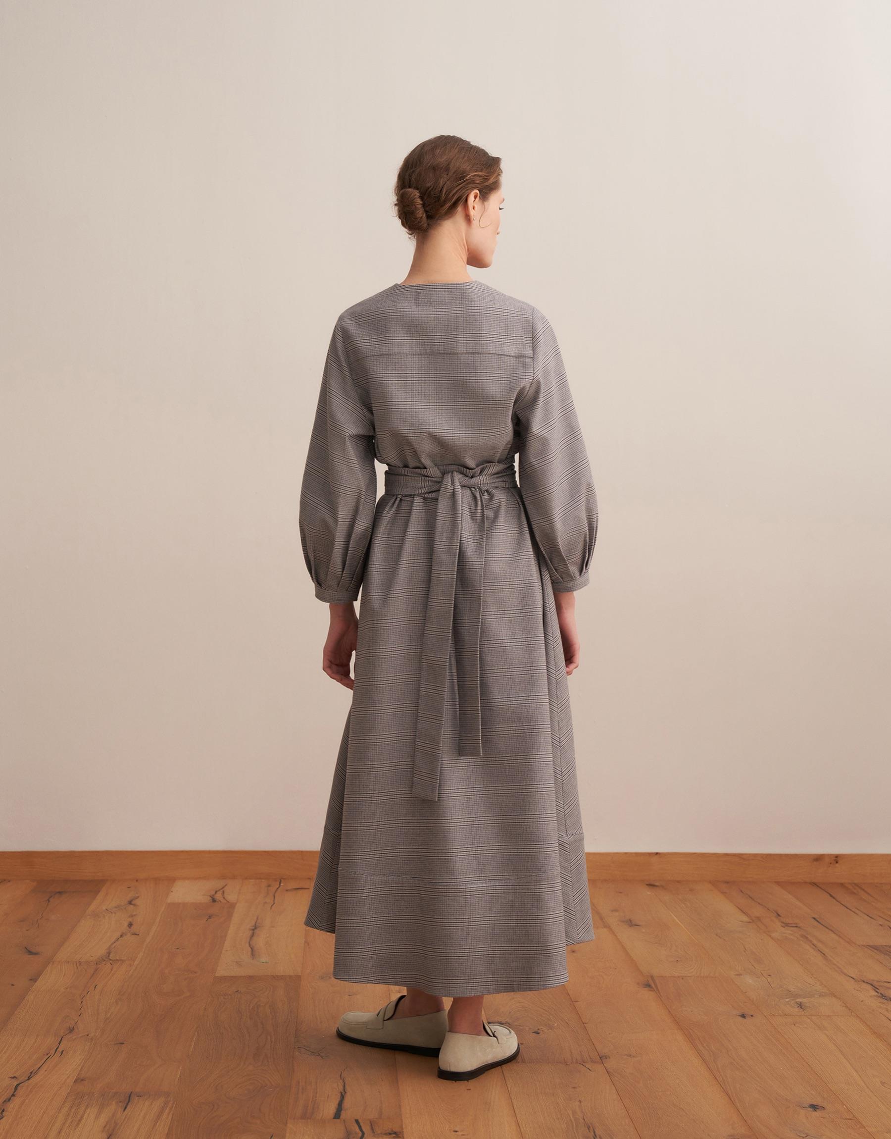 Bayan Gri Kemer Detaylı Ekose Elbise | KK Design