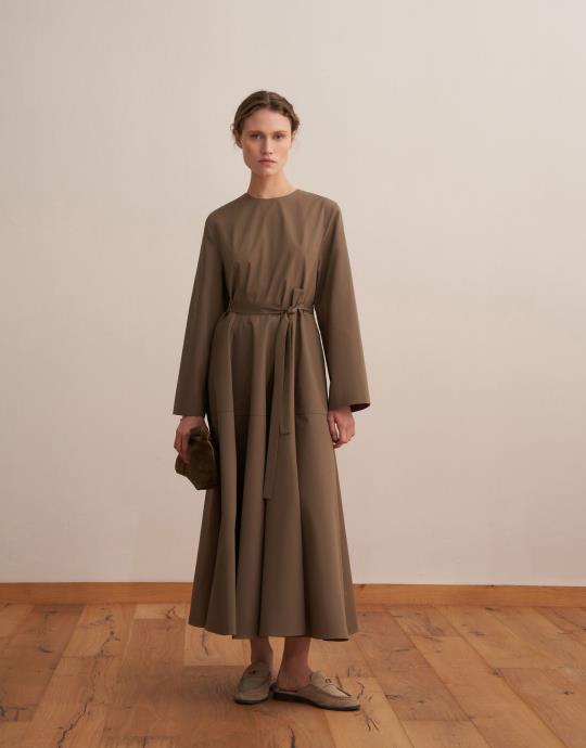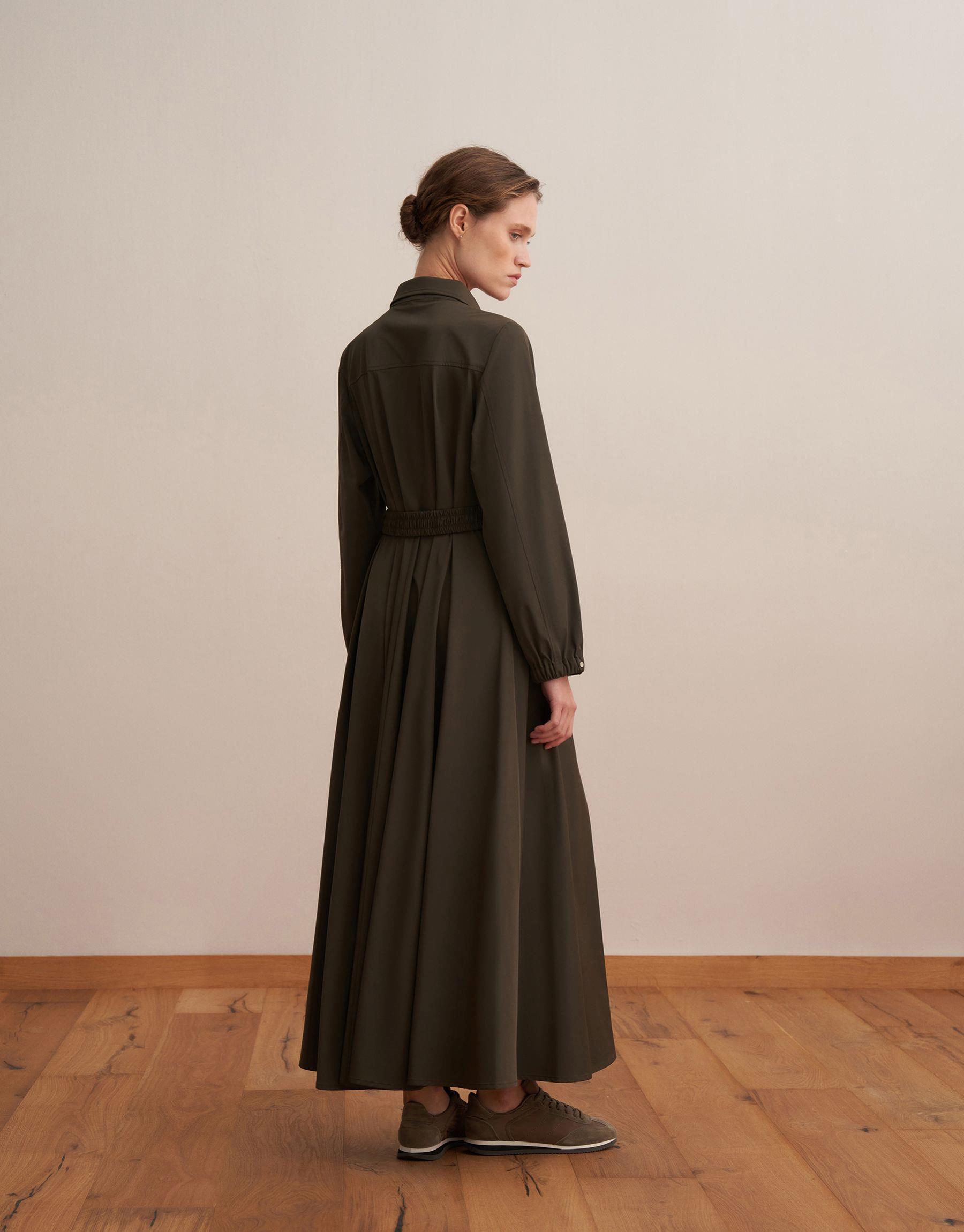 %100 Koton Kesik Detaylı Elbise Açık Haki