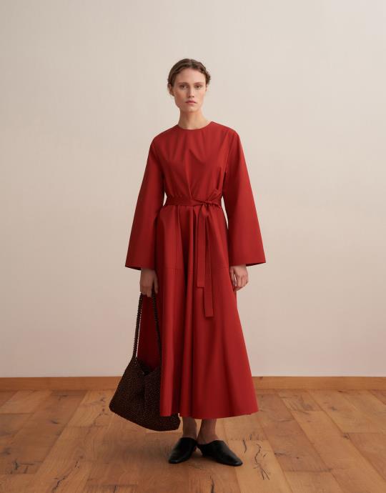 %100 Koton Kesik Detaylı Elbise Kiremit