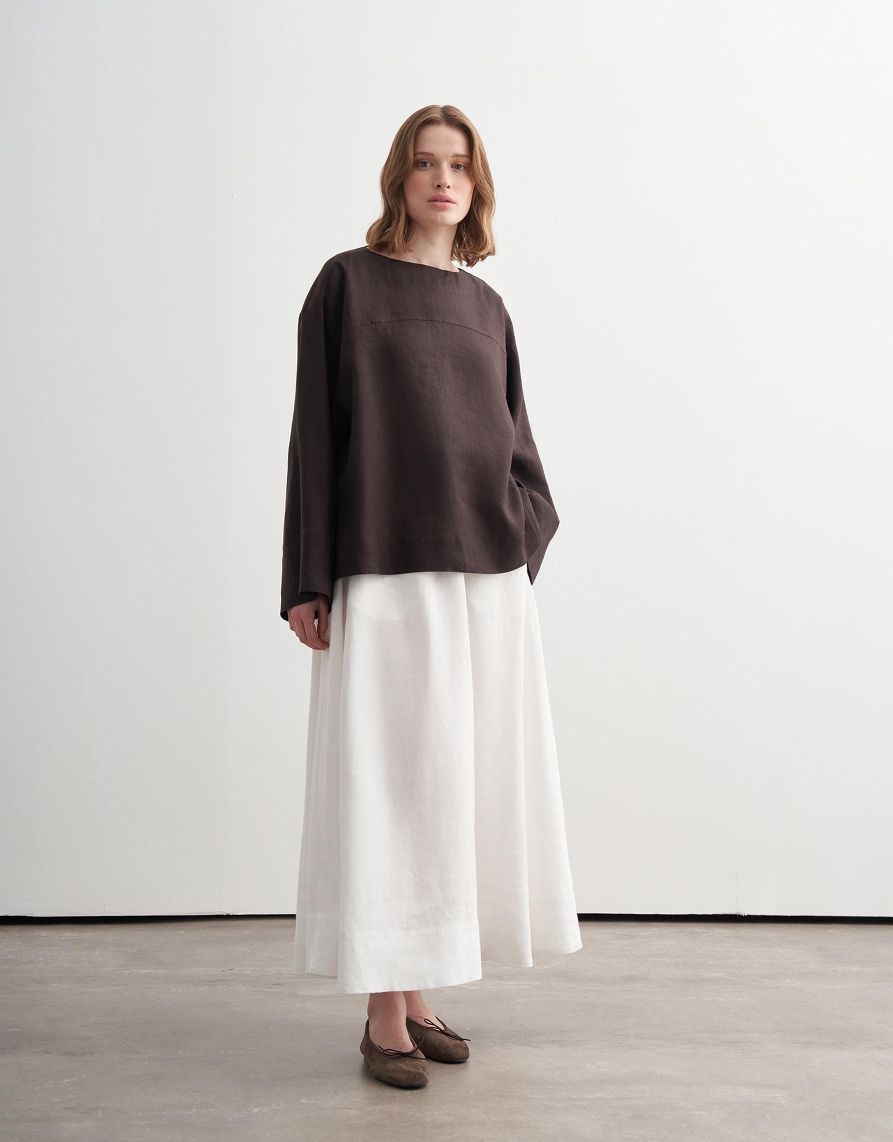 Bayan Kahverengi %100 Keten Kesik Detaylı Gömlek | KK Design