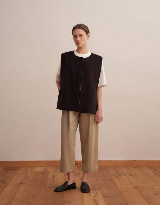 Yün Karışımlı Fermuarlı Yelek Koyu Yağ Yeşili