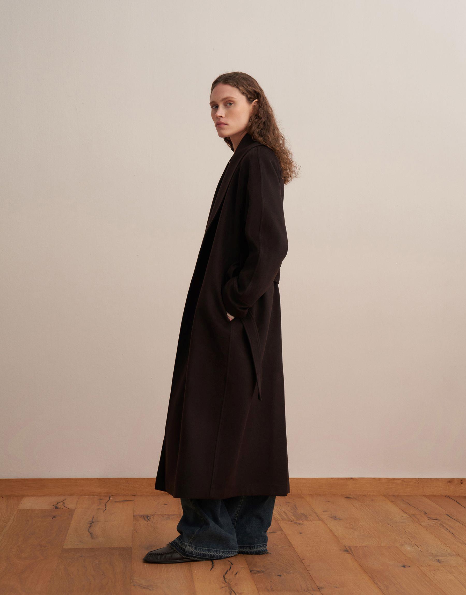 Bayan Kahverengi Şal Yaka Yün Palto | KK Design
