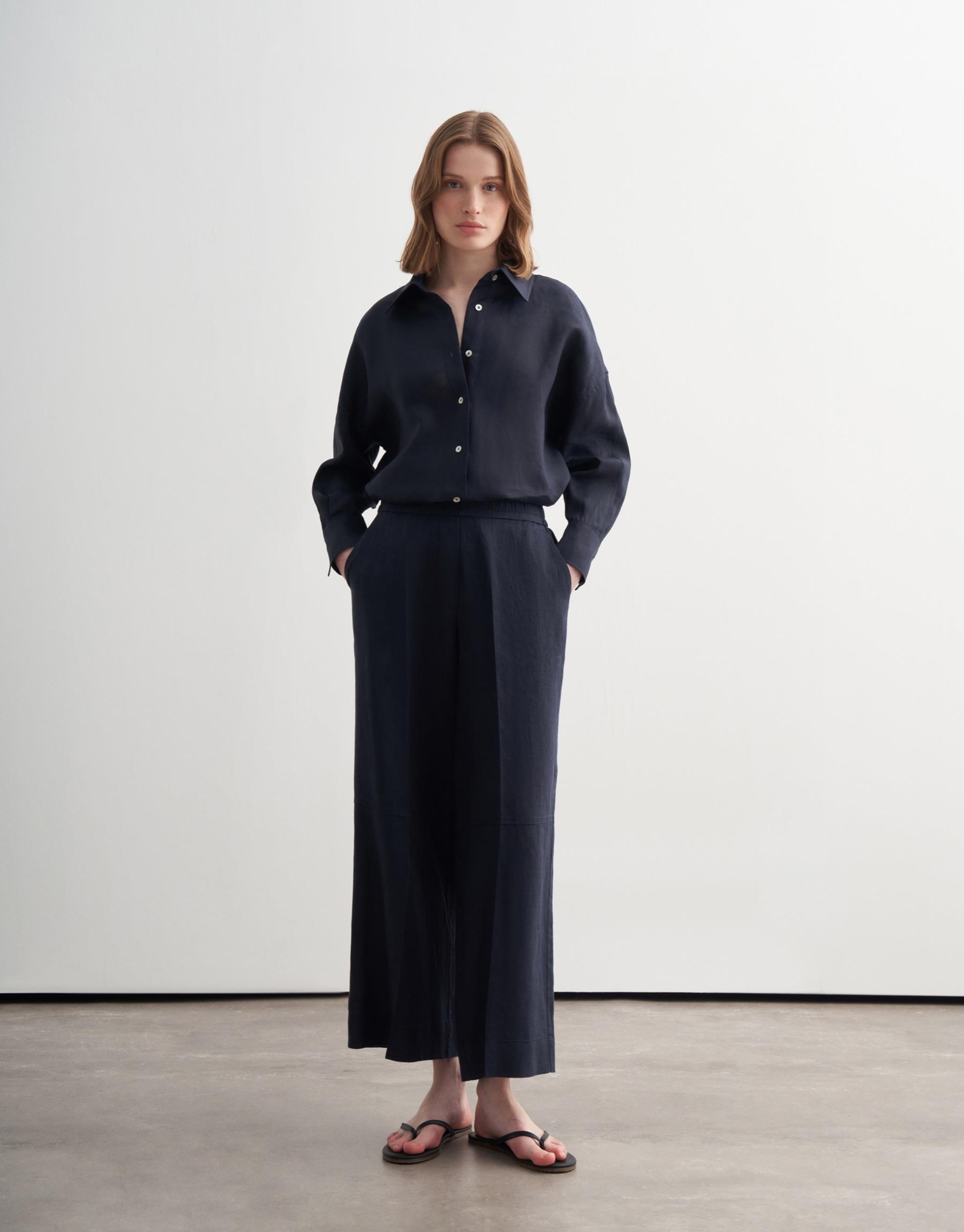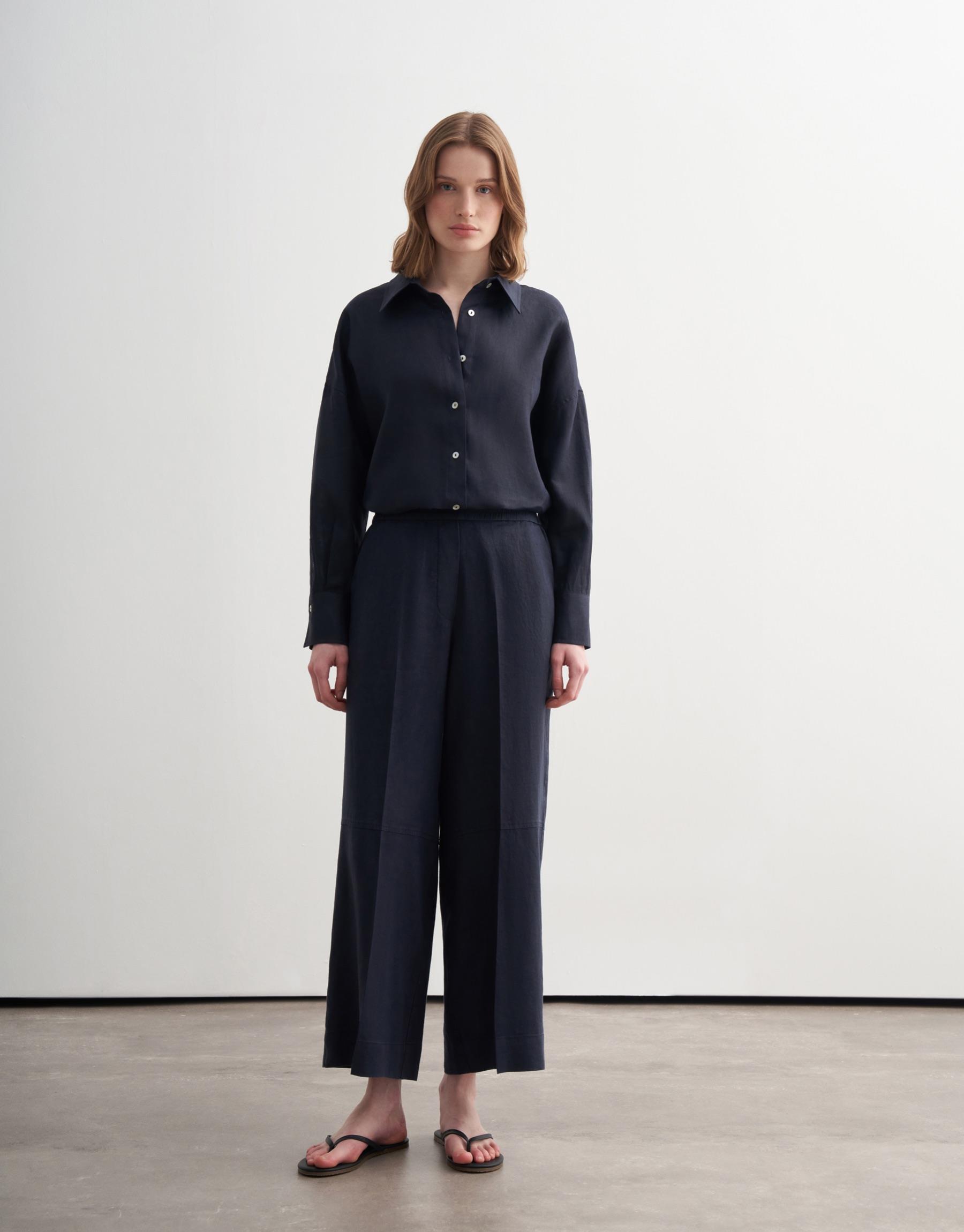 Bayan Lacivert %100 Keten Culotte Pantolon | KK Design