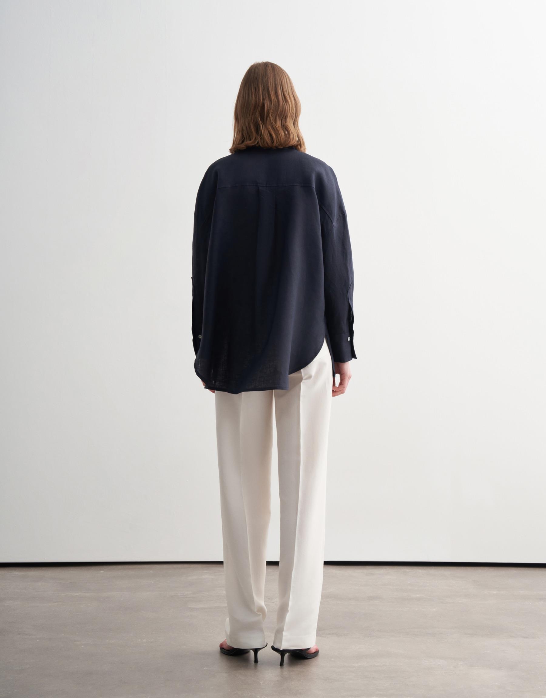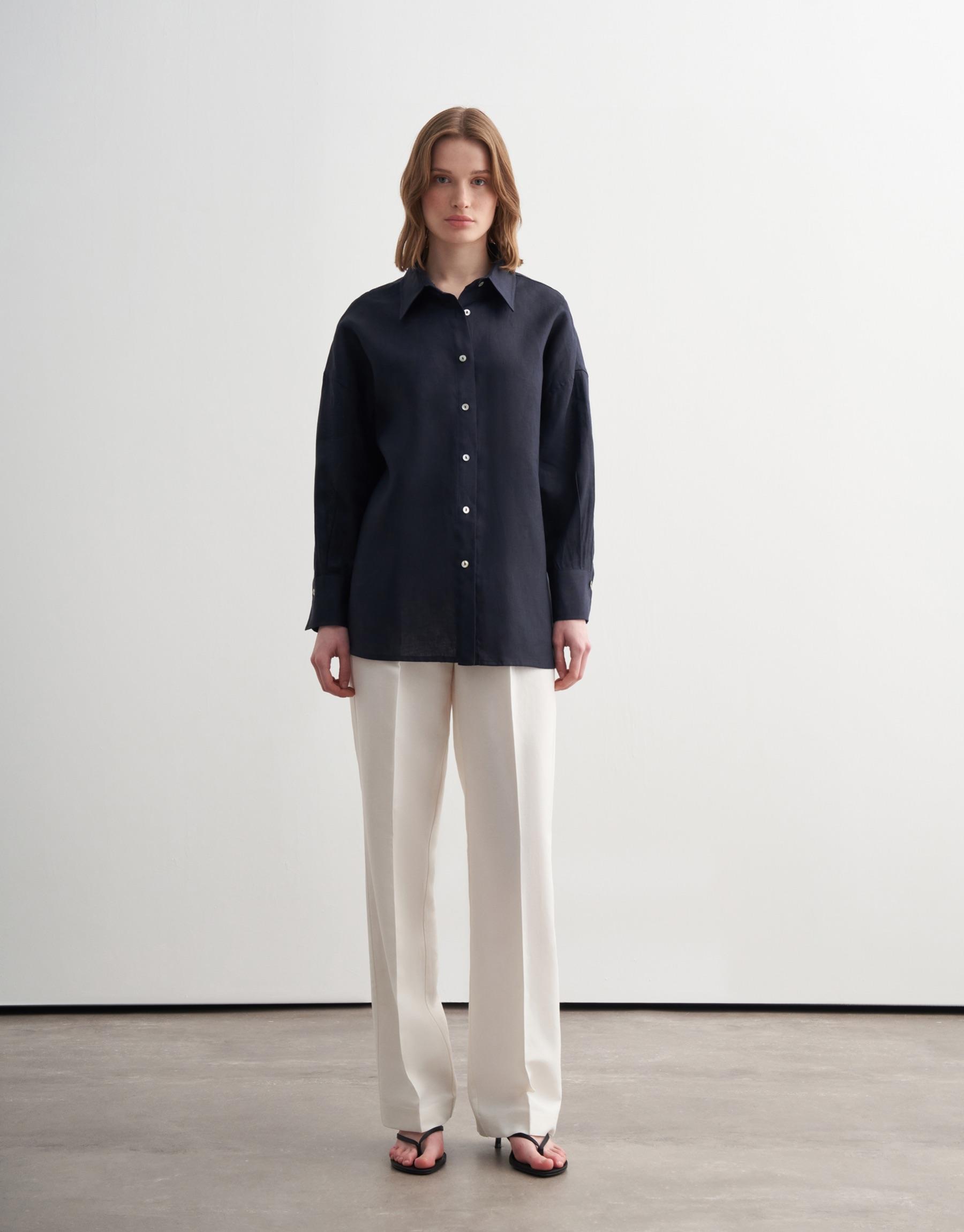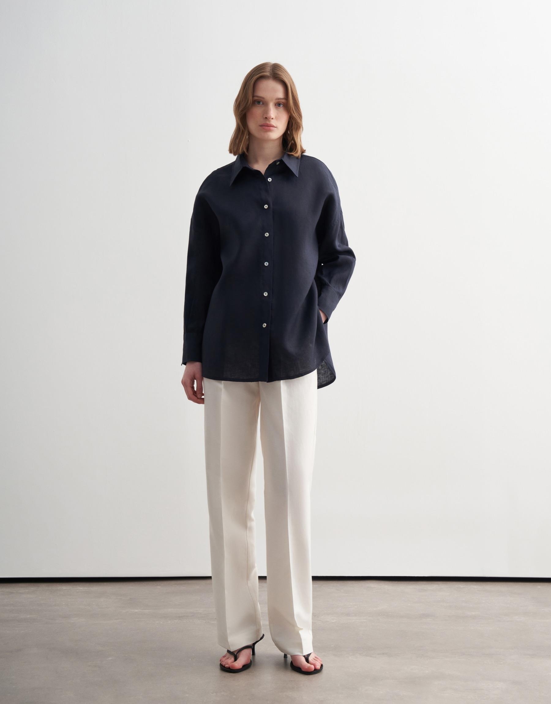 Bayan Lacivert %100 Keten Gömlek | KK Design