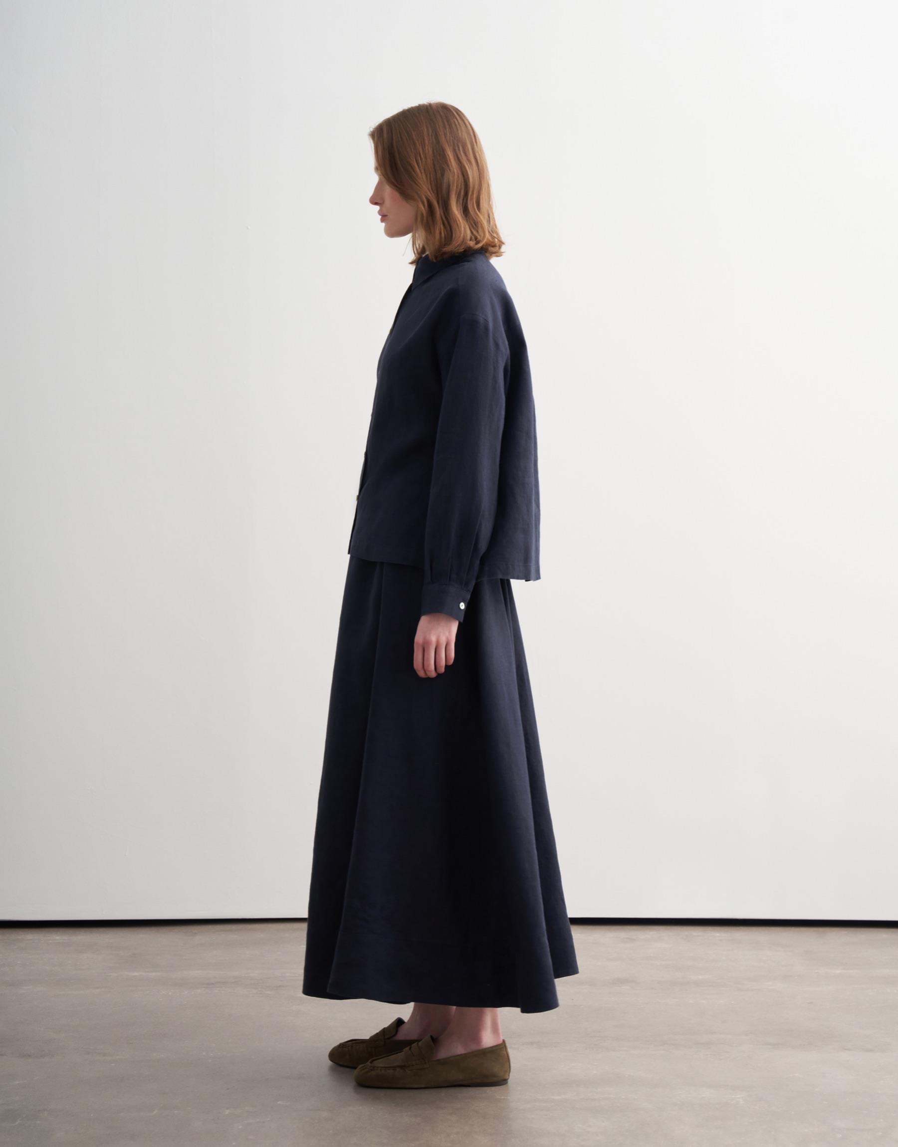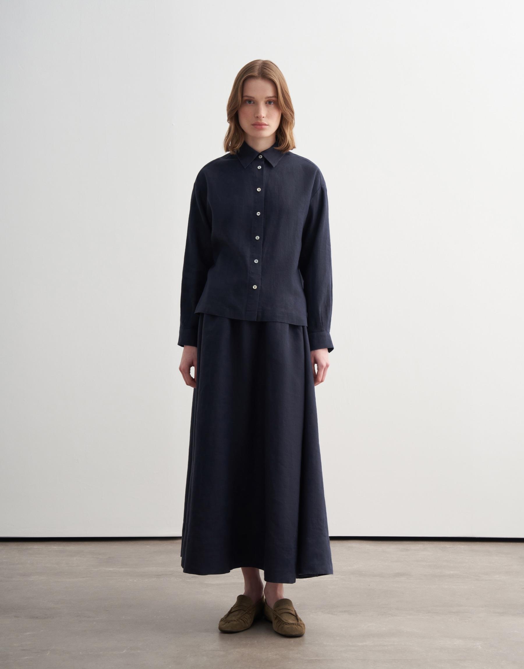 Bayan Lacivert %100 Keten Kısa Gömlek | KK Design