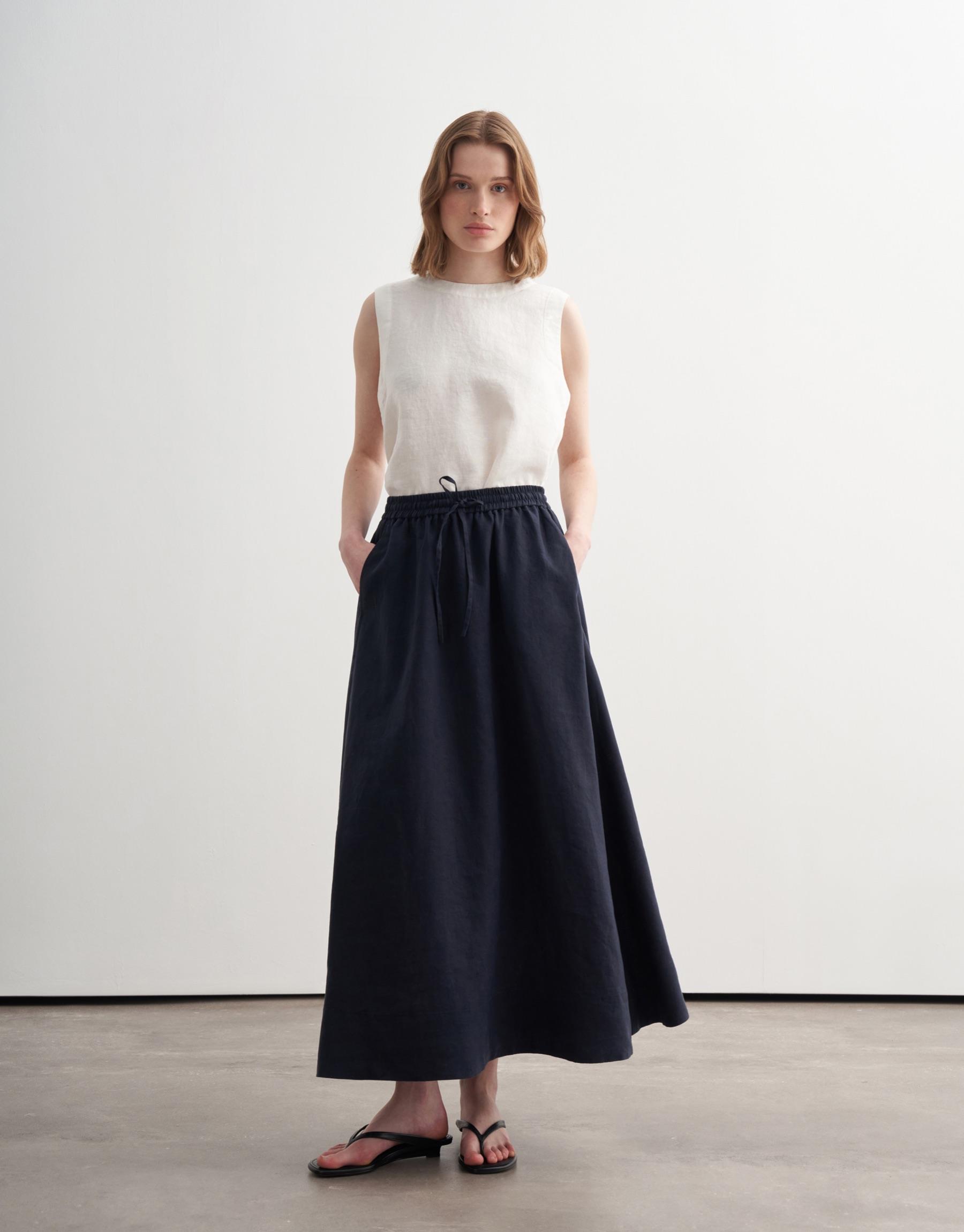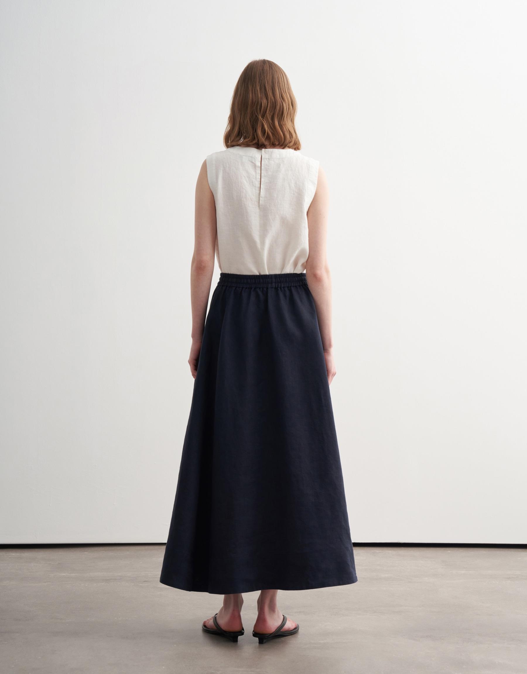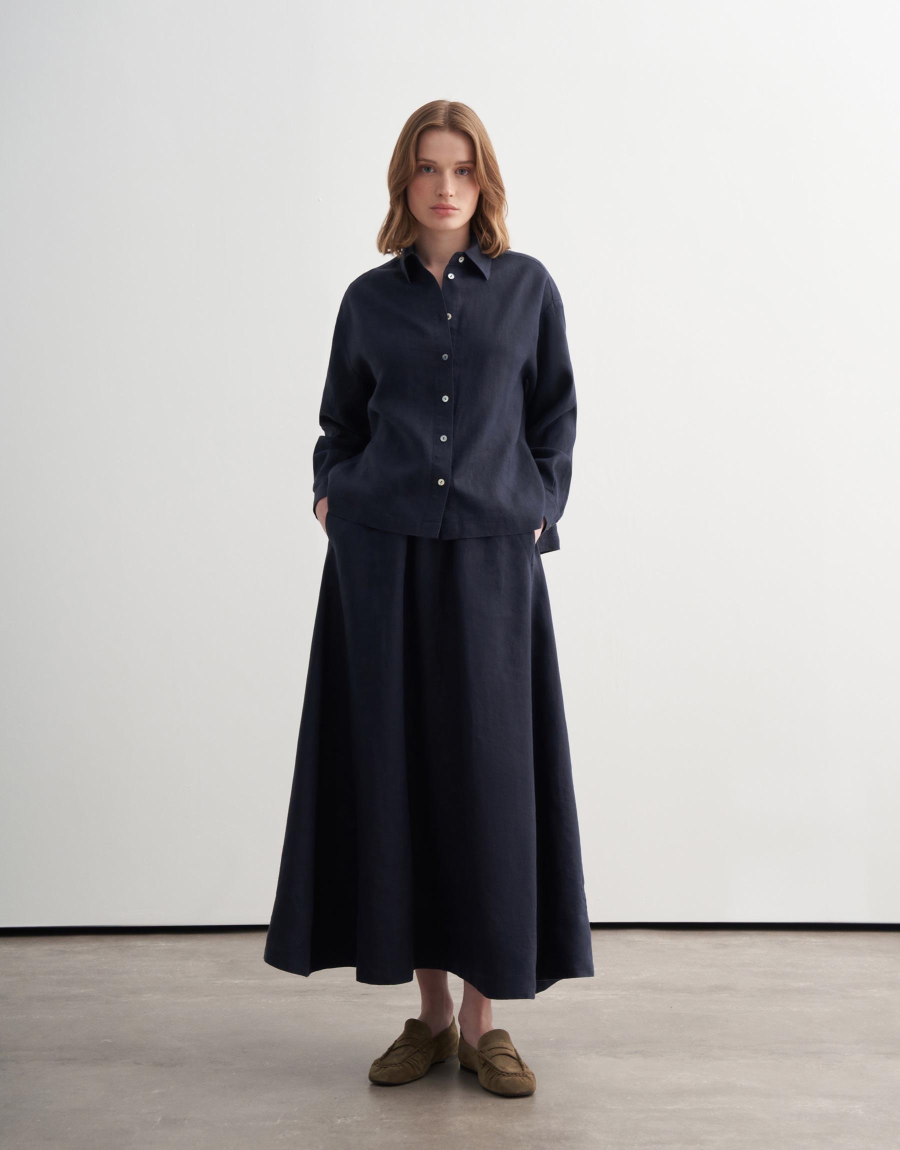 Bayan Lacivert %100 Keten Pervaz Detaylı Etek | KK Design