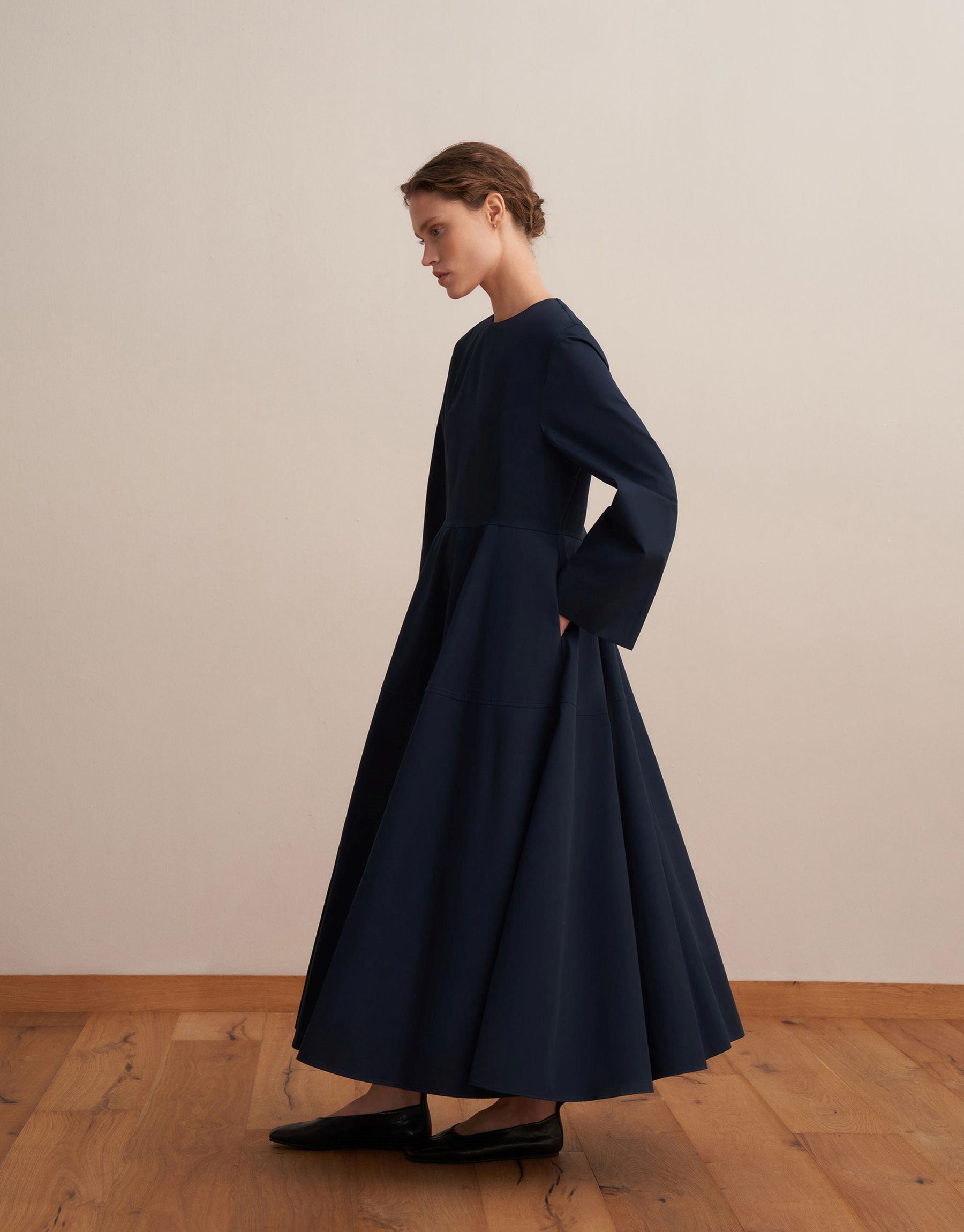 %100 Koton Kesik Detaylı Elbise Lacivert