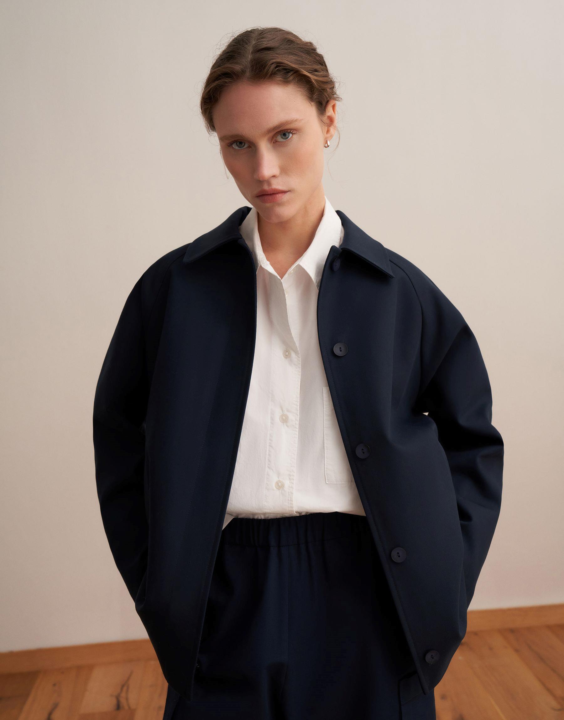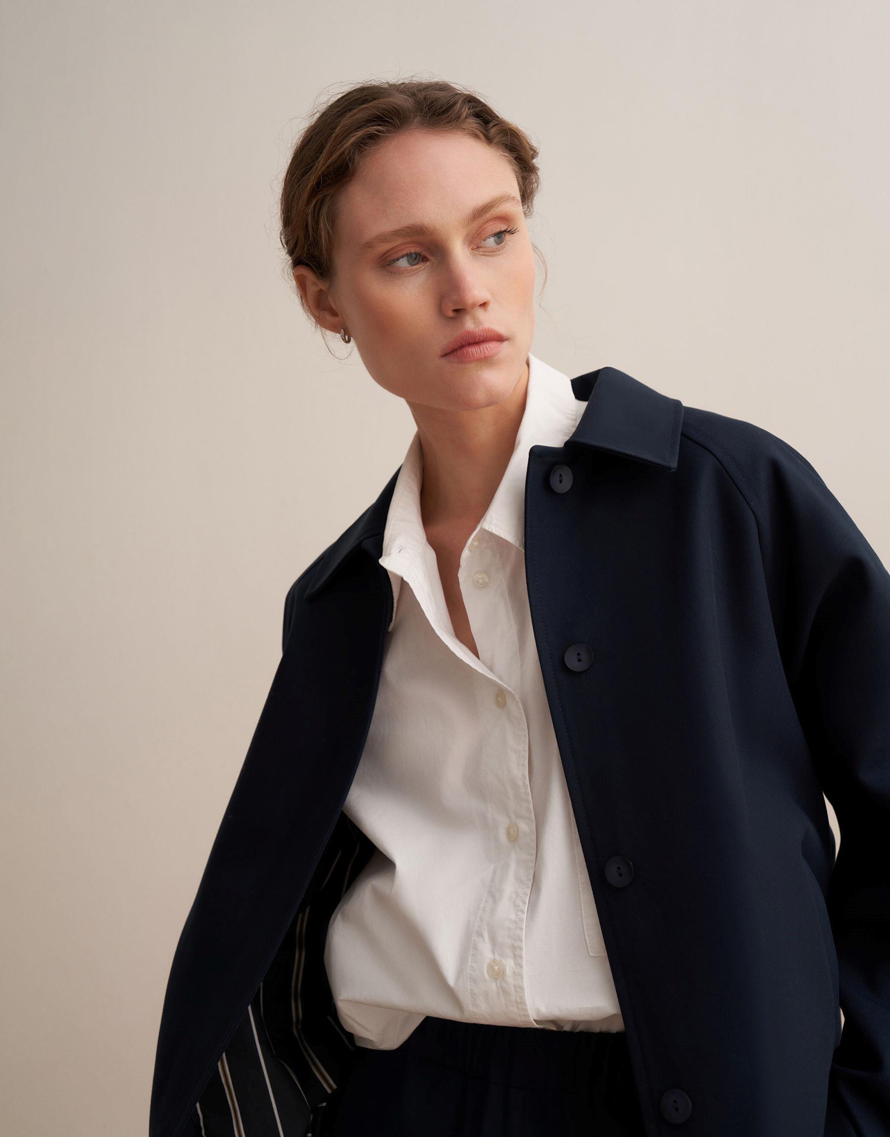 Organik Pamuk Kruvaze Trençkot Lacivert