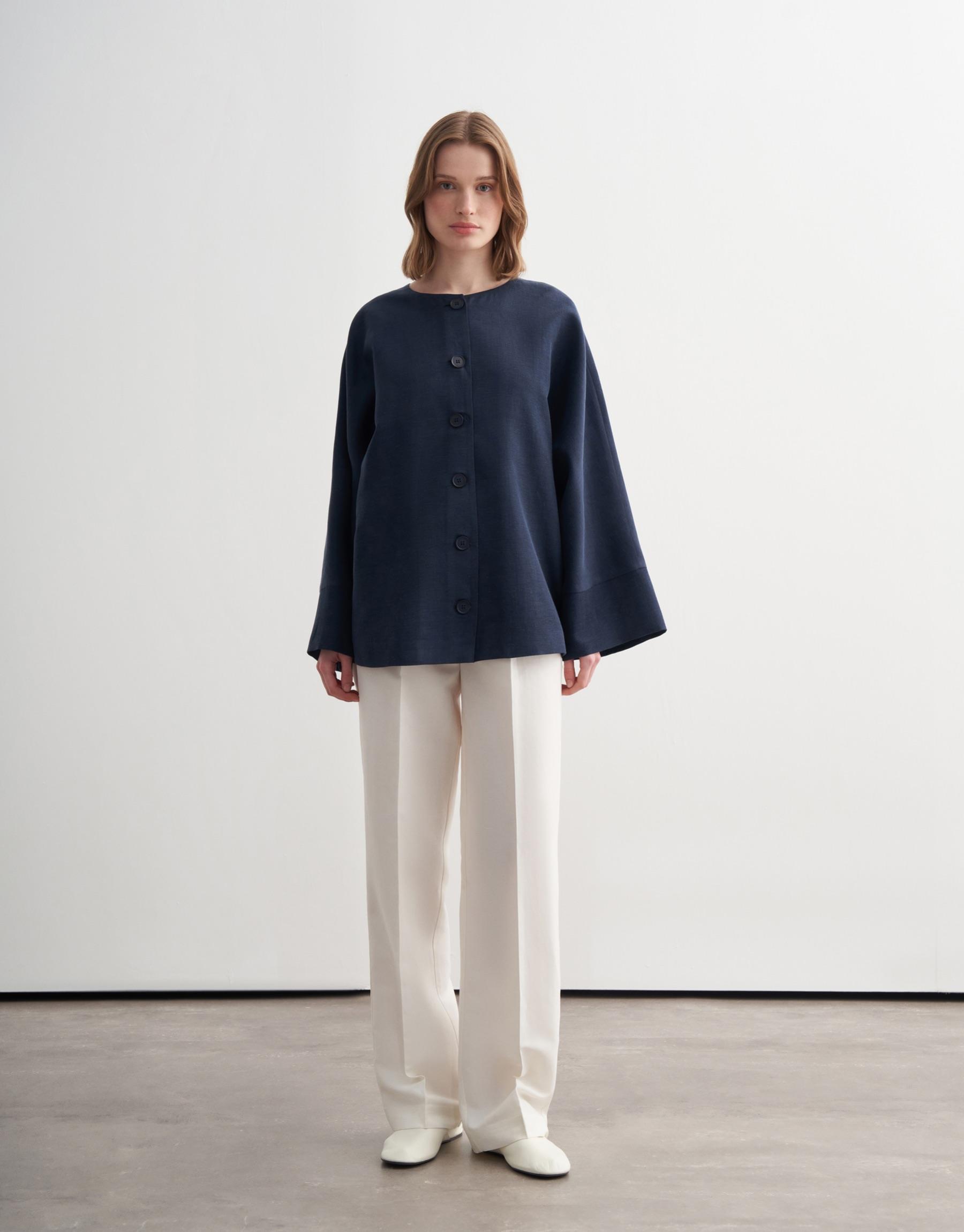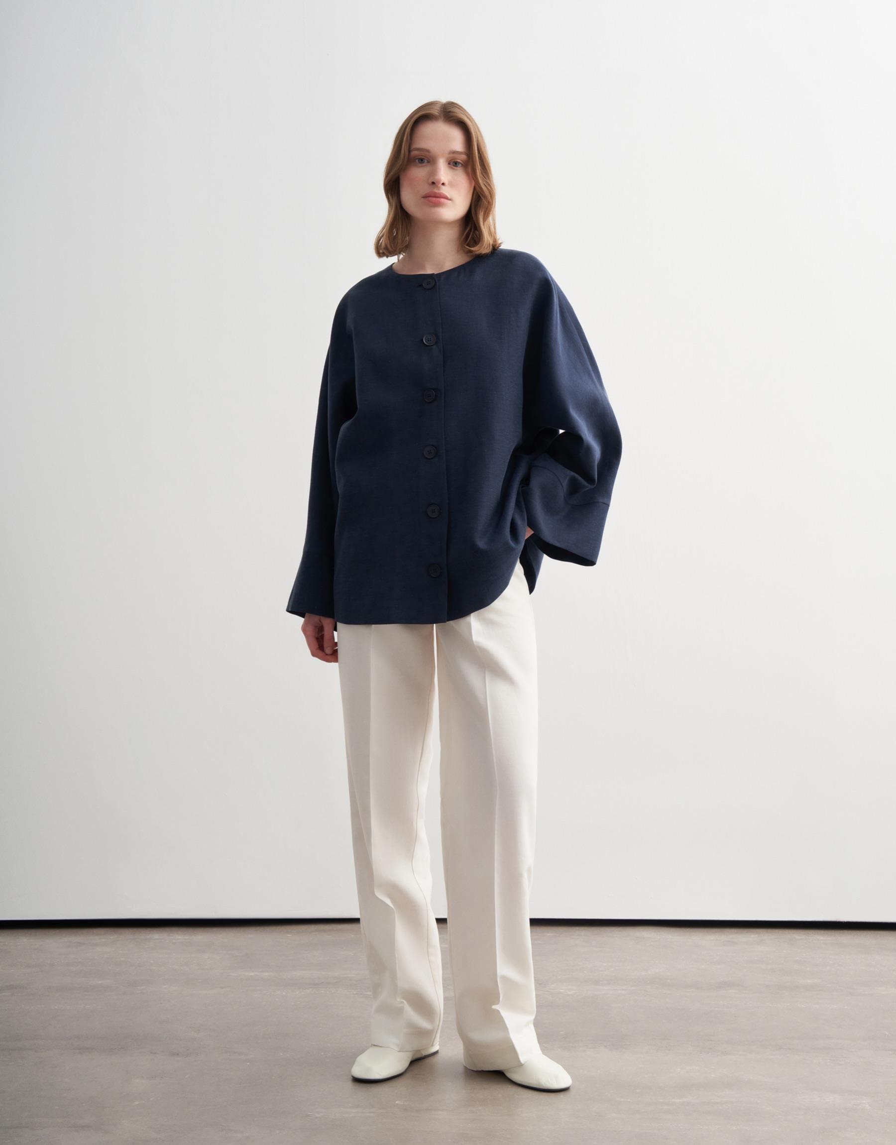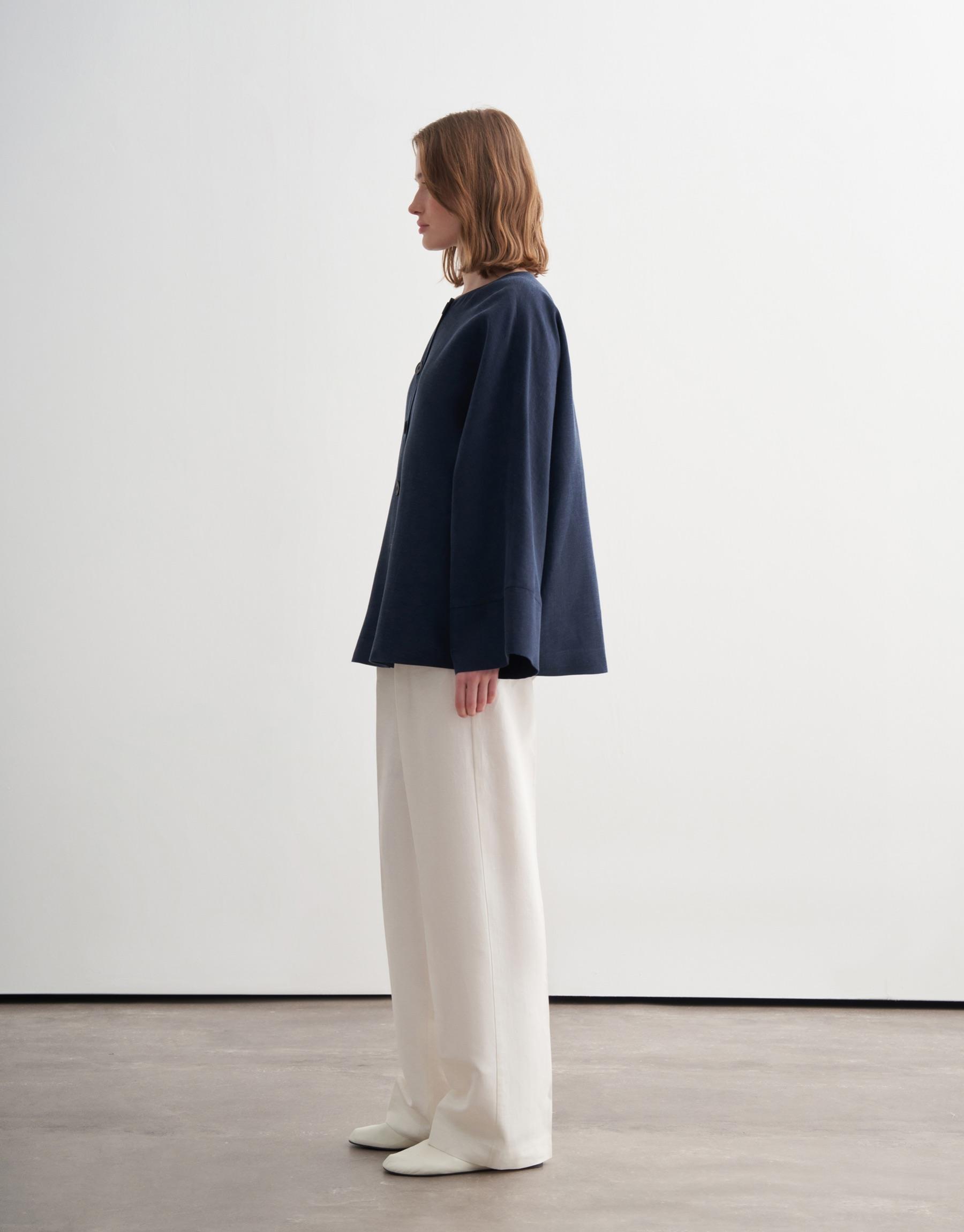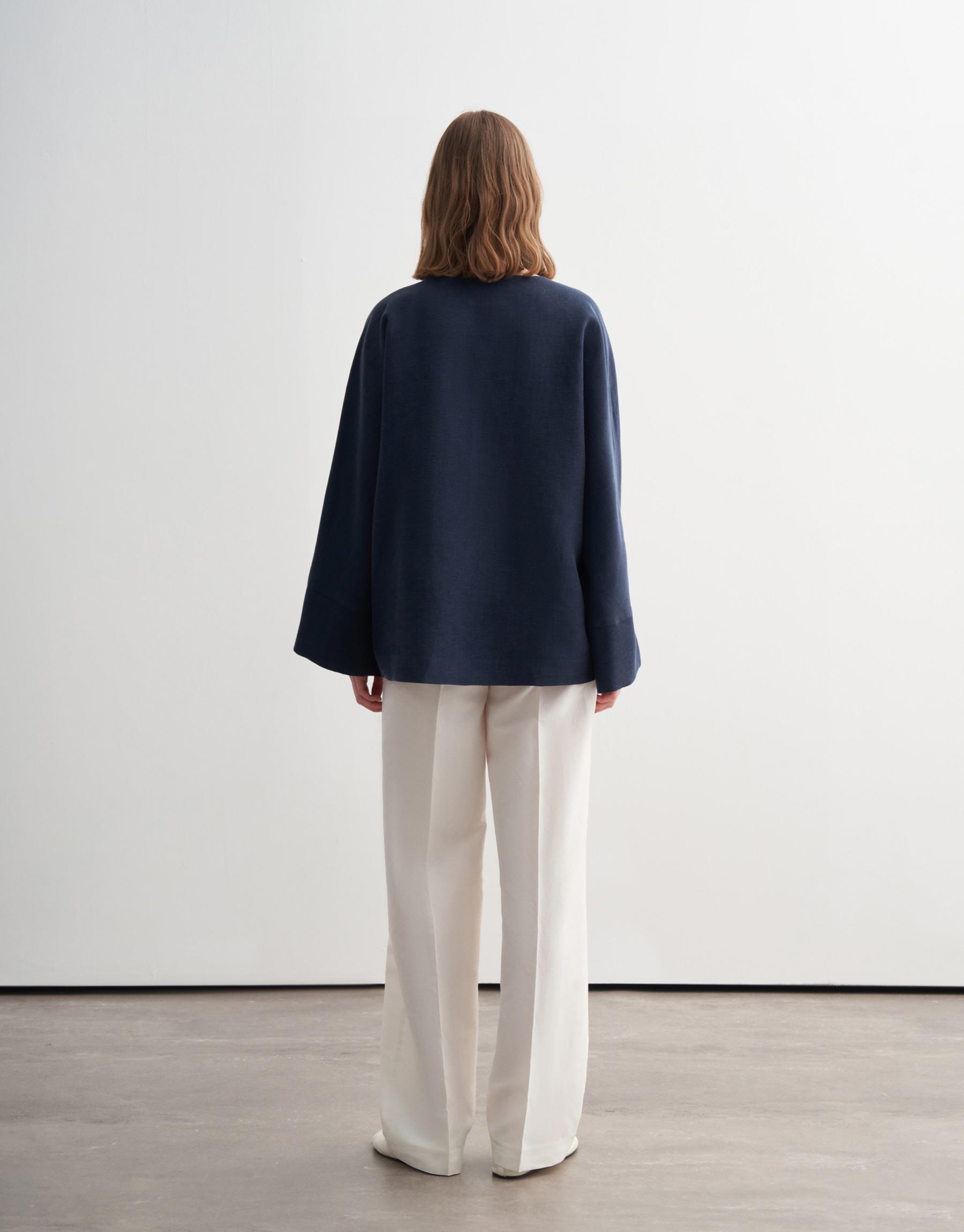Geniş Kollu Vegan Keten Ceket Lacivert