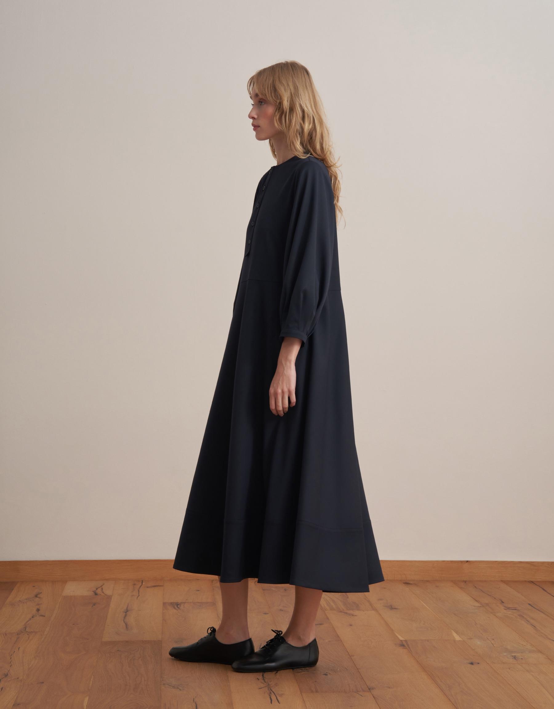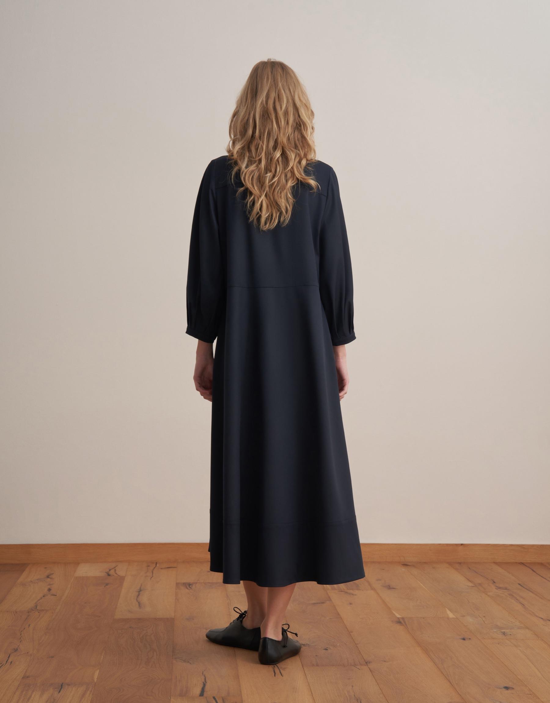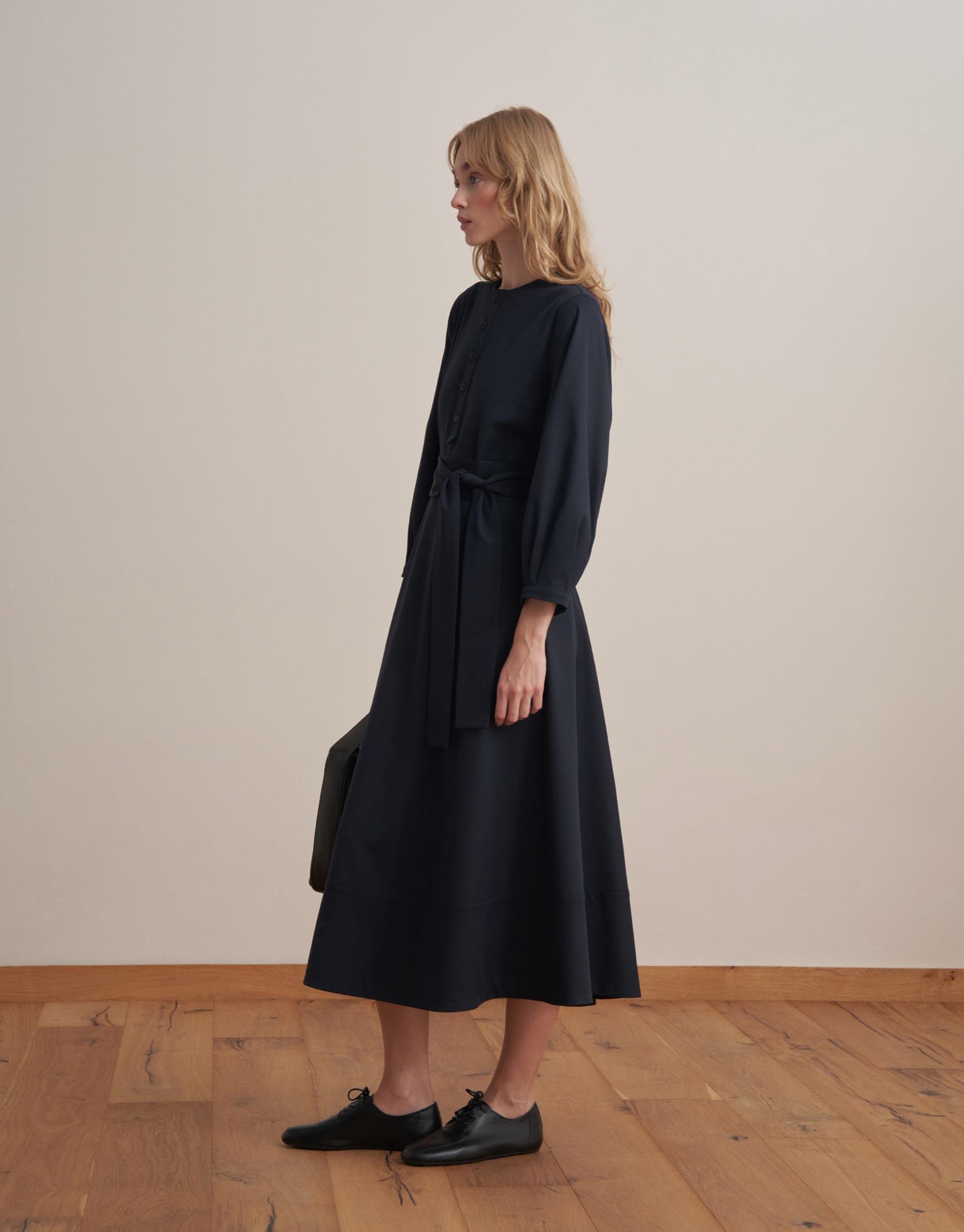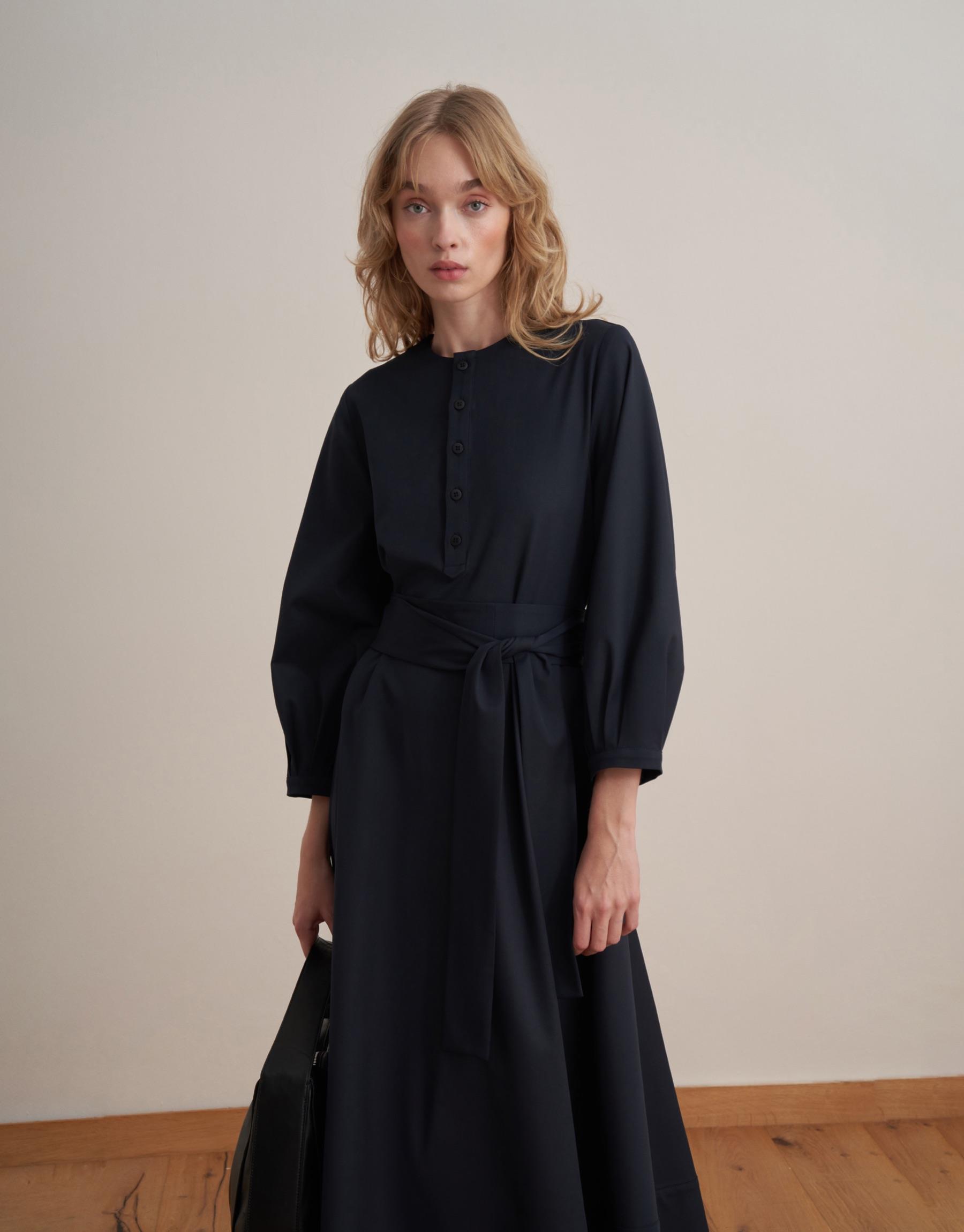 Bayan Lacivert Kemer Detaylı Elbise | KK Design