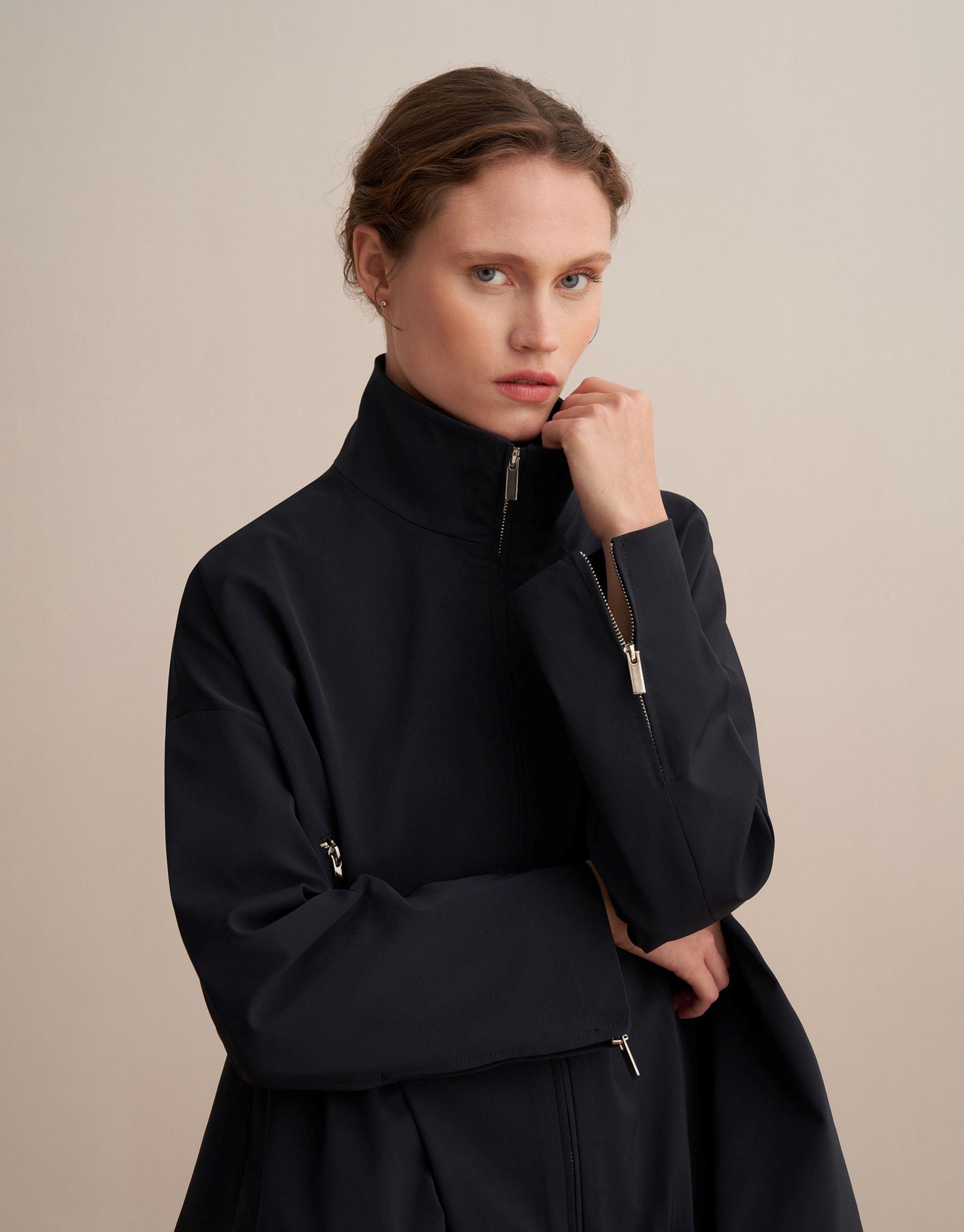 Bayan Lacivert Kemer Detaylı Teknik Ceket | KK Design