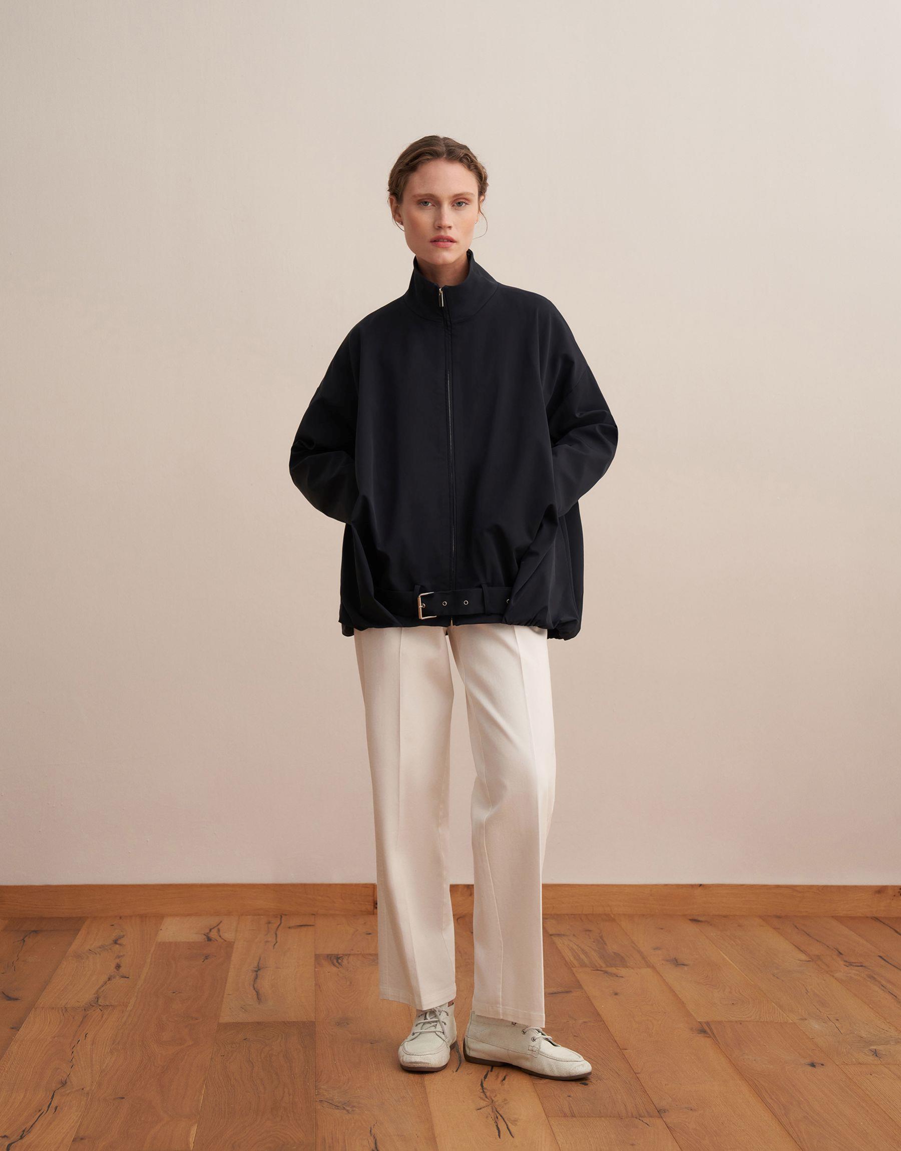 Ürün Detayları : Önden metal fermuar kapamalı. Düşük omuz. Yüksek yaka. Kol açılabilir metal fermuar detaylı. Bel ayarlanabilir metal tokalı kemerli. Yanlardan fermuarlı cepli.