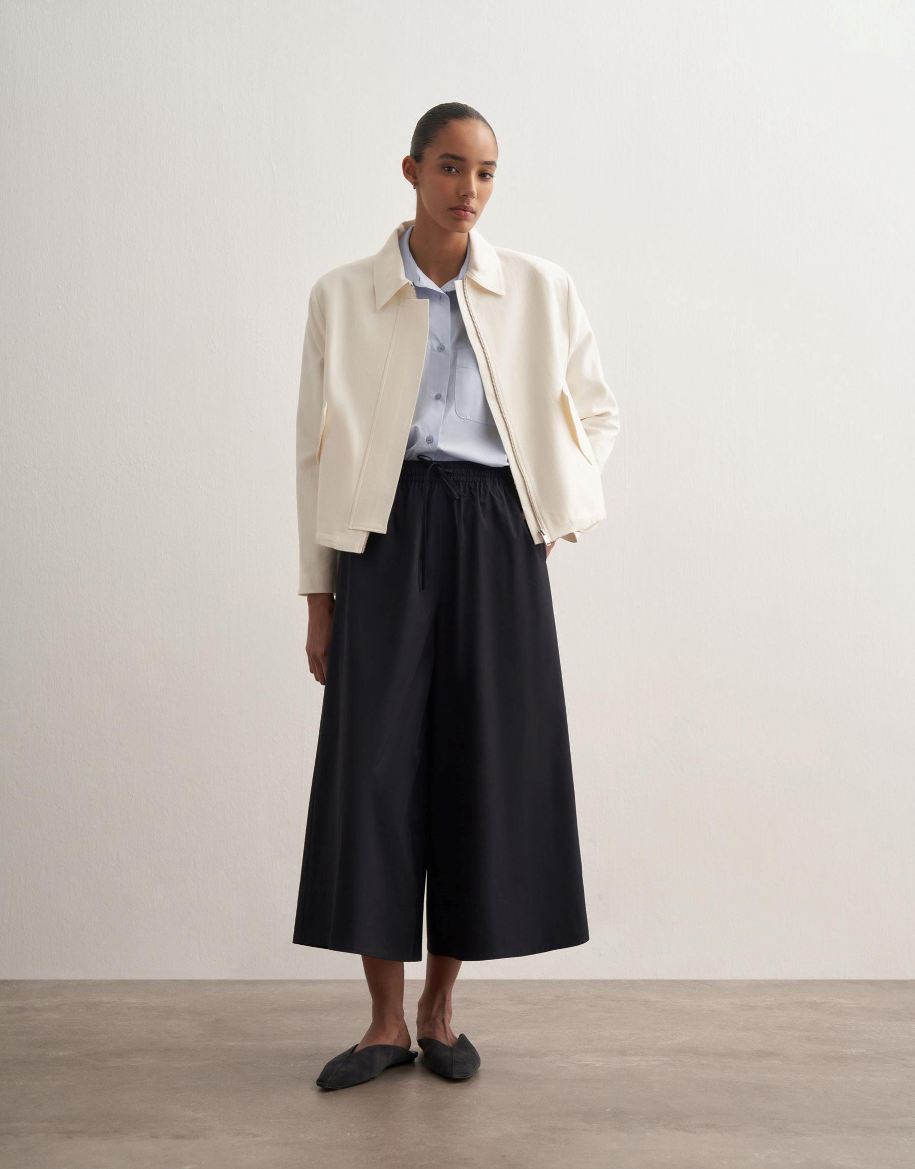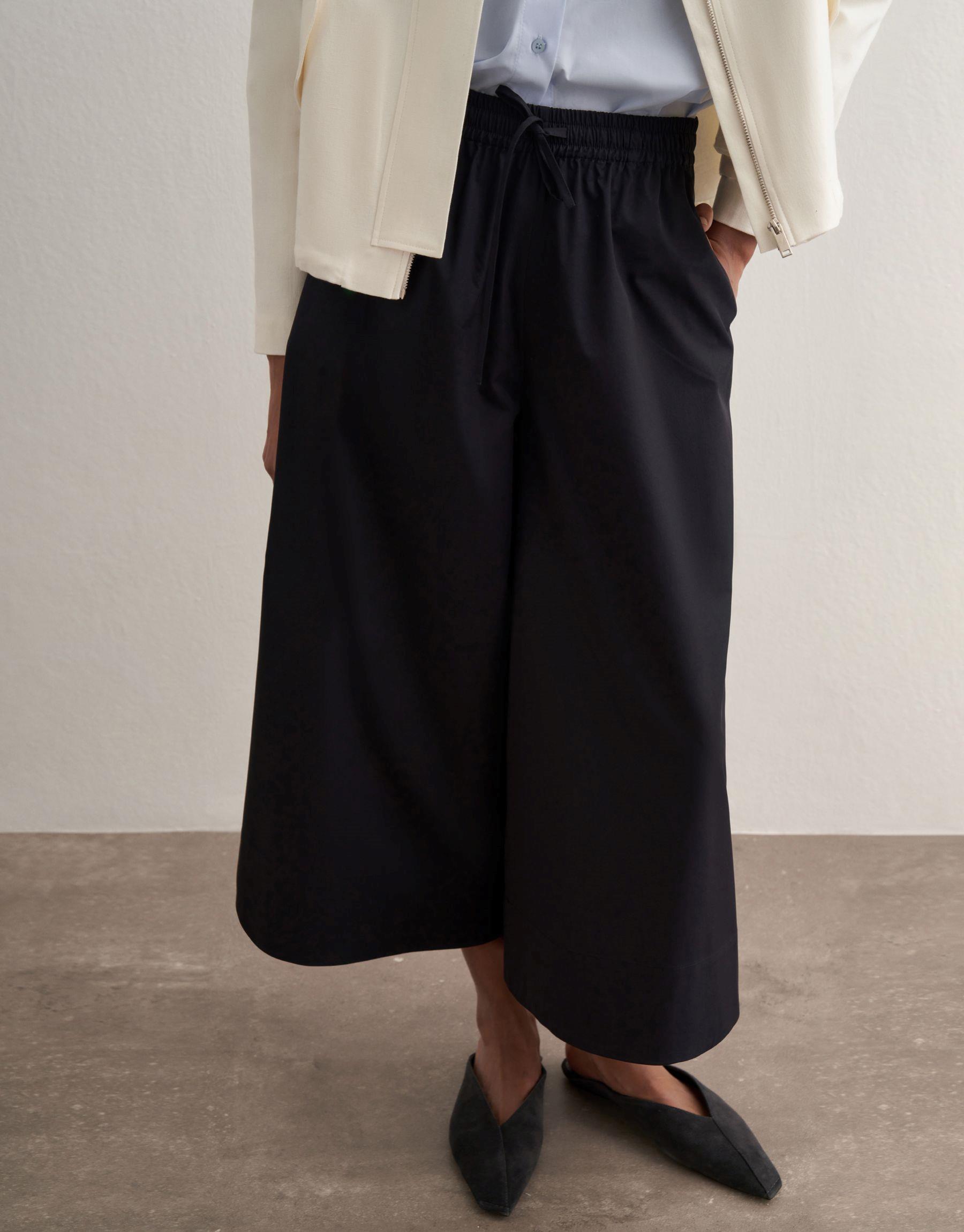 Bayan Lacivert Pervaz Detaylı Bol Pantolon | KK Design