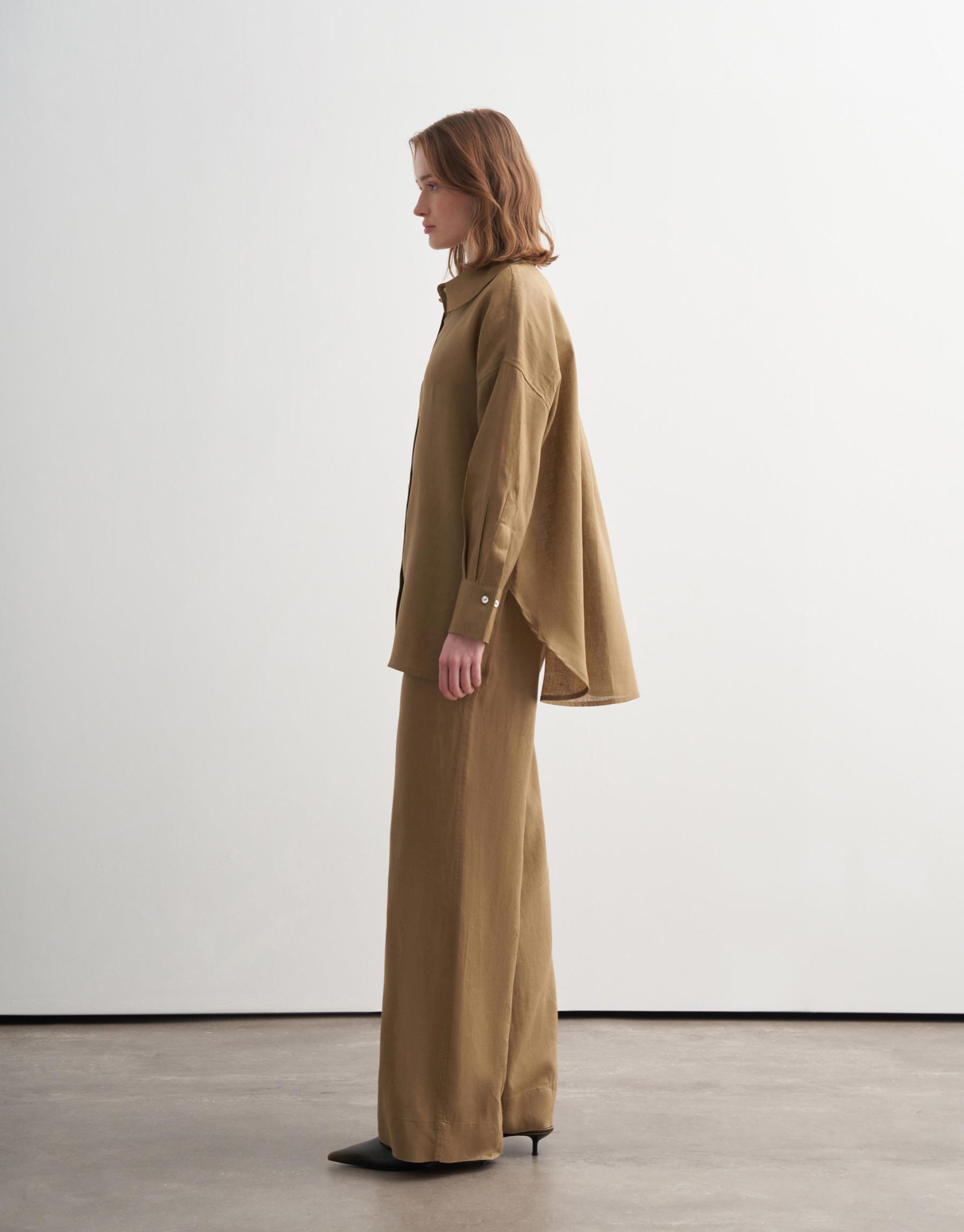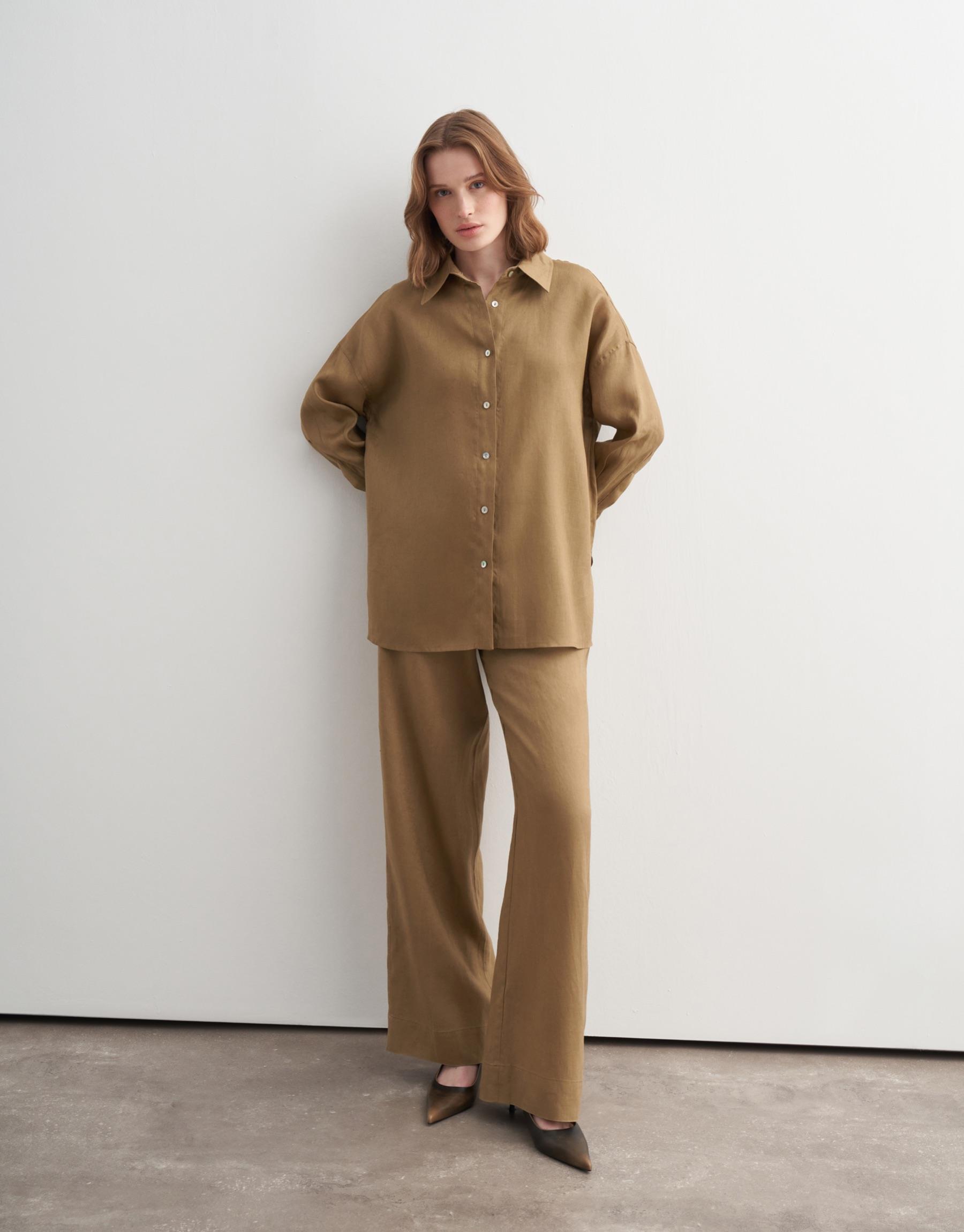 Bayan Açık Camel %100 Keten Gömlek | KK Design