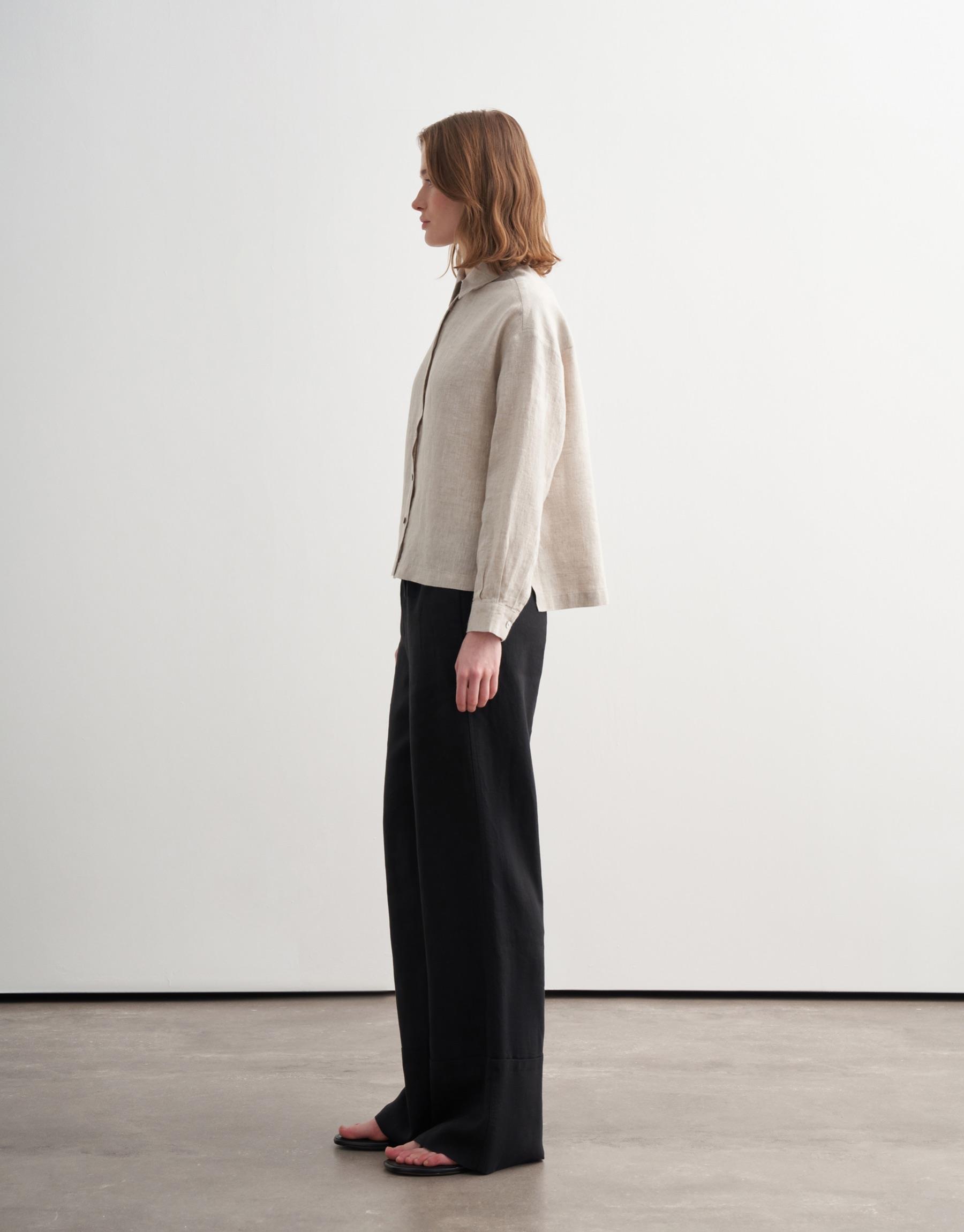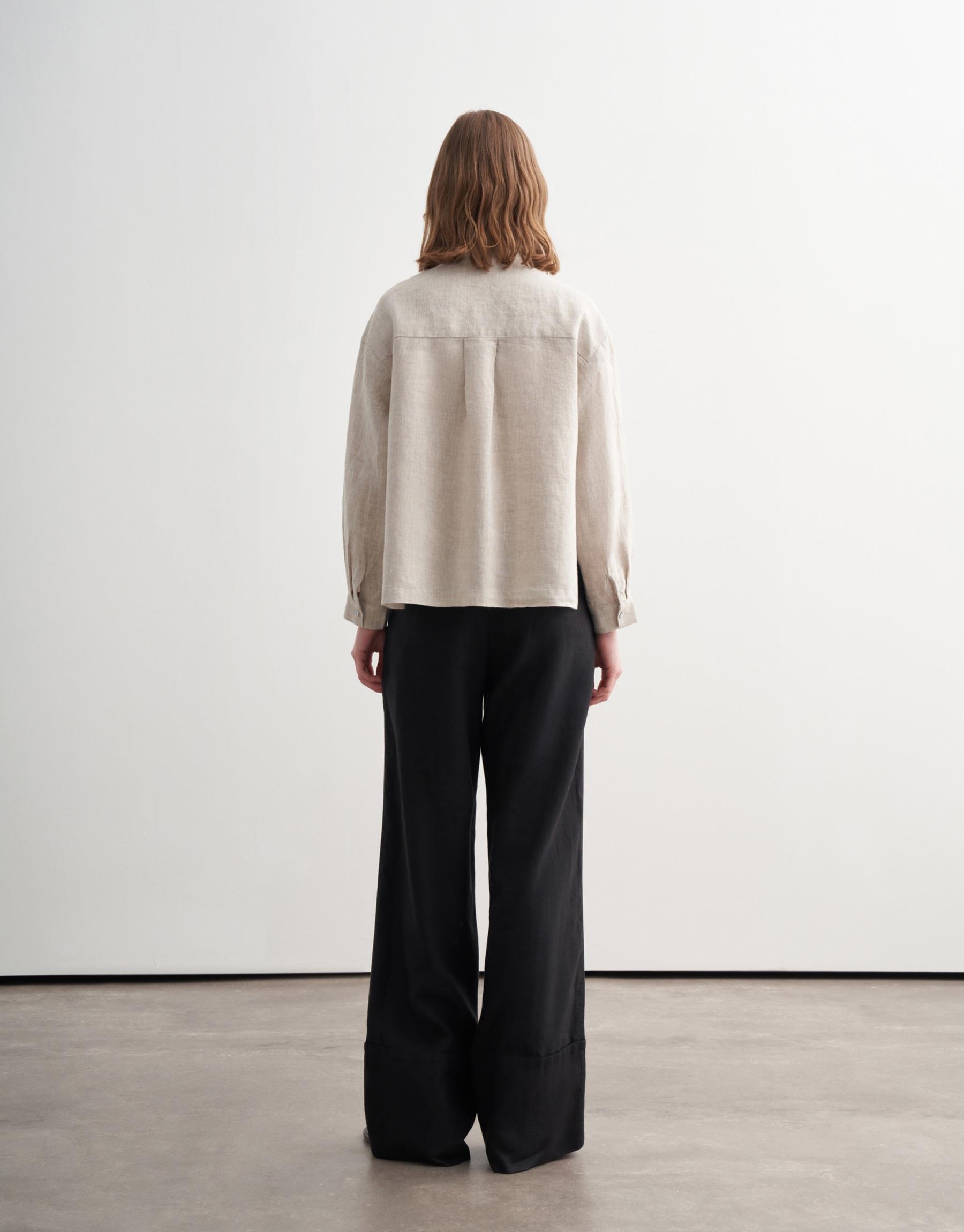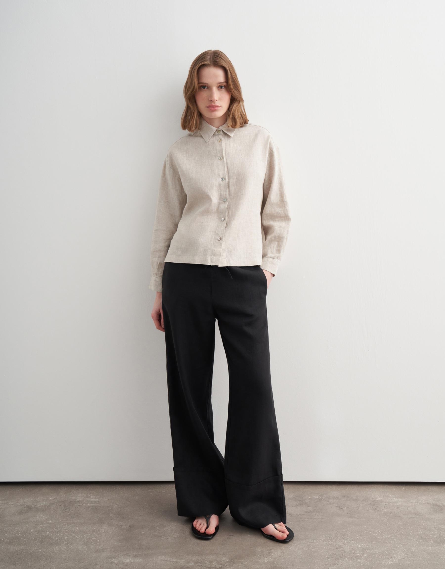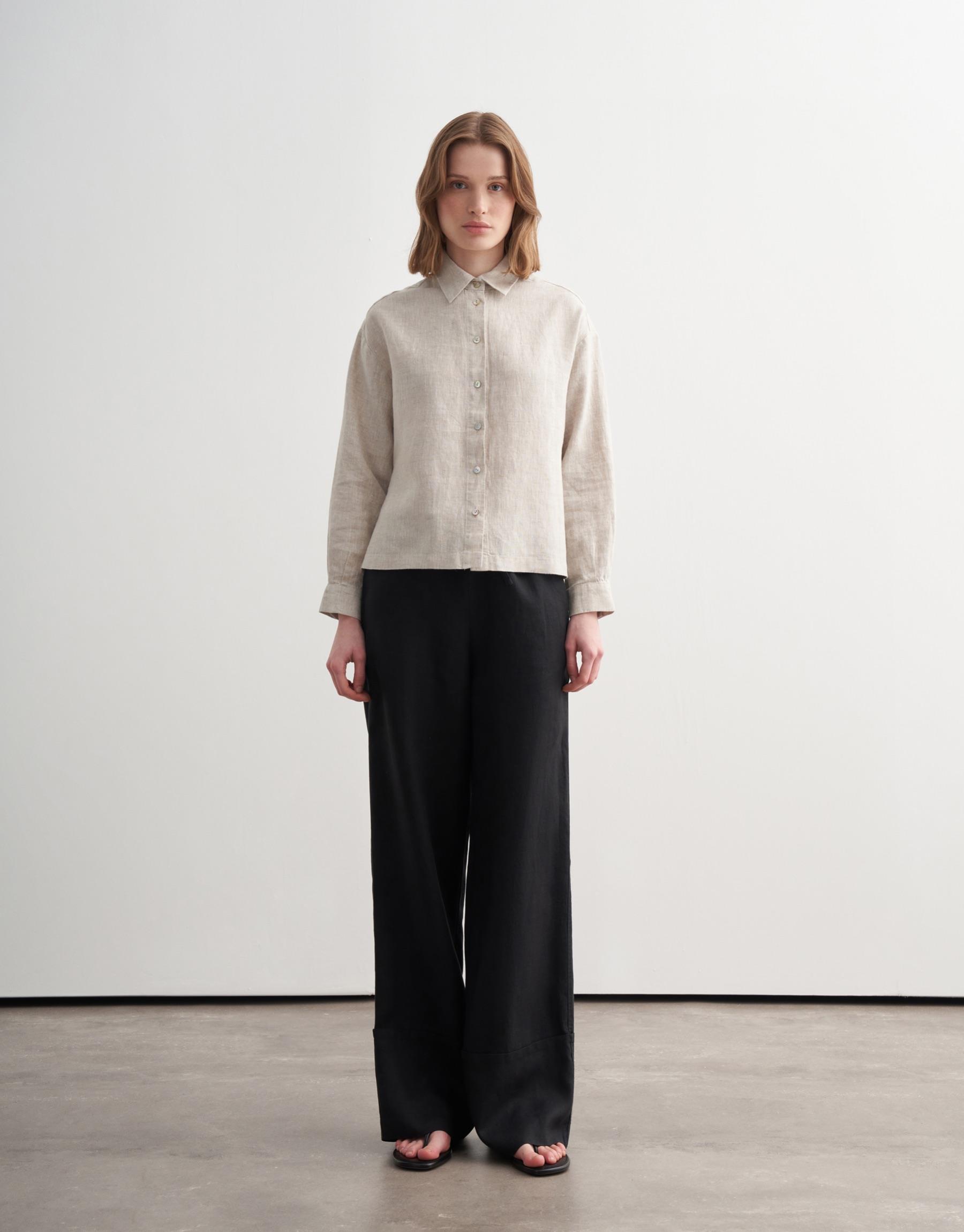 %100 Organik Koton Dokulu Gömlek Lacivert