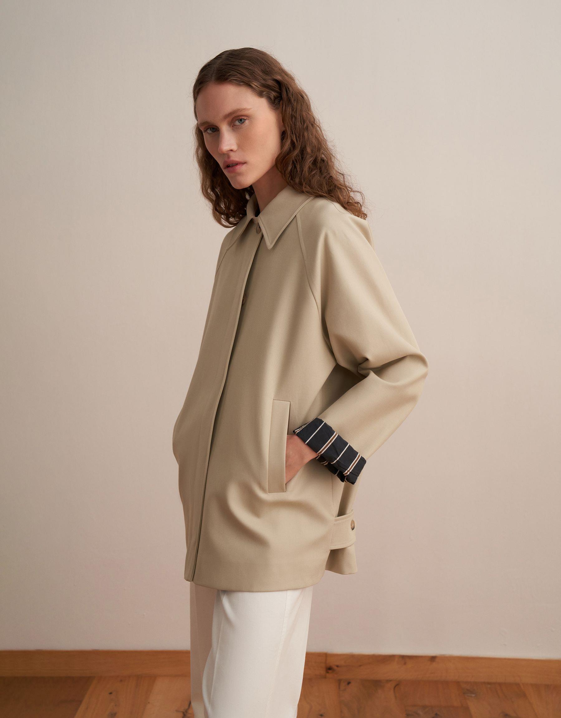Bayan Uçuk Yeşil %100 Koton Kontrast Detaylı Trençkot | KK Design