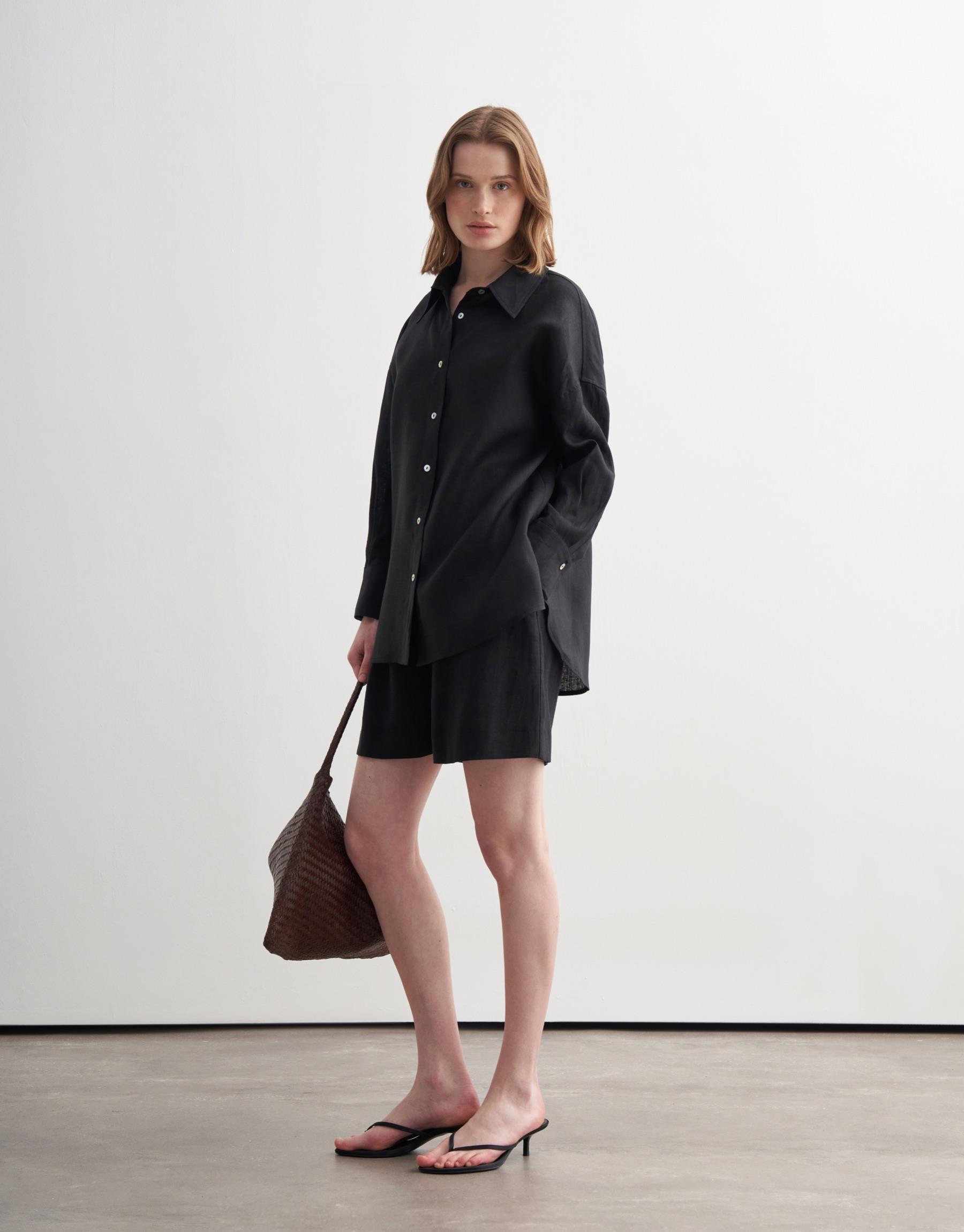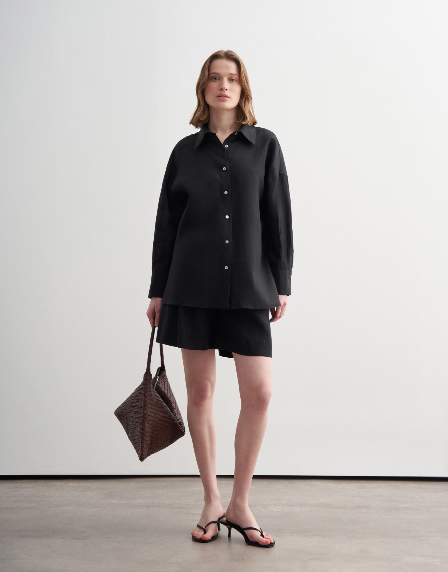 Bayan Siyah %100 Keten Gömlek | KK Design