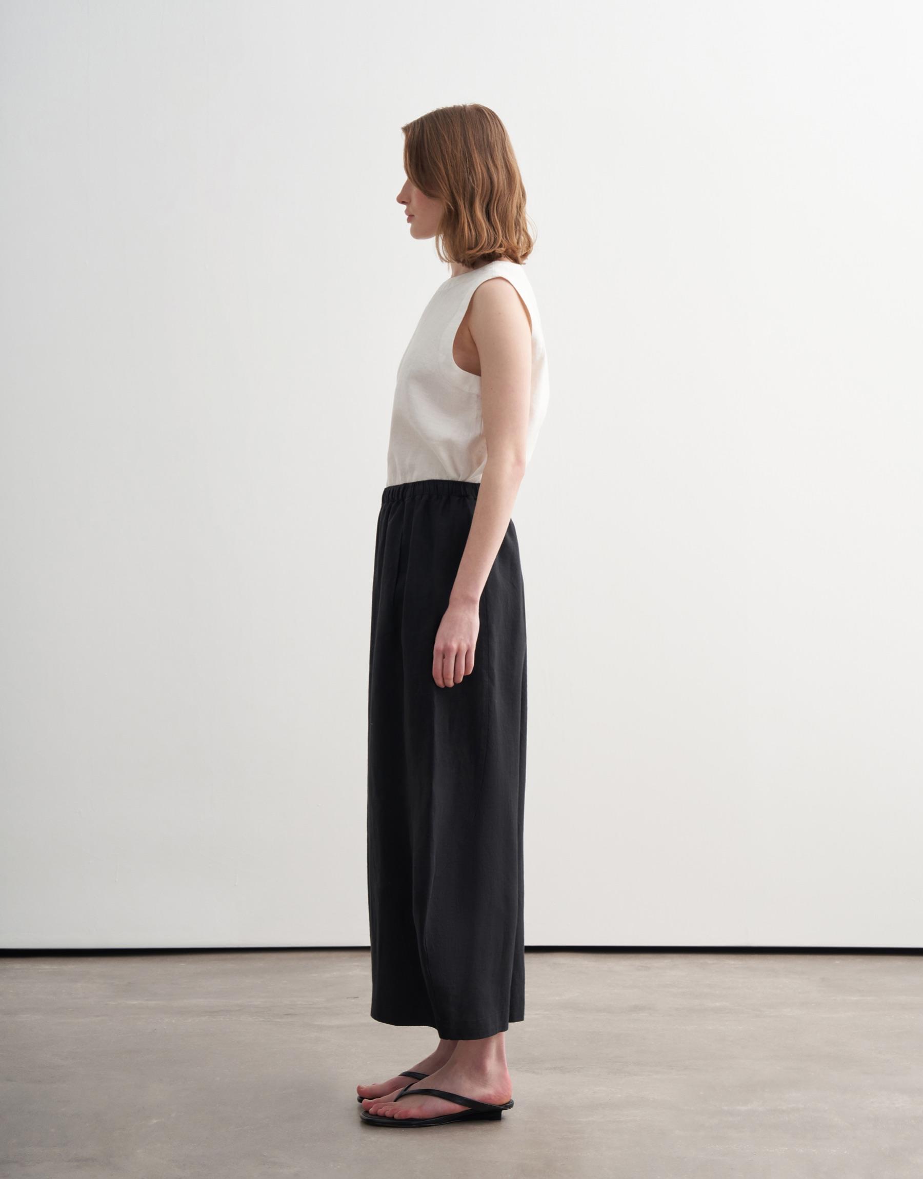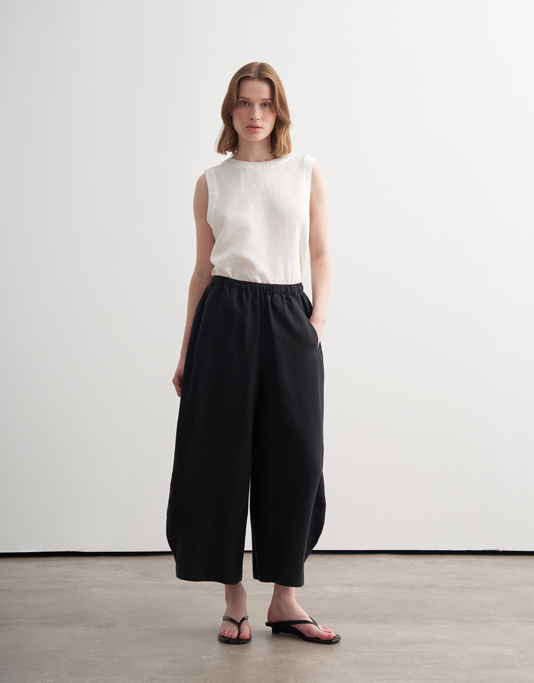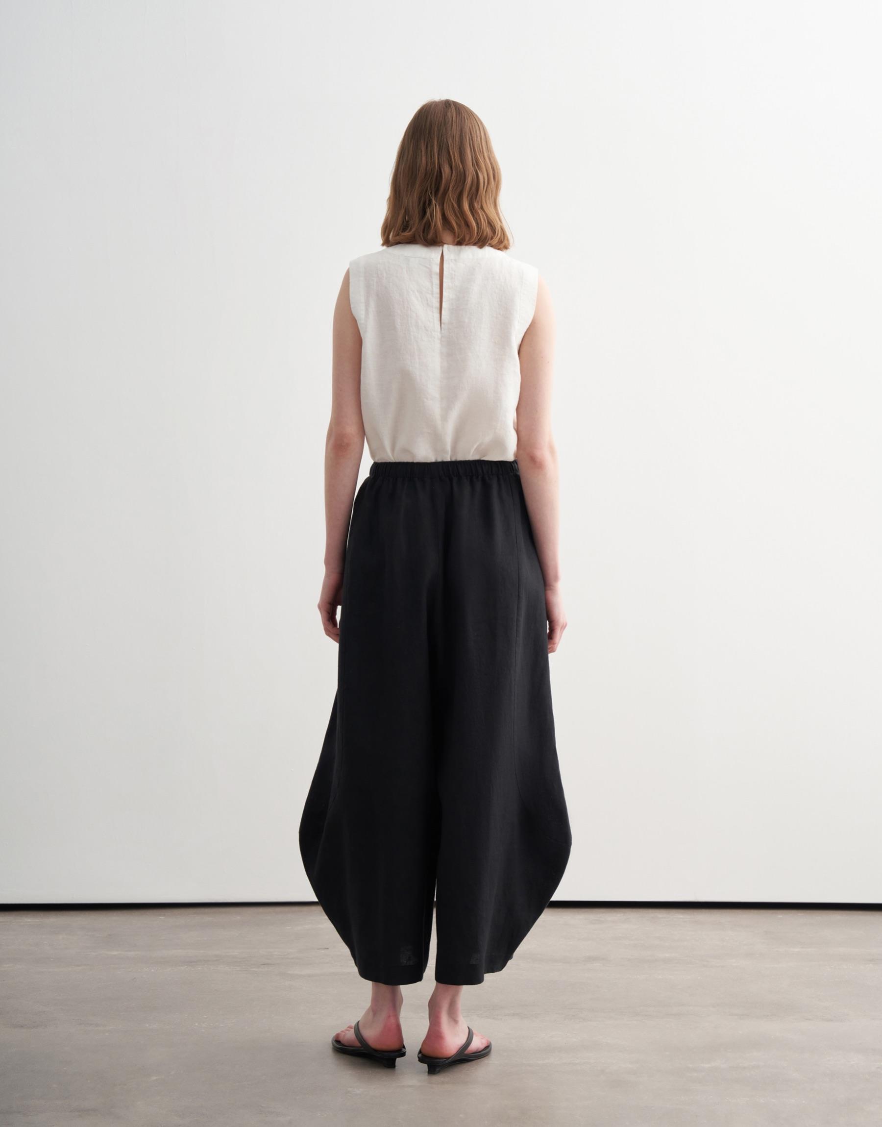 Bayan Siyah %100 Keten Şalvar Form Pantolon | KK Design