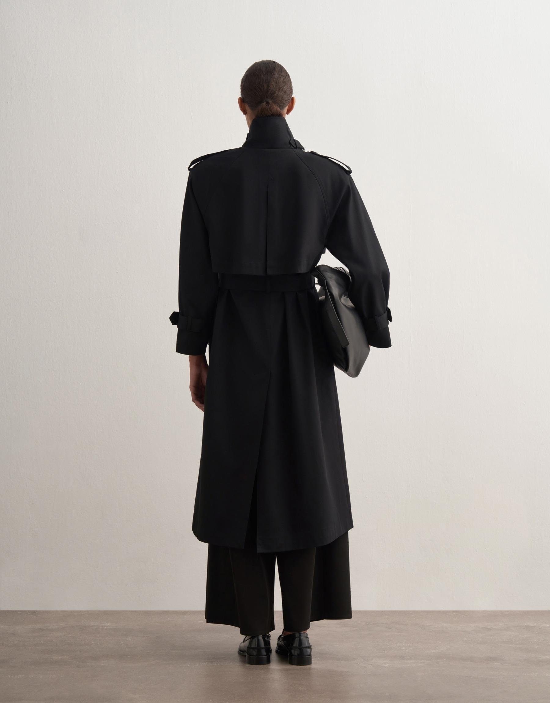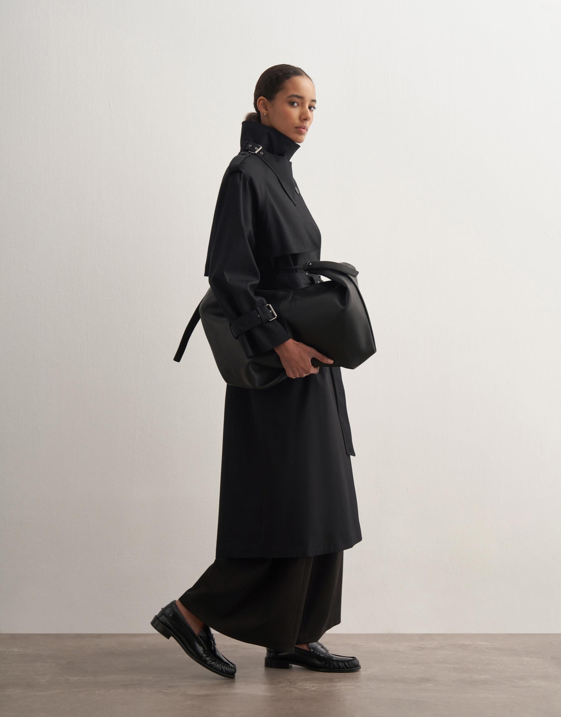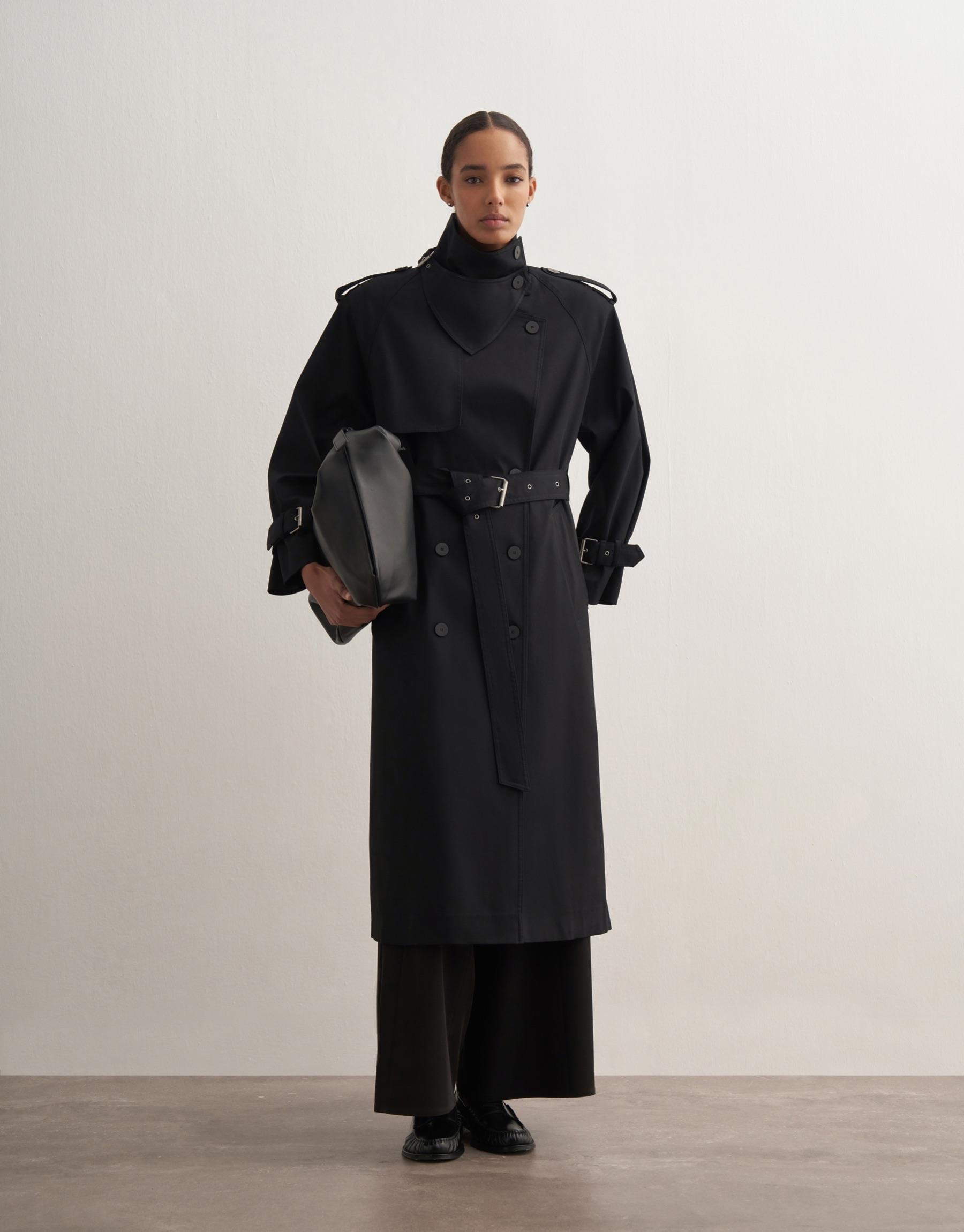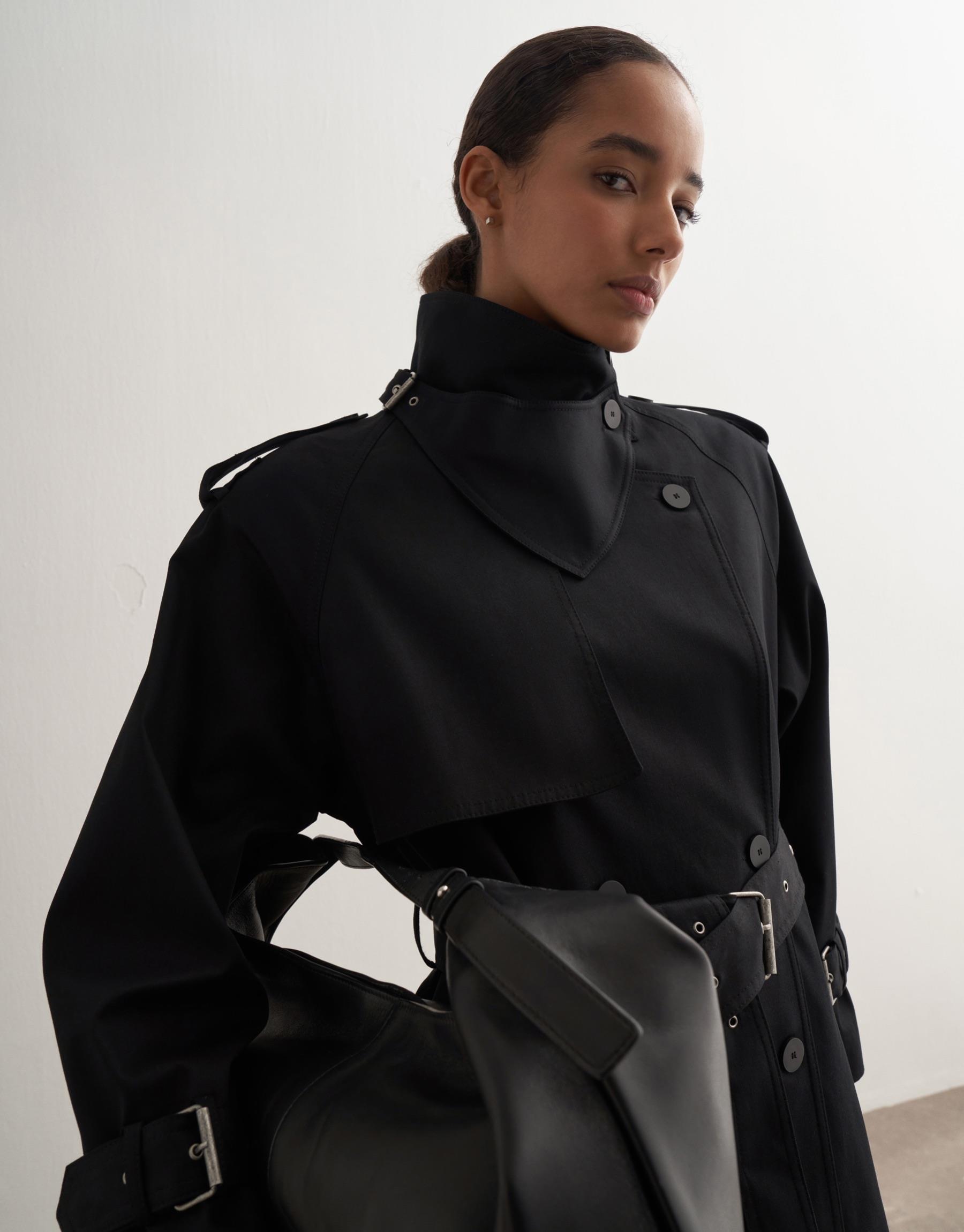 Bayan Siyah %100 Koton Maxi Trençkot | KK Design