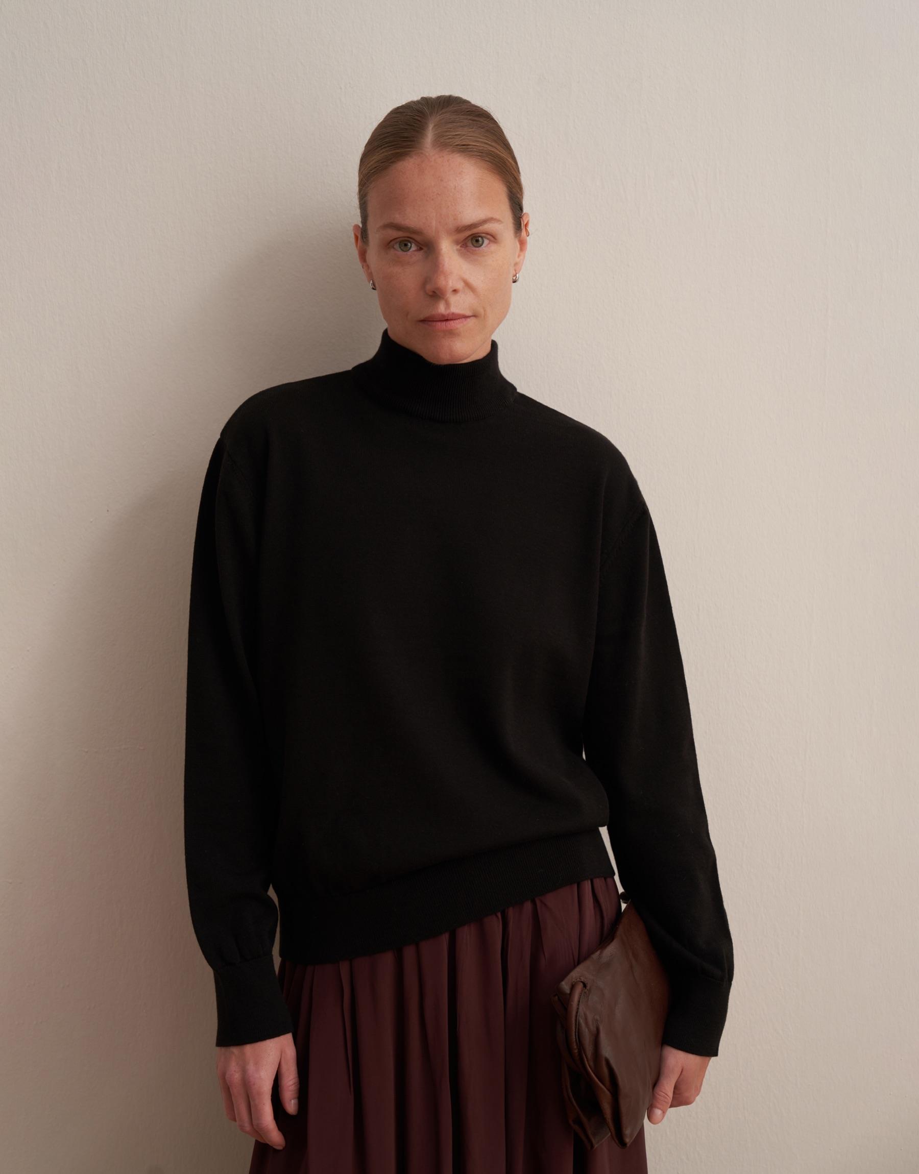 Bayan Siyah Balıkçı Yaka Triko Kazak | KK Design
