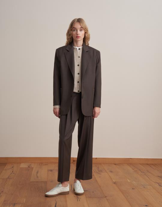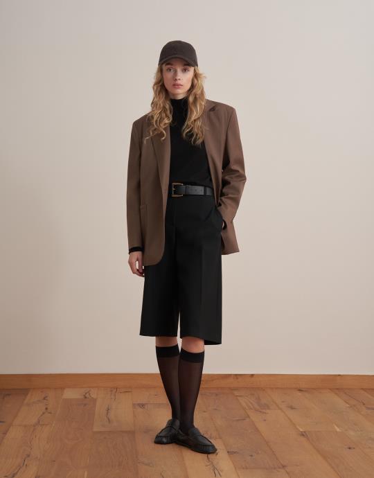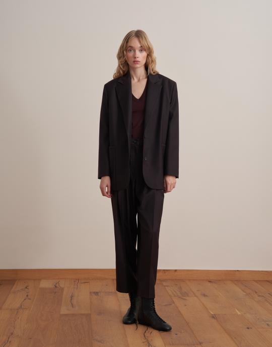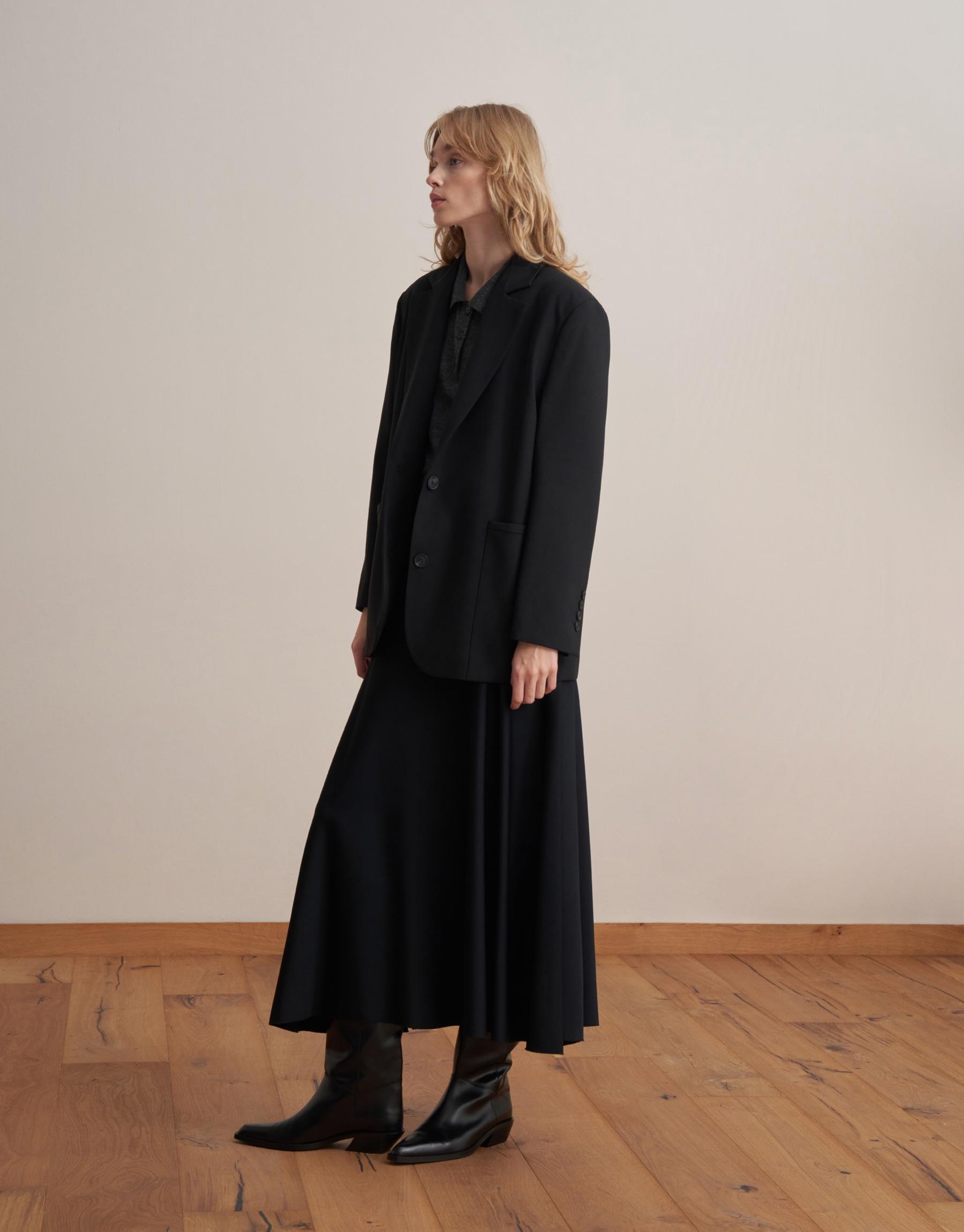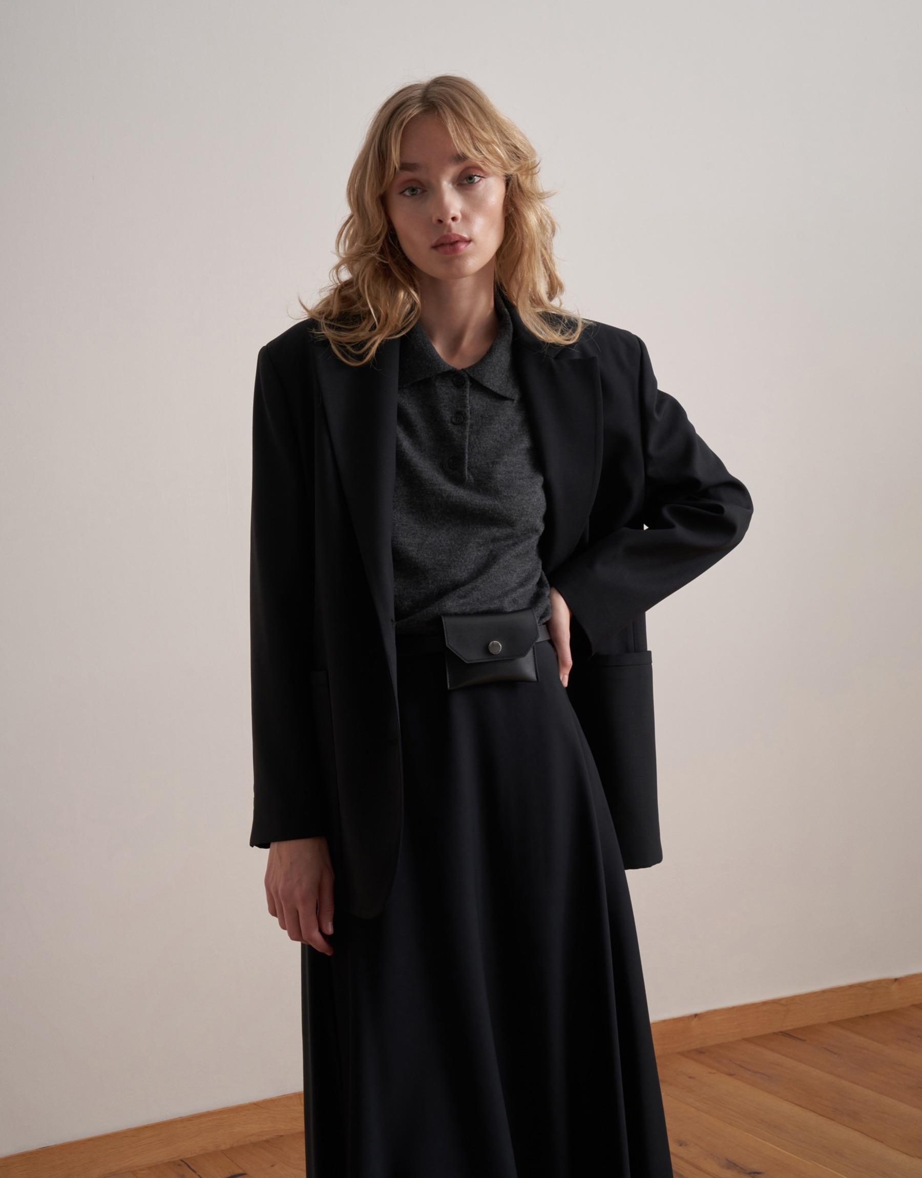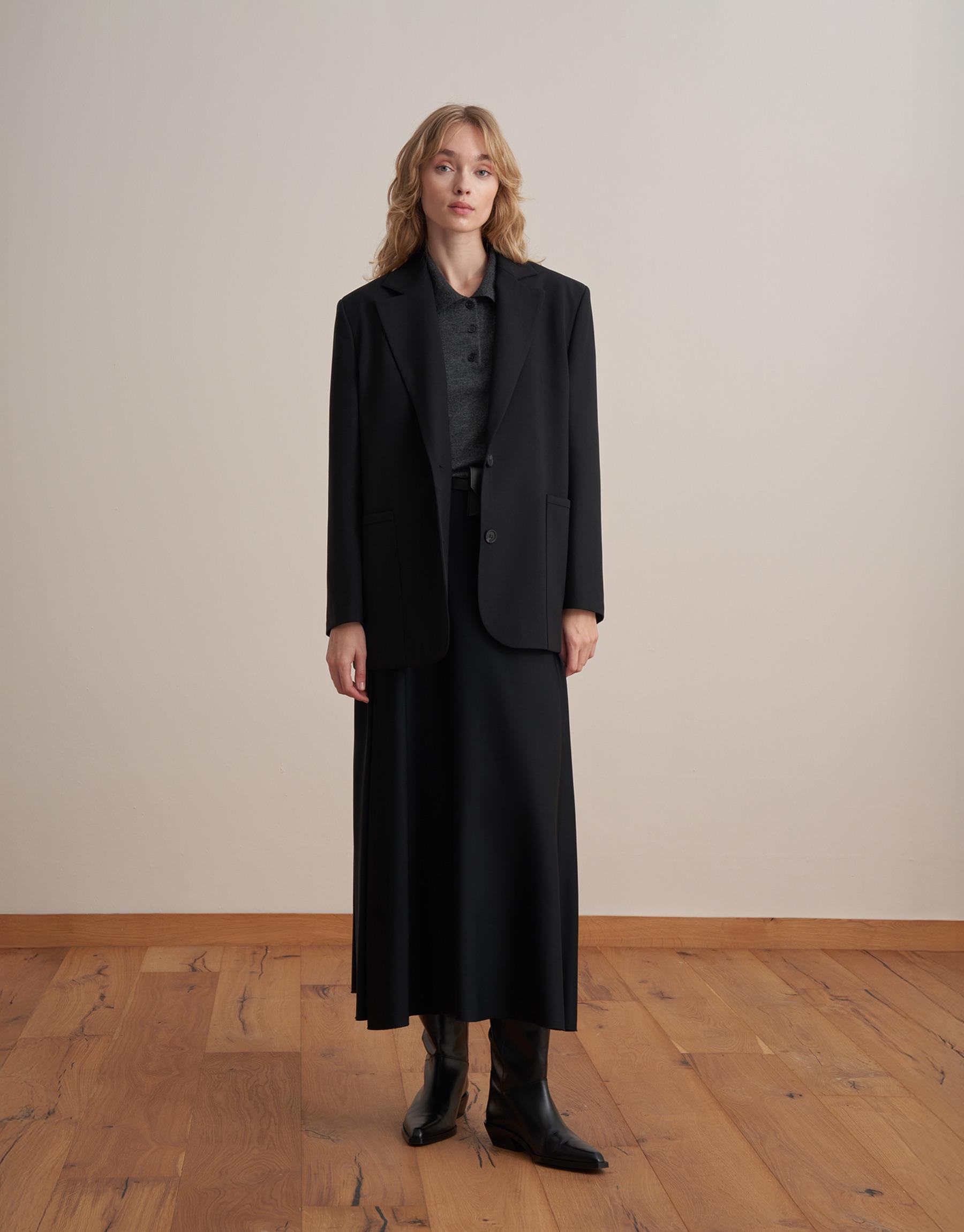 Bayan Siyah Çift Düğmeli Yün Blazer | KK Design