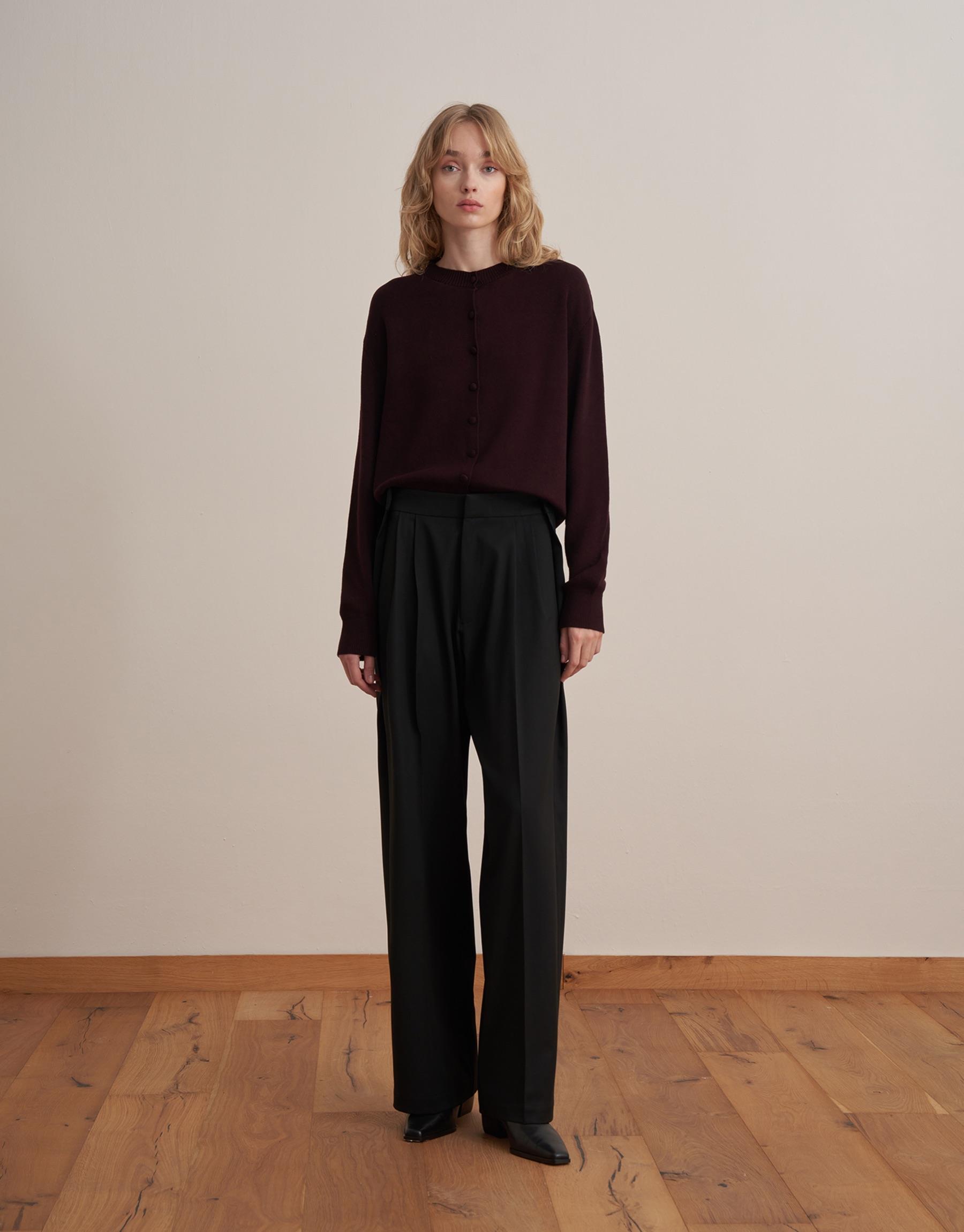 Bayan Siyah Düğme Detaylı Pileli Pantolon | KK Design