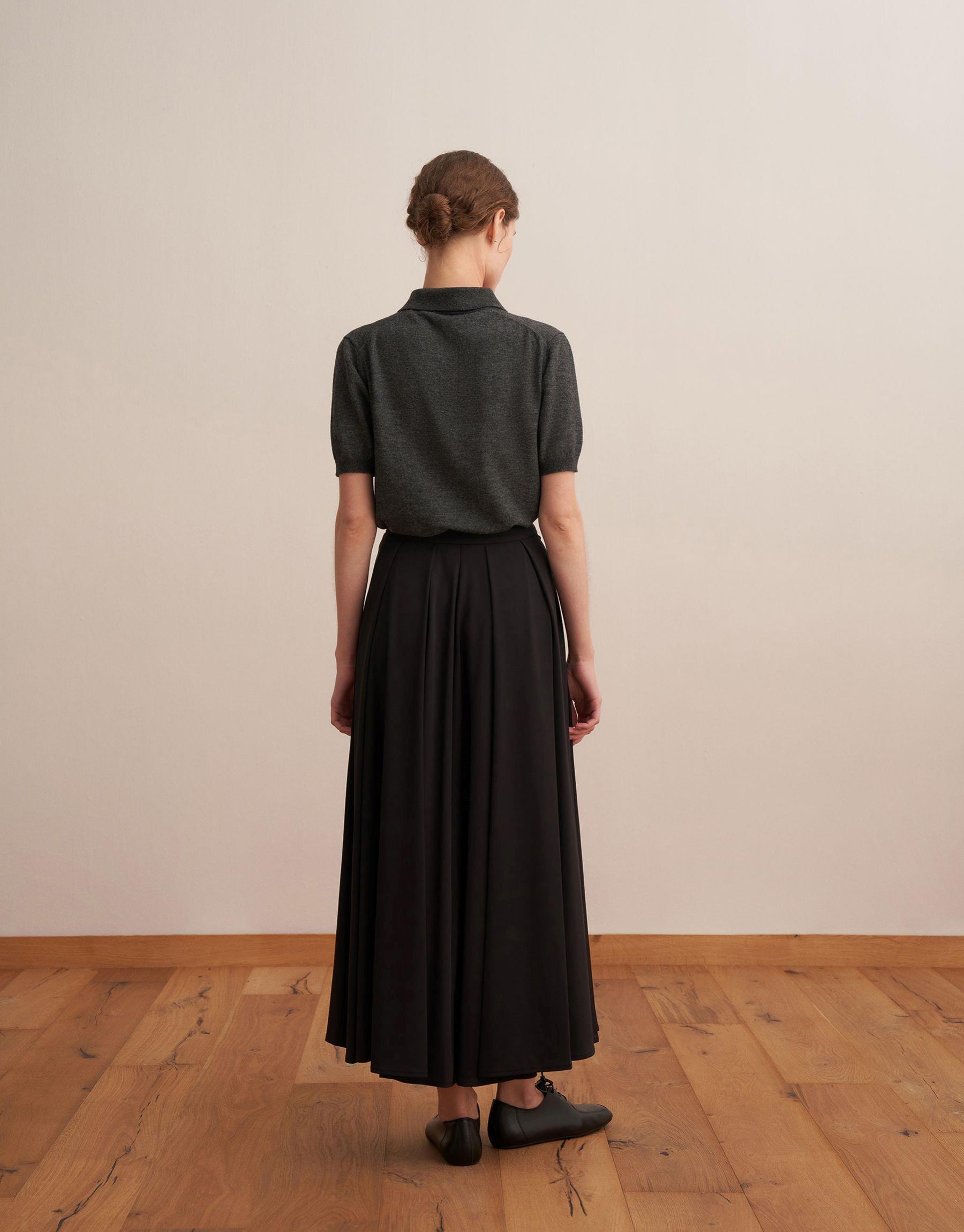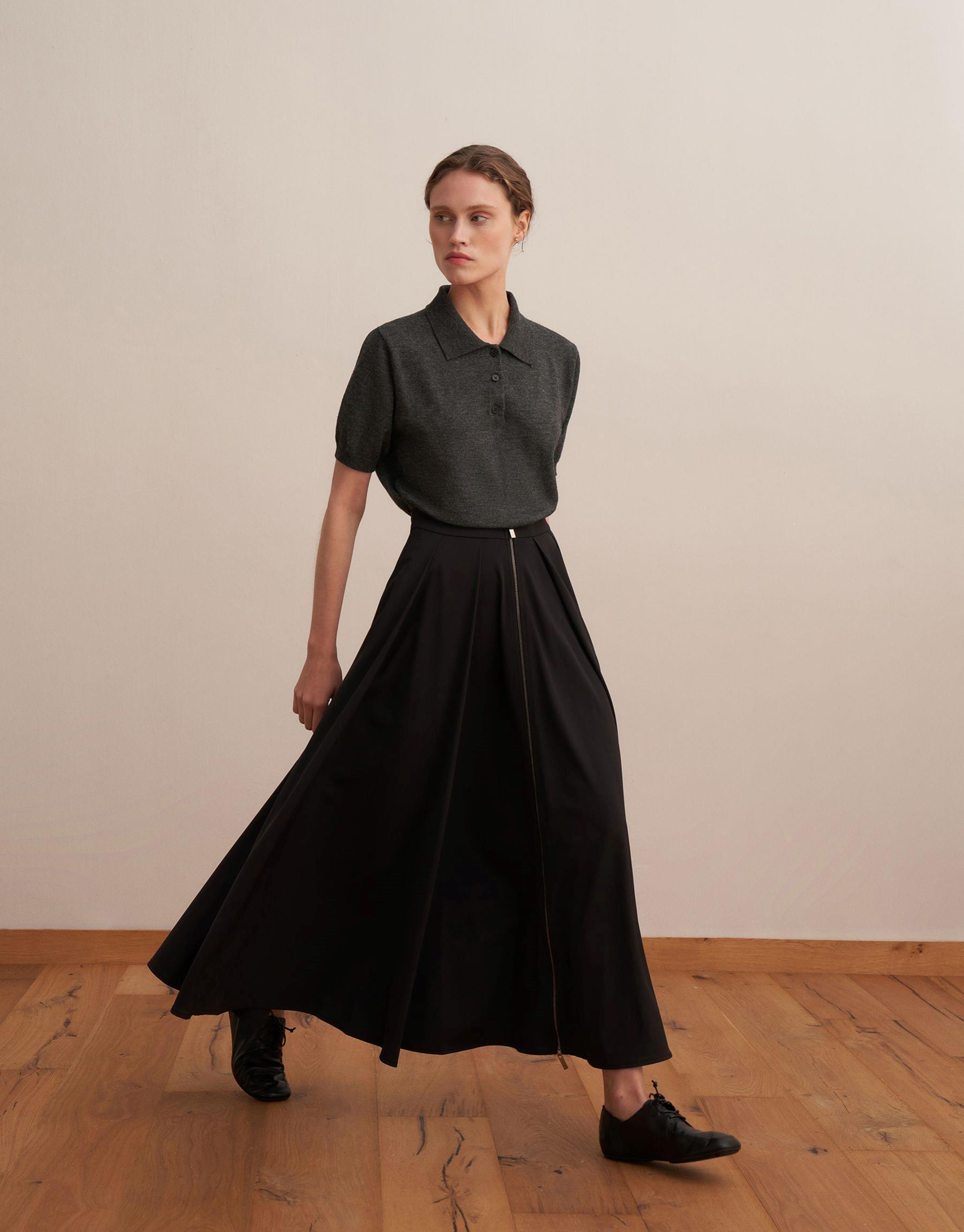 Fermuarlı Pileli Teknik Etek Siyah