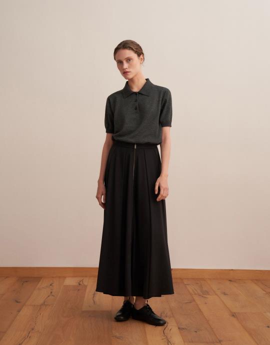 Fermuarlı Pileli Teknik Etek Antrasit