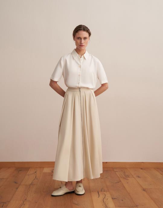 Fermuarlı Pileli Teknik Etek Bej